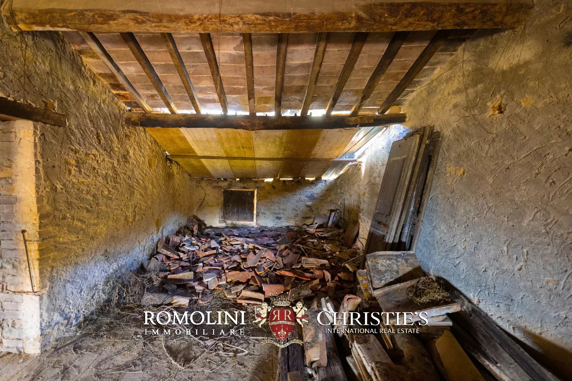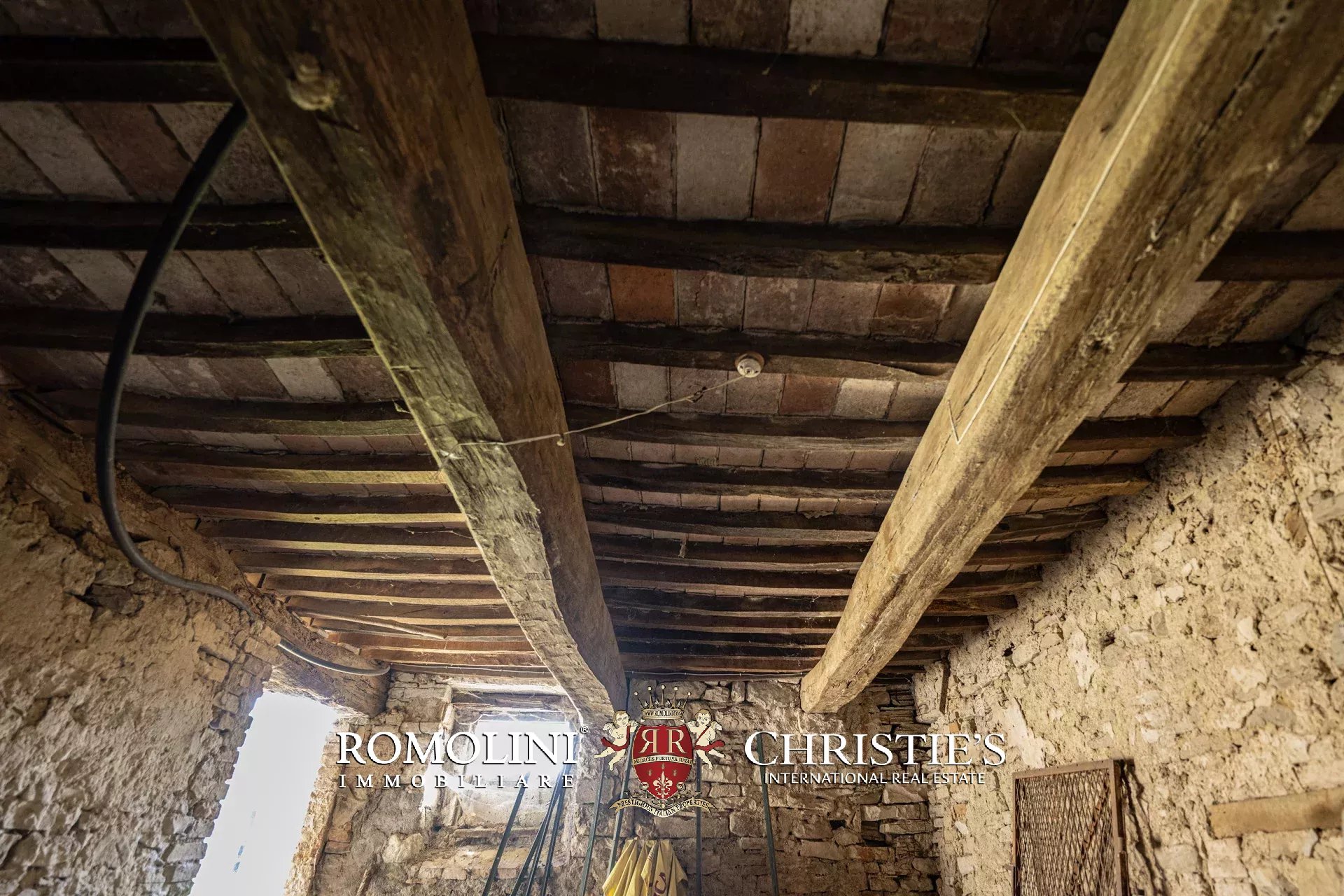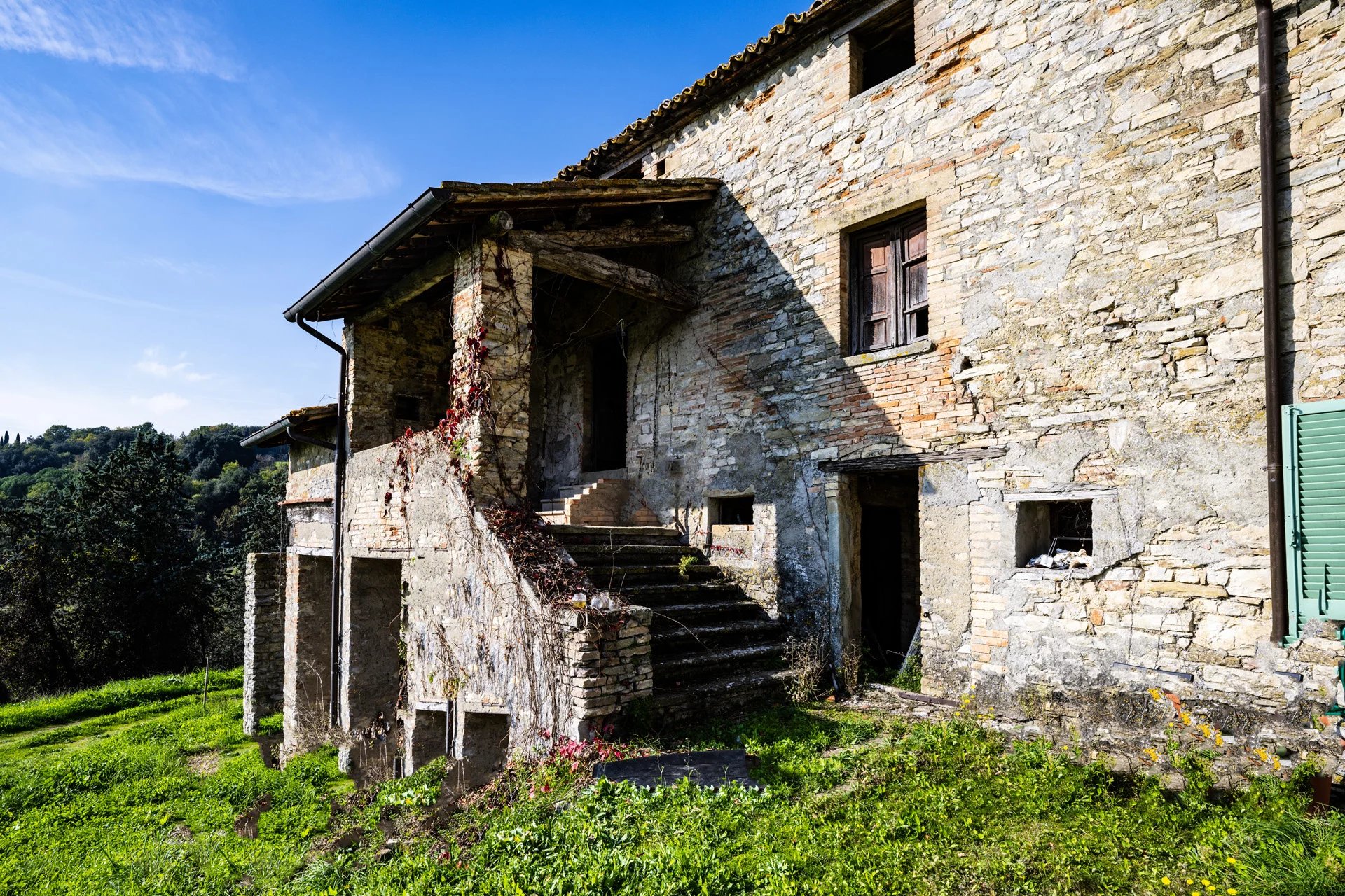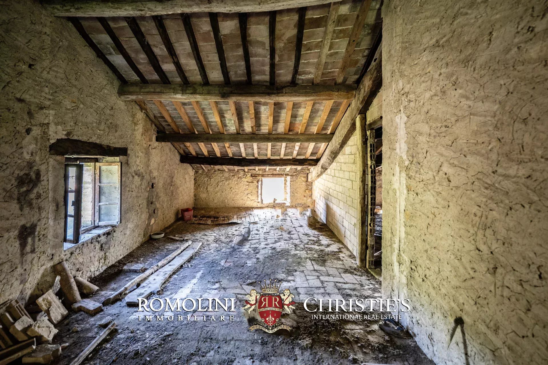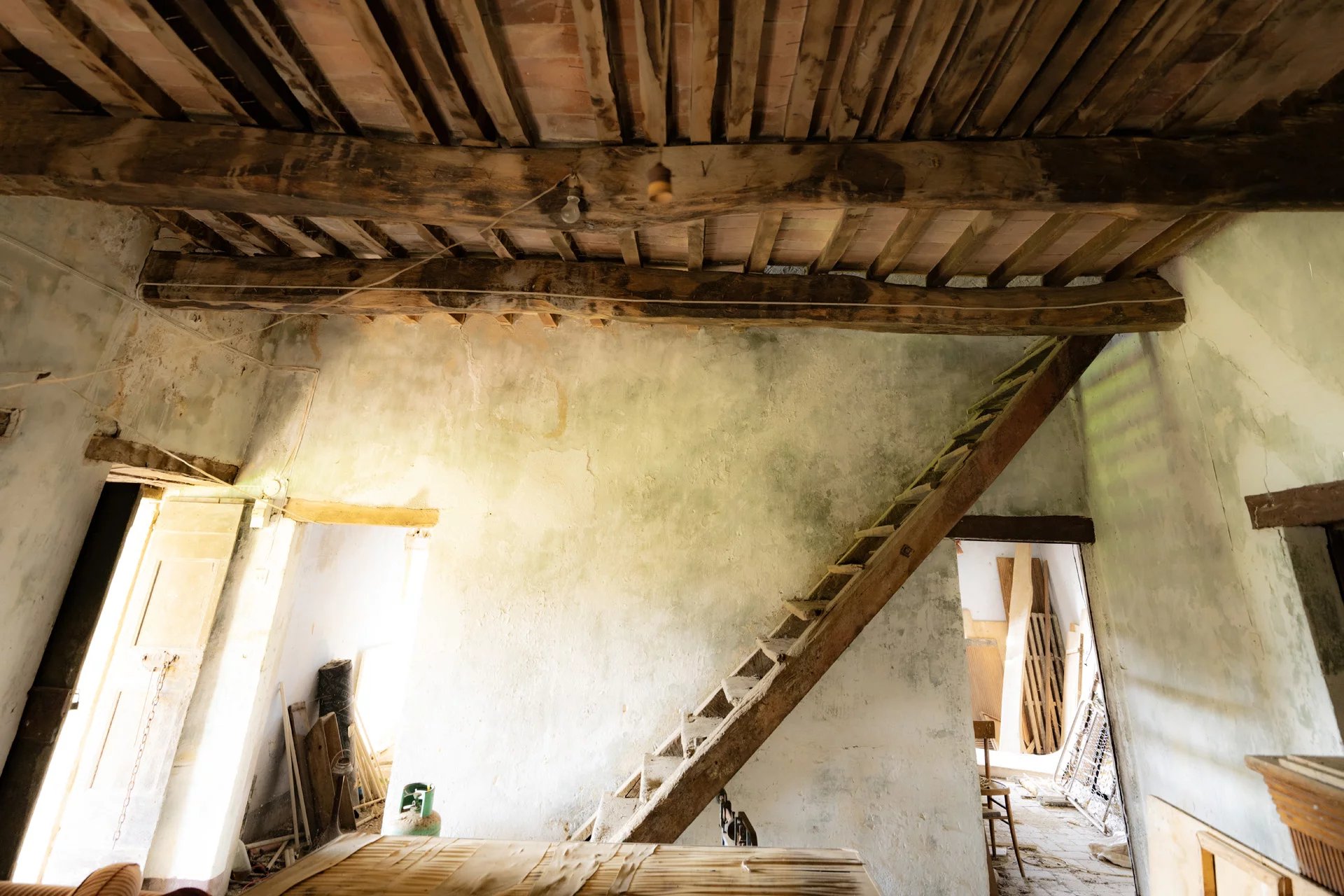 La porzione da ristrutturare (420 m²) è invece strutturata su tre livelli ed è composta da un totale di tredici stanze (incluse le vecchie stalle al piano terra) che garantiscono grande flessibilità nella ristrutturazione, con potenziale per espandere ulteriormente l’attività ricettiva. Pur avendo murature esterne e coperture in buone condizioni, questa sezione necessita di interventi di ristrutturazione che potranno valorizzare ulteriormente gli spazi interni e preservare gli elementi tipici del casale, come i pavimenti in cotto antico, i soffitti con travi in legno e i camini originali.