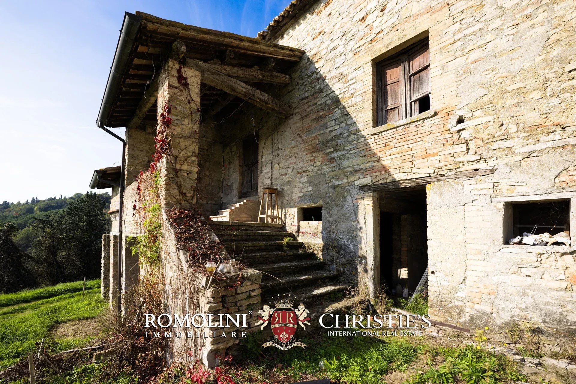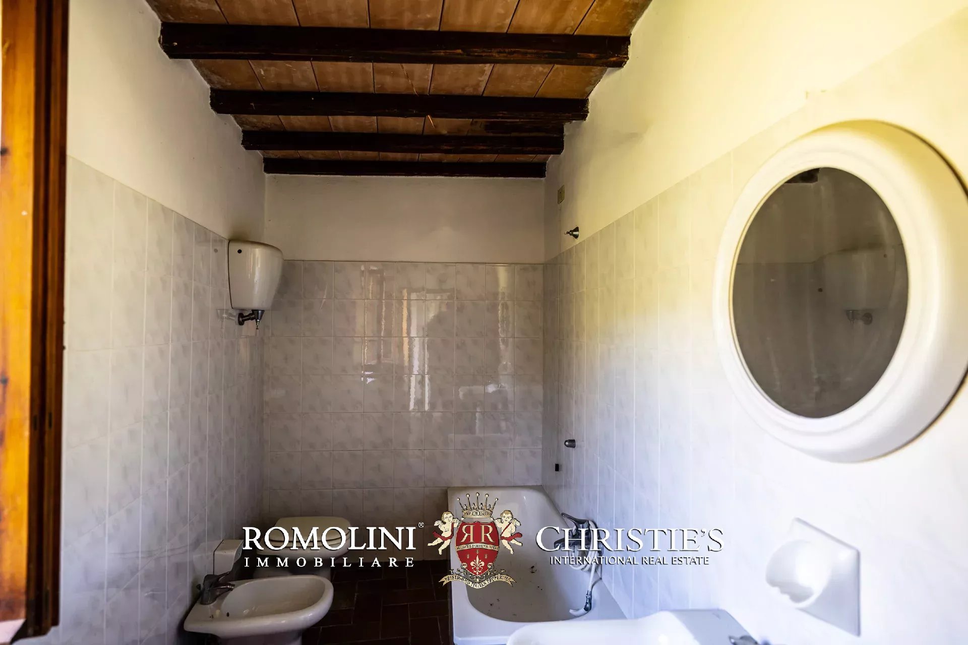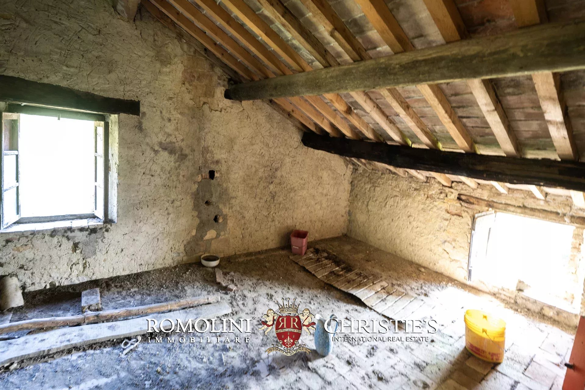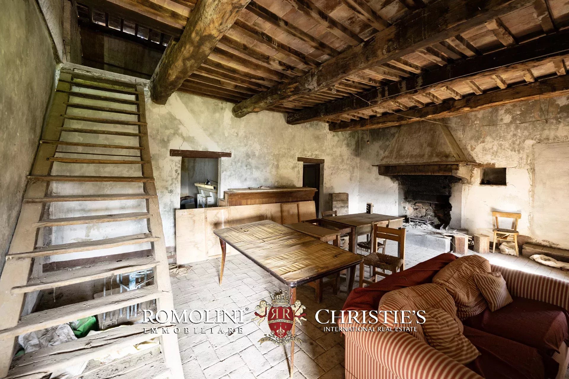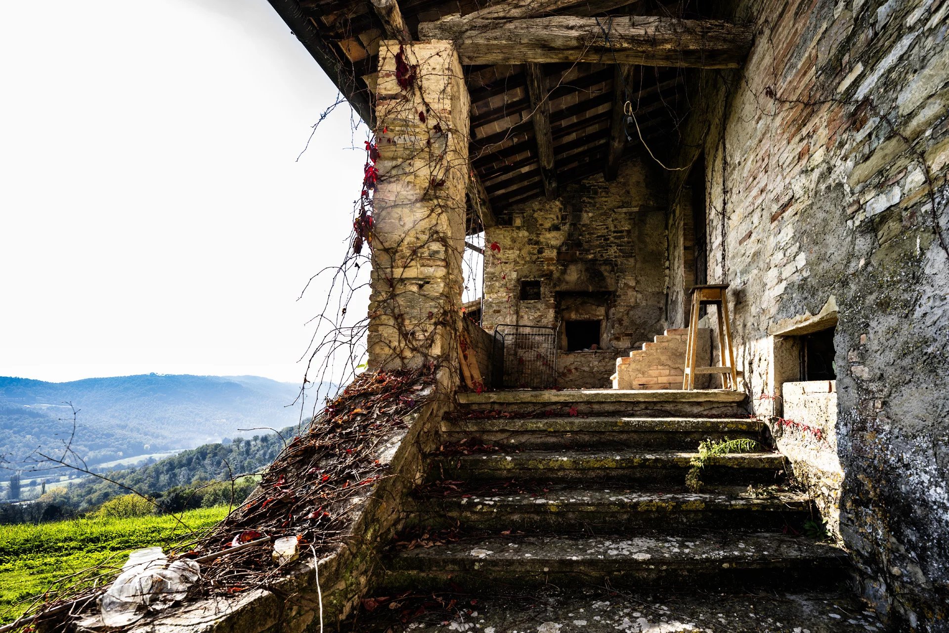La porzione da ristrutturare (420 m²) è invece strutturata su tre livelli ed è composta da un totale di tredici stanze (incluse le vecchie stalle al piano terra) che garantiscono grande flessibilità nella ristrutturazione, con potenziale per espandere ulteriormente l’attività ricettiva. Pur avendo murature esterne e coperture in buone condizioni, questa sezione necessita di interventi di ristrutturazione che potranno valorizzare ulteriormente gli spazi interni e preservare gli elementi tipici del casale, come i pavimenti in cotto antico, i soffitti con travi in legno e i camini originali.
