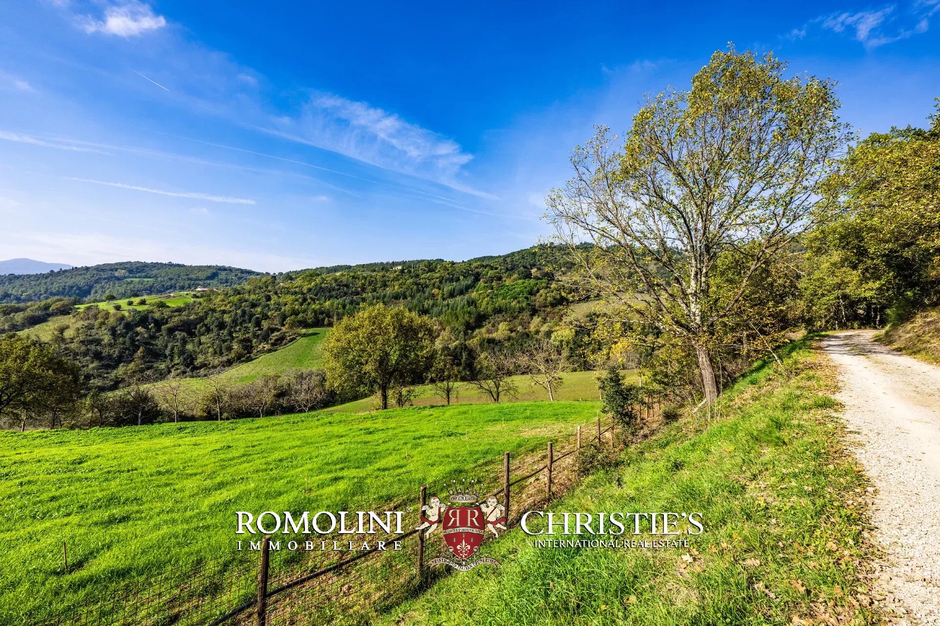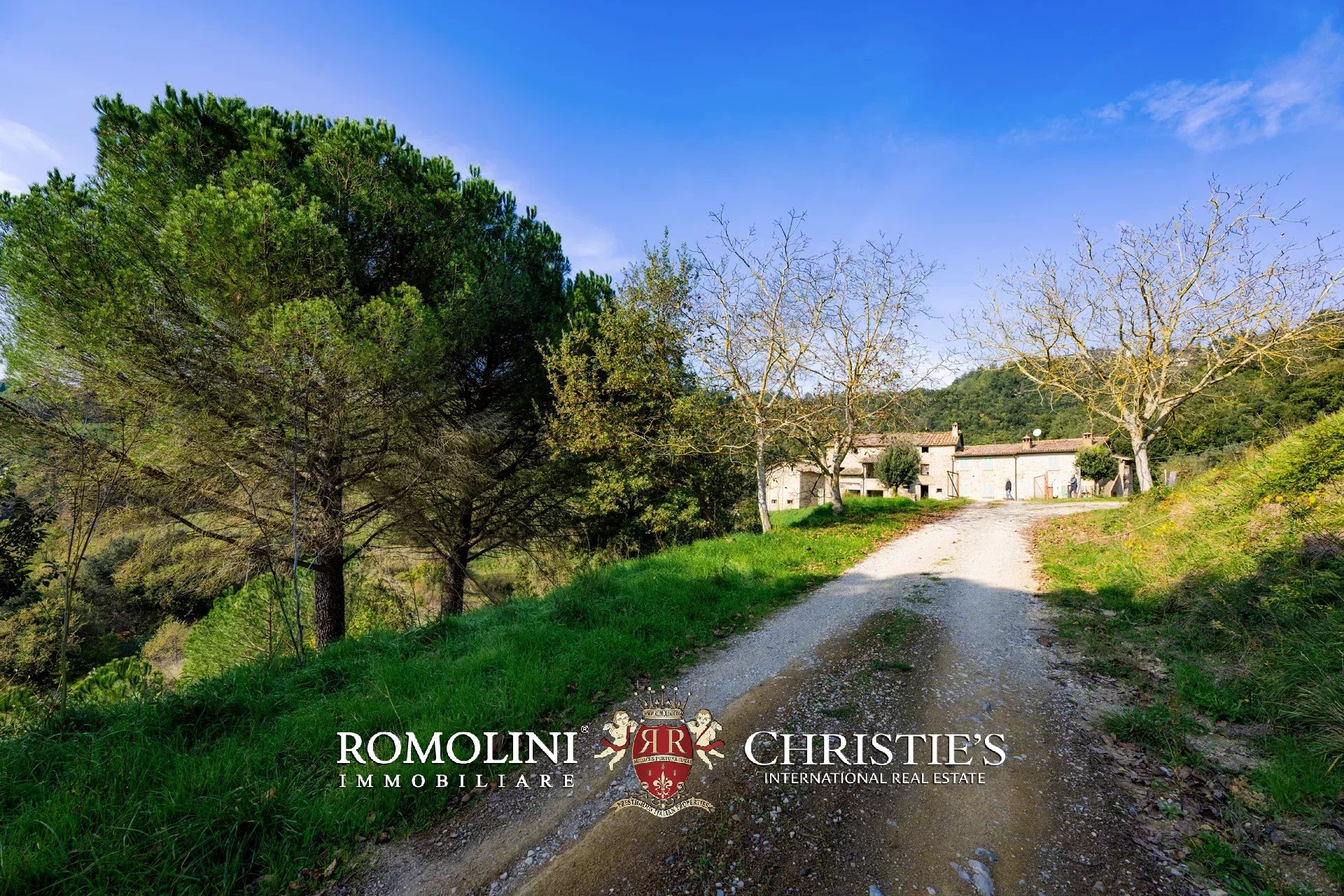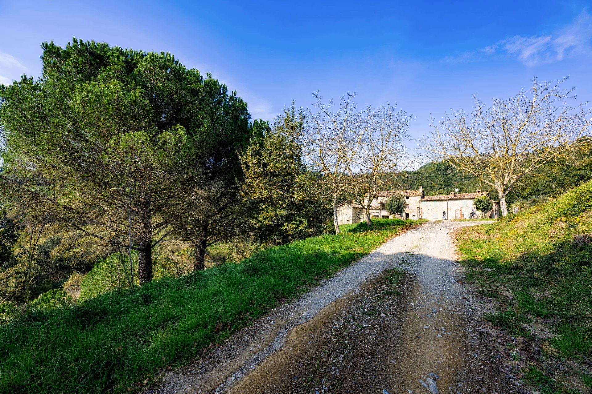 Circondata da boschi e uliveti, la proprietà gode di assoluta privacy, pur essendo facilmente accessibile grazie a una strada bianca ben mantenuta (circa 800 m) che si diparte dalla provinciale e conduce al terrazzamento naturale dove si trovano il casale e i suoi annessi.