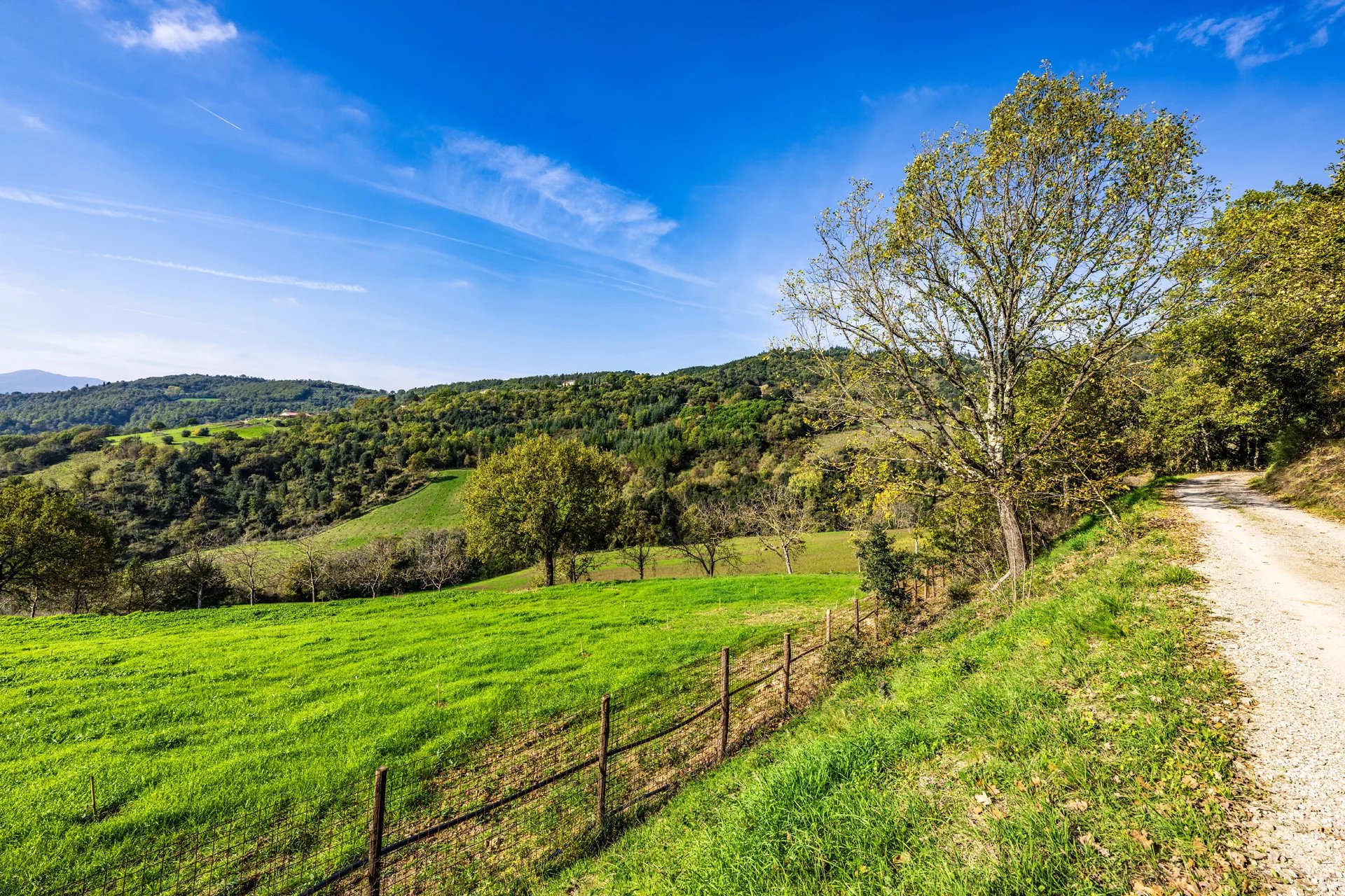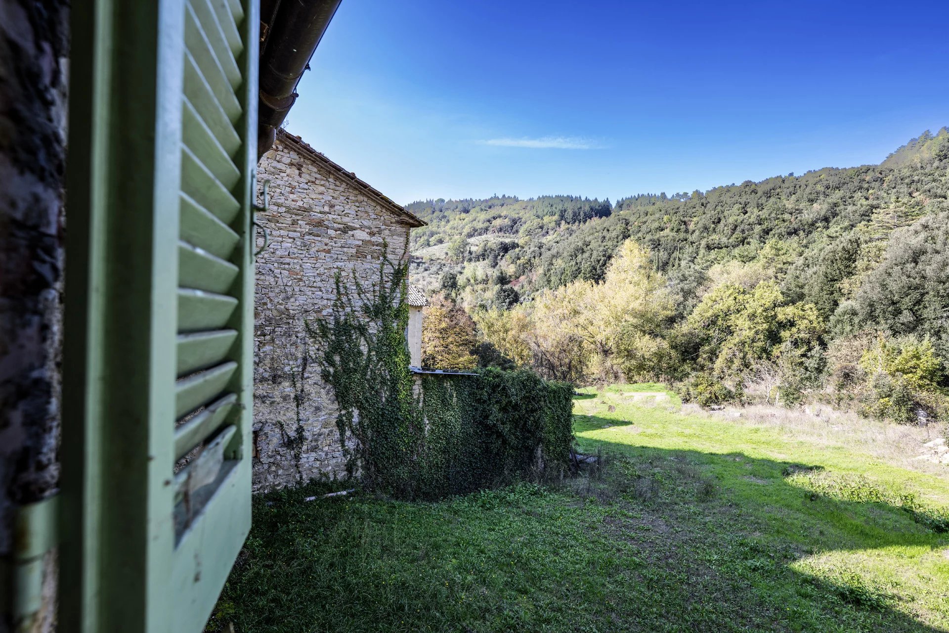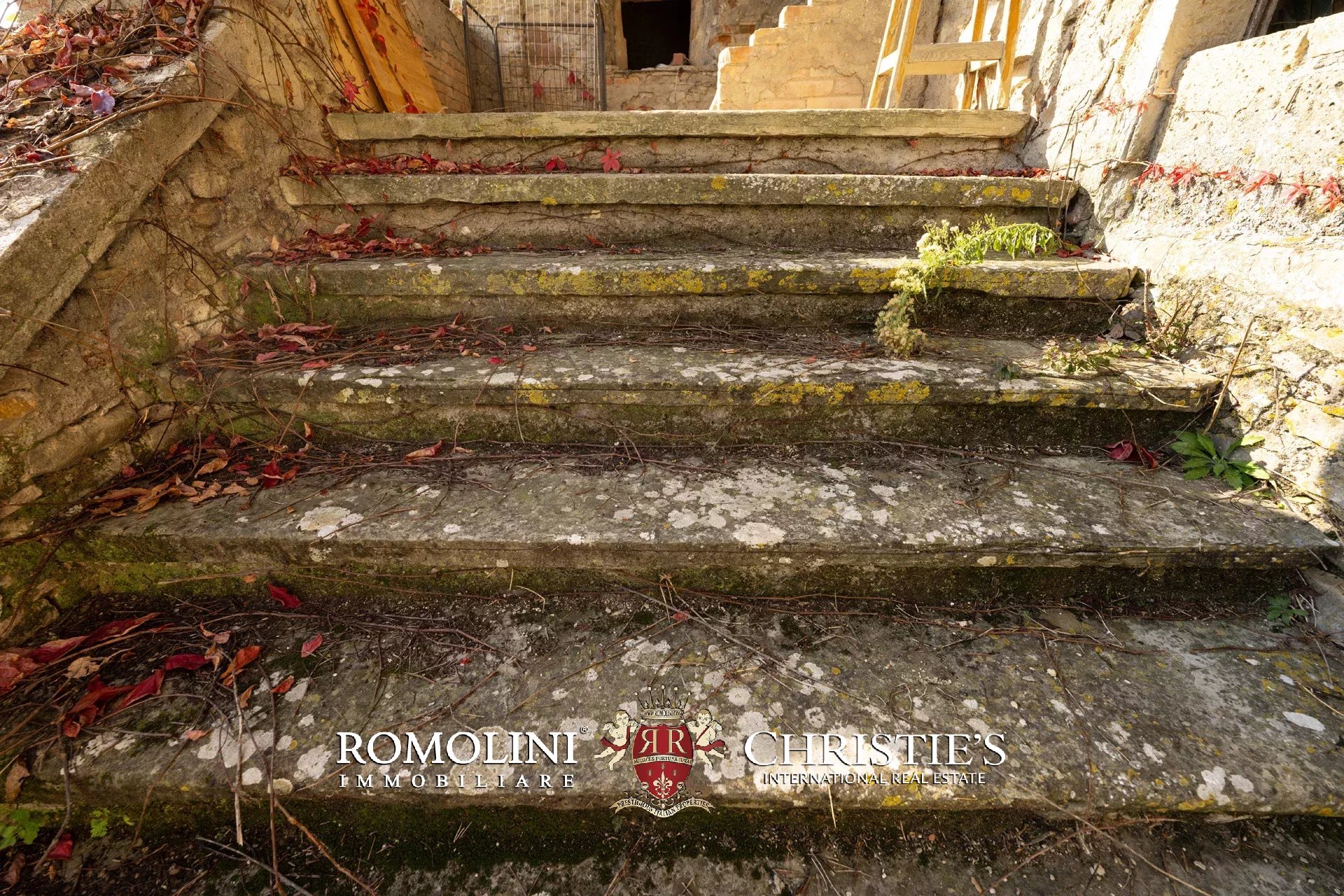Circondata da boschi e uliveti, la proprietà gode di assoluta privacy, pur essendo facilmente accessibile grazie a una strada bianca ben mantenuta (circa 800 m) che si diparte dalla provinciale e conduce al terrazzamento naturale dove si trovano il casale e i suoi annessi.