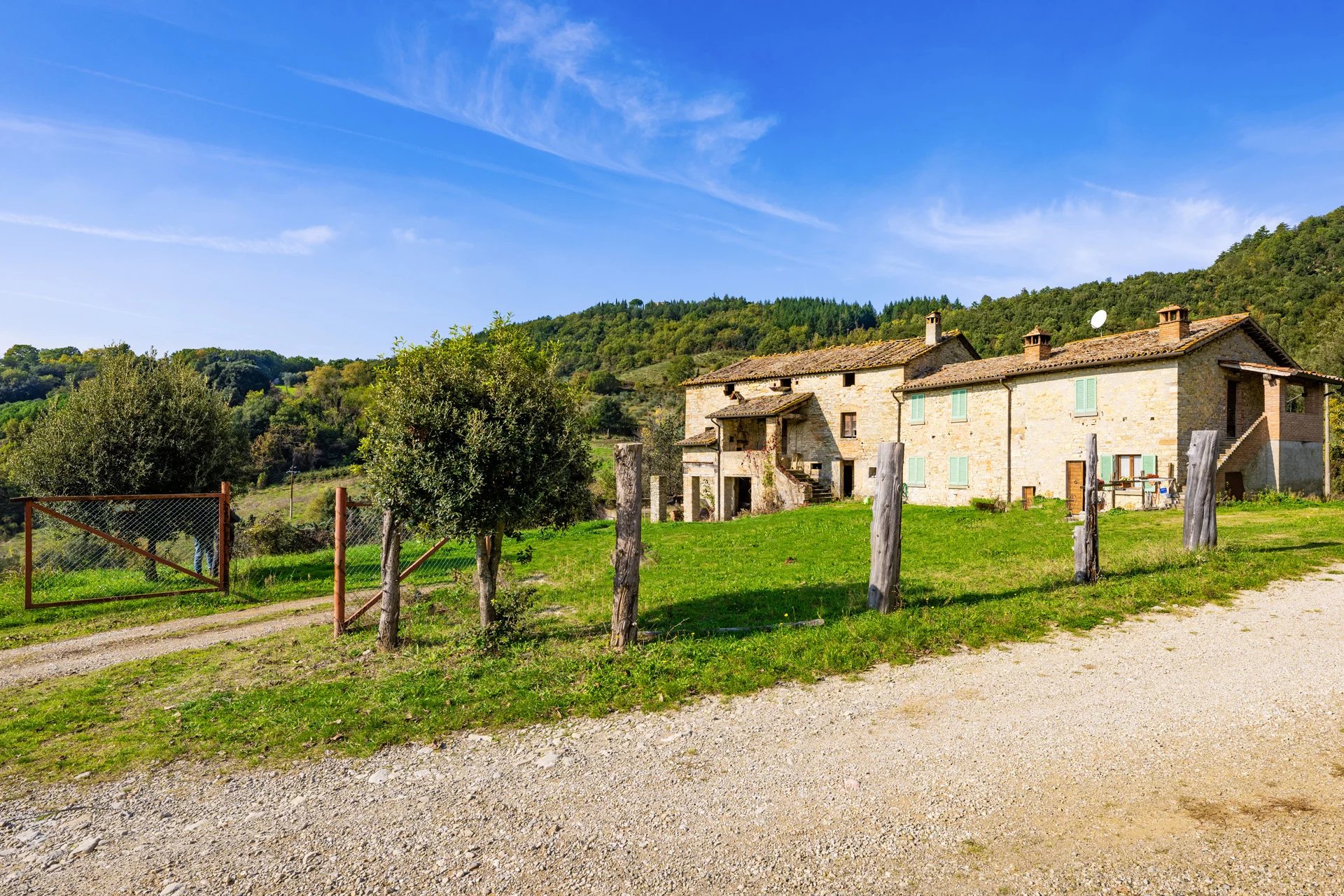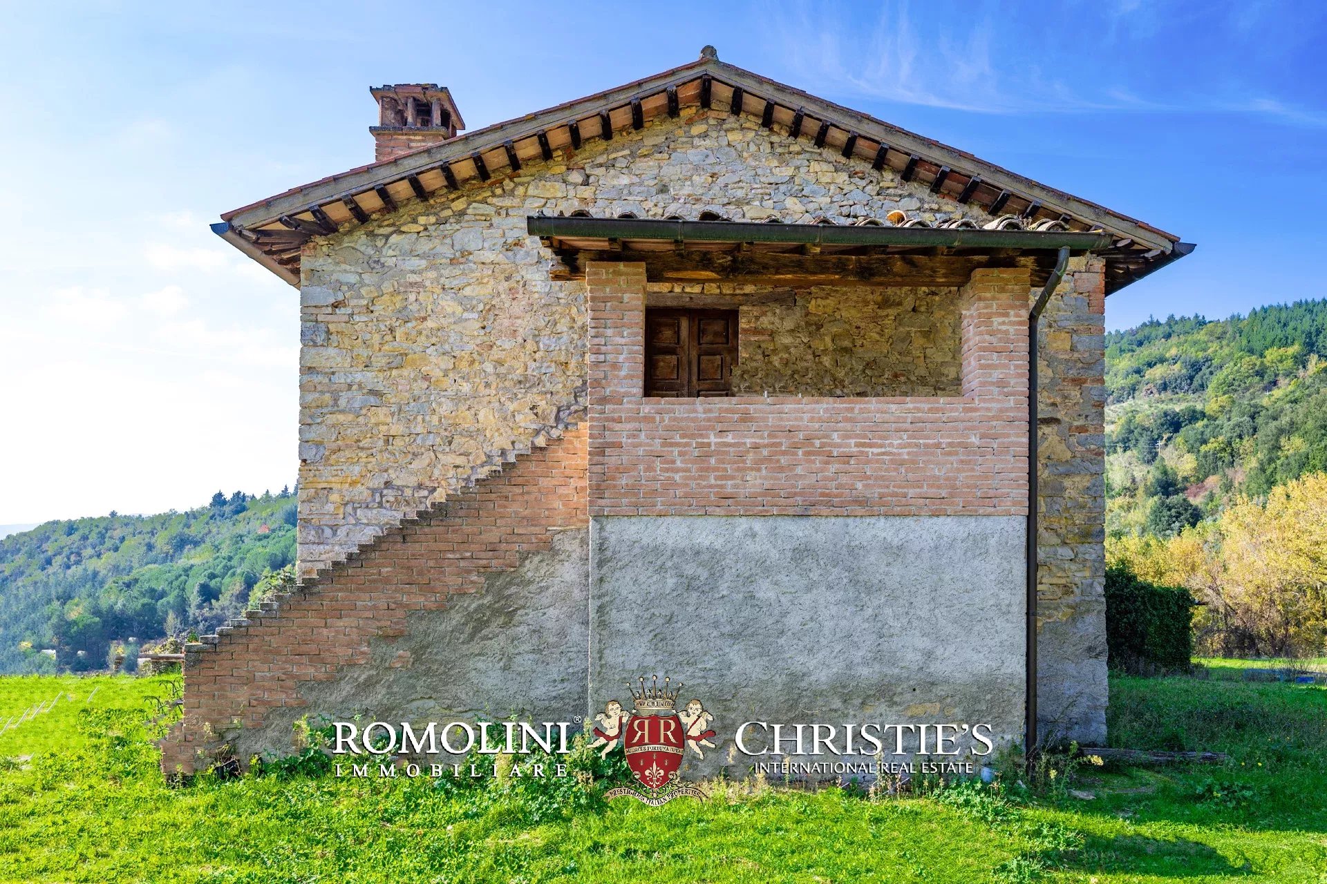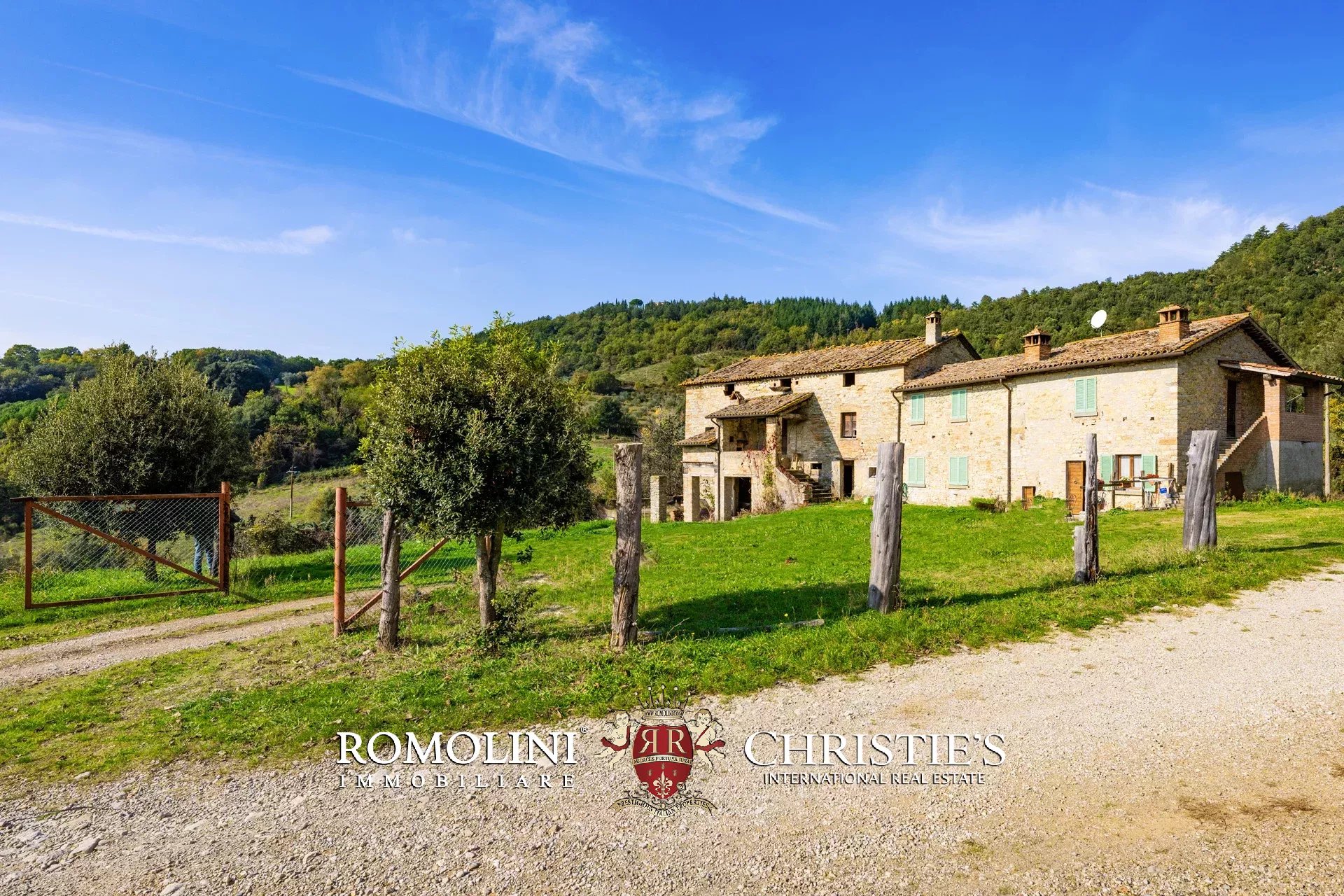 Situato in una posizione dominante appena fuori dal borgo medievale di Monte Santa Maria Tiberina, casalerustico con vista panoramica in vendita. La proprietà (circa 700 mq in totale) è stata parzialmente ristrutturata e convertita in casa vacanza ma le grandi dimensioni offrono grande potenziale di sviluppo in tal senso (fino a 10 camere). Circa 2,2 ha di terreno completano l’immobile.