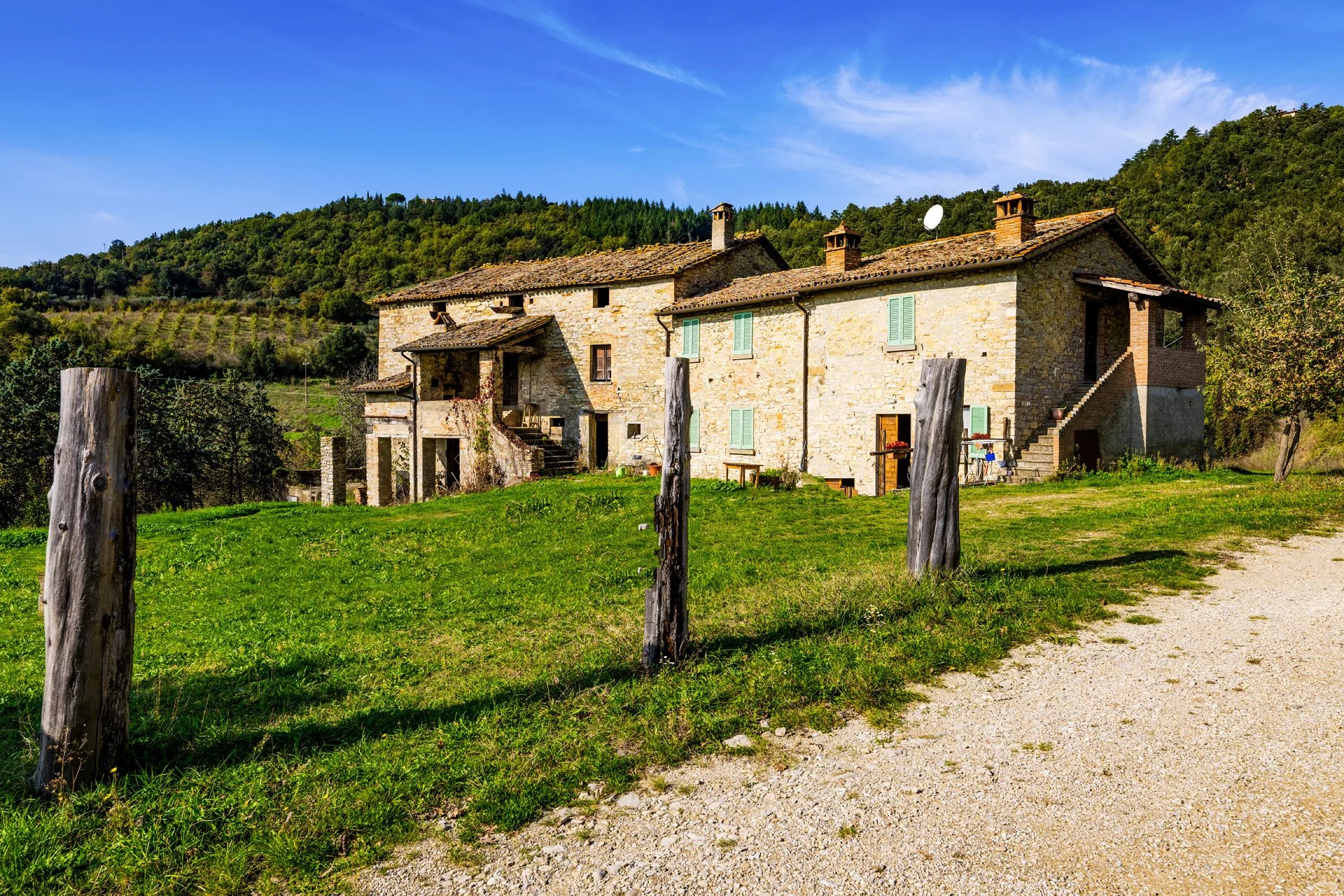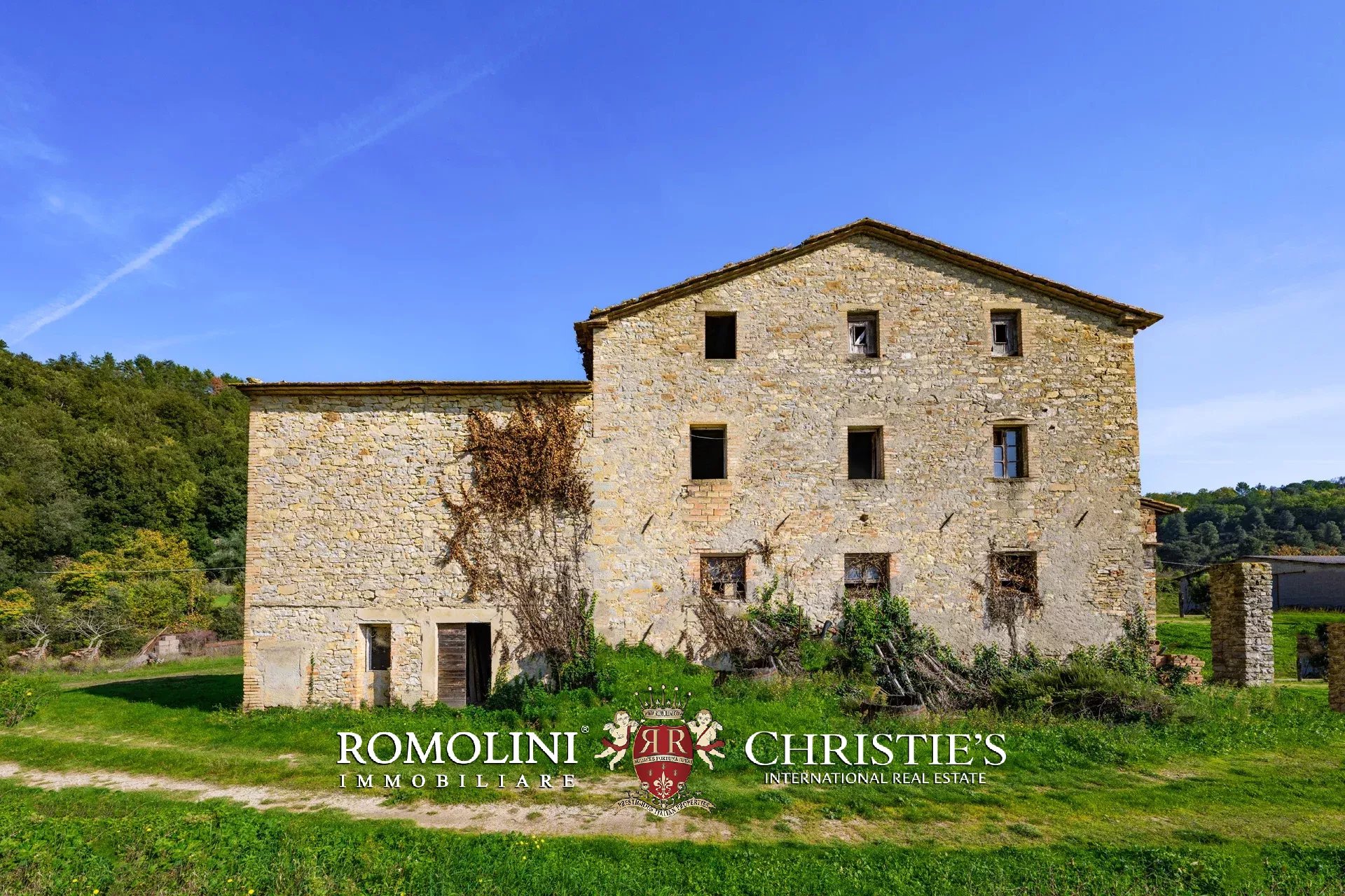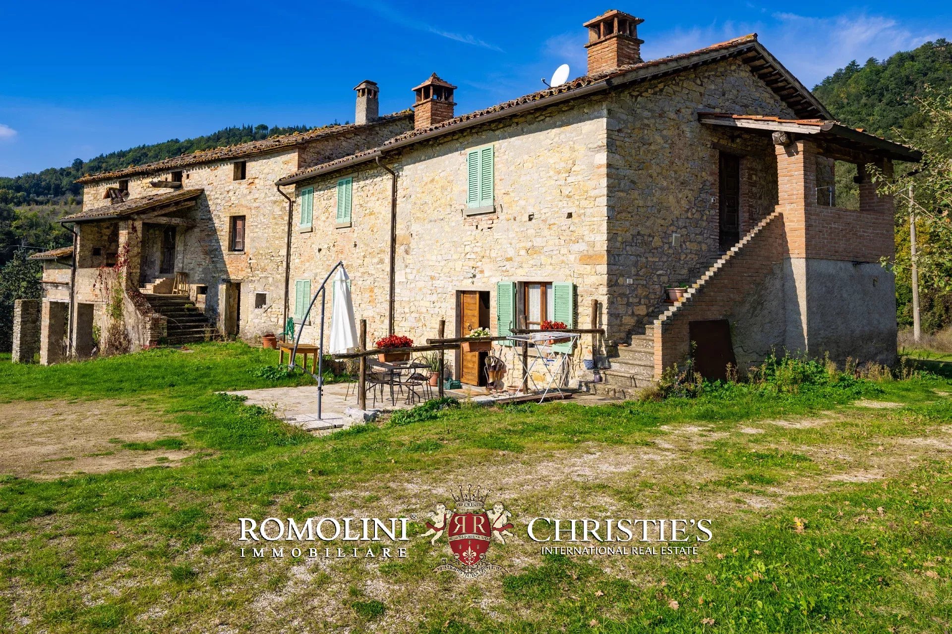 Situato in una posizione dominante appena fuori dal borgo medievale di Monte Santa Maria Tiberina, casalerustico con vista panoramica in vendita. La proprietà (circa 700 mq in totale) è stata parzialmente ristrutturata e convertita in casa vacanza ma le grandi dimensioni offrono grande potenziale di sviluppo in tal senso (fino a 10 camere). Circa 2,2 ha di terreno completano l’immobile.