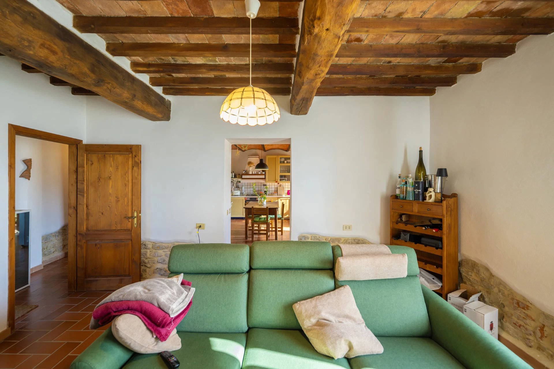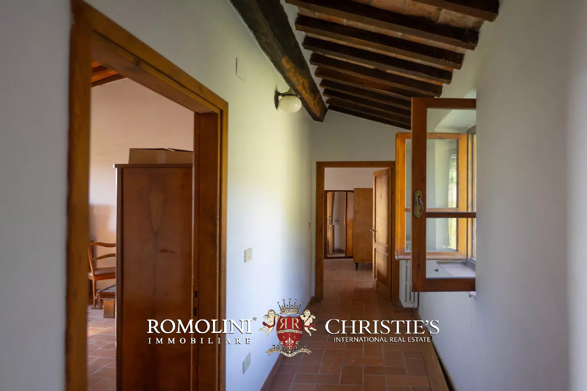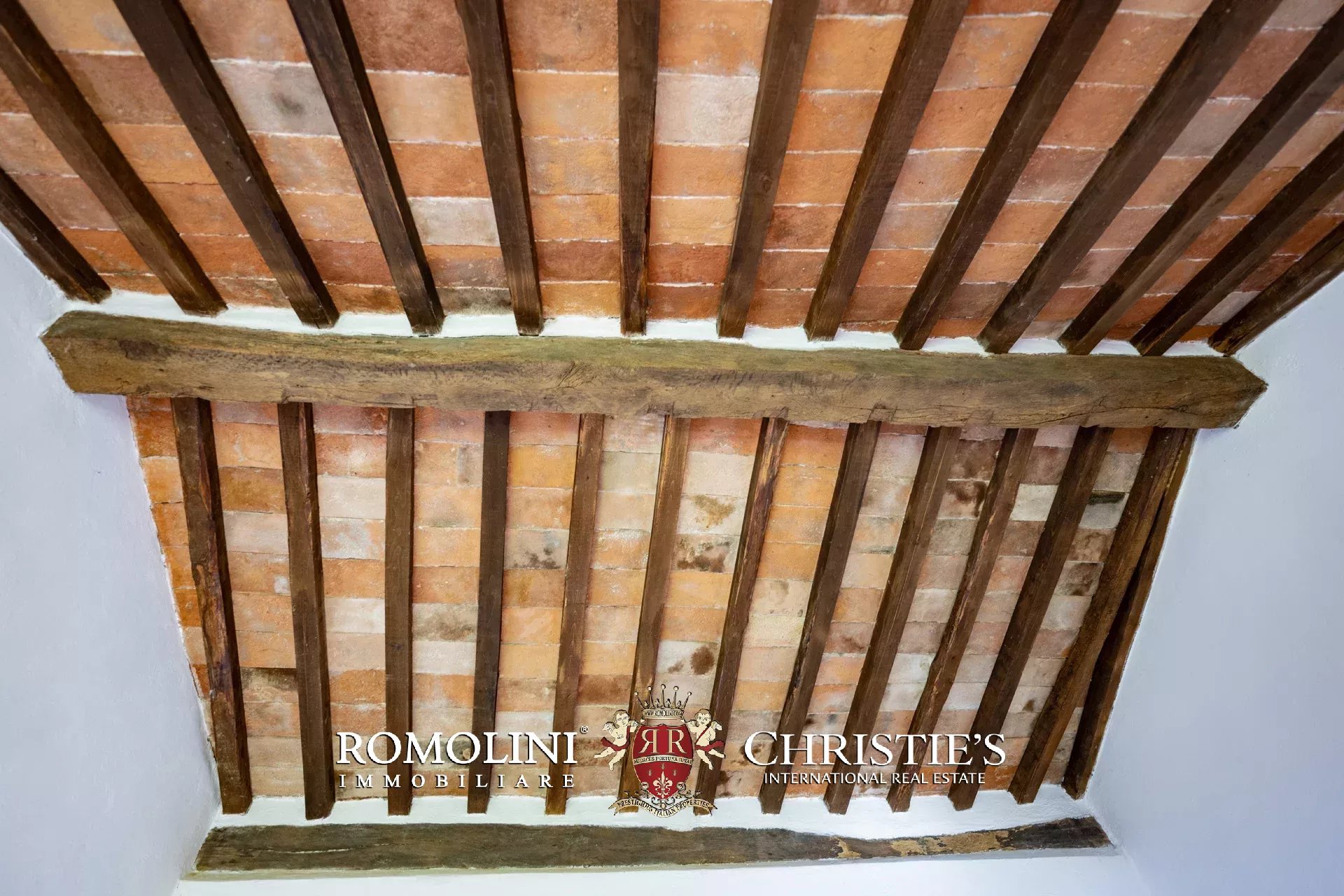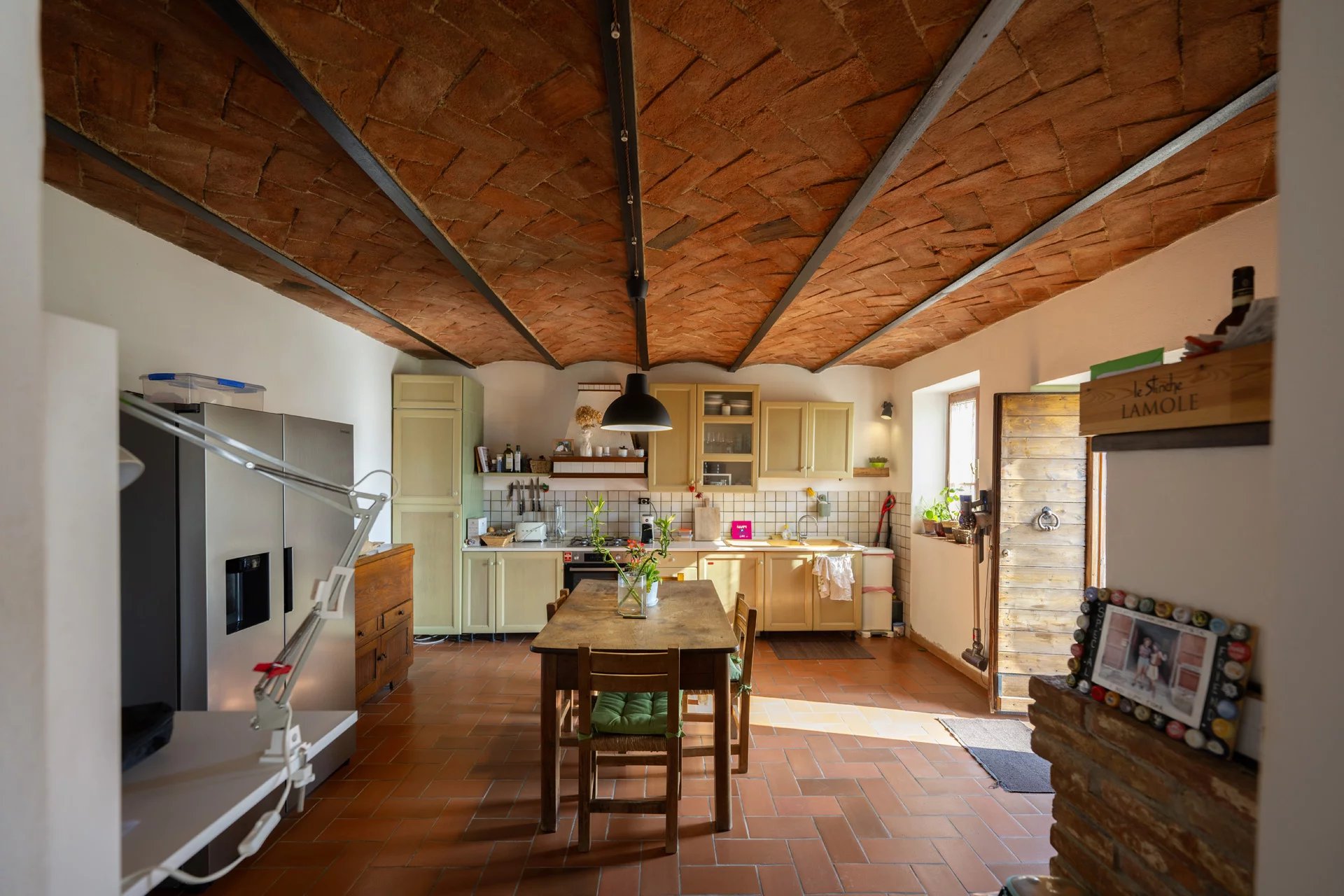 Il casale (560 m²) è diviso in due sezioni, una delle quali adibita ad agriturismo e l’altra da ristrutturare. La parte ristrutturata (circa 140 m²) è strutturata su due livelli: al piano terra si trova un ampio soggiorno open space con cucina a vista e camino, salotto, camera e bagno; al piano primo troviamo invece una bellissima loggia che disimpegna tre camere e un bagno (con predisposizione per la realizzazione di un appartamento indipendente). La ristrutturazione ha conservato le finiture originali al piano terra, mentre il primo piano è impreziosito da finiture moderne che ben si integrano con il contesto storico.