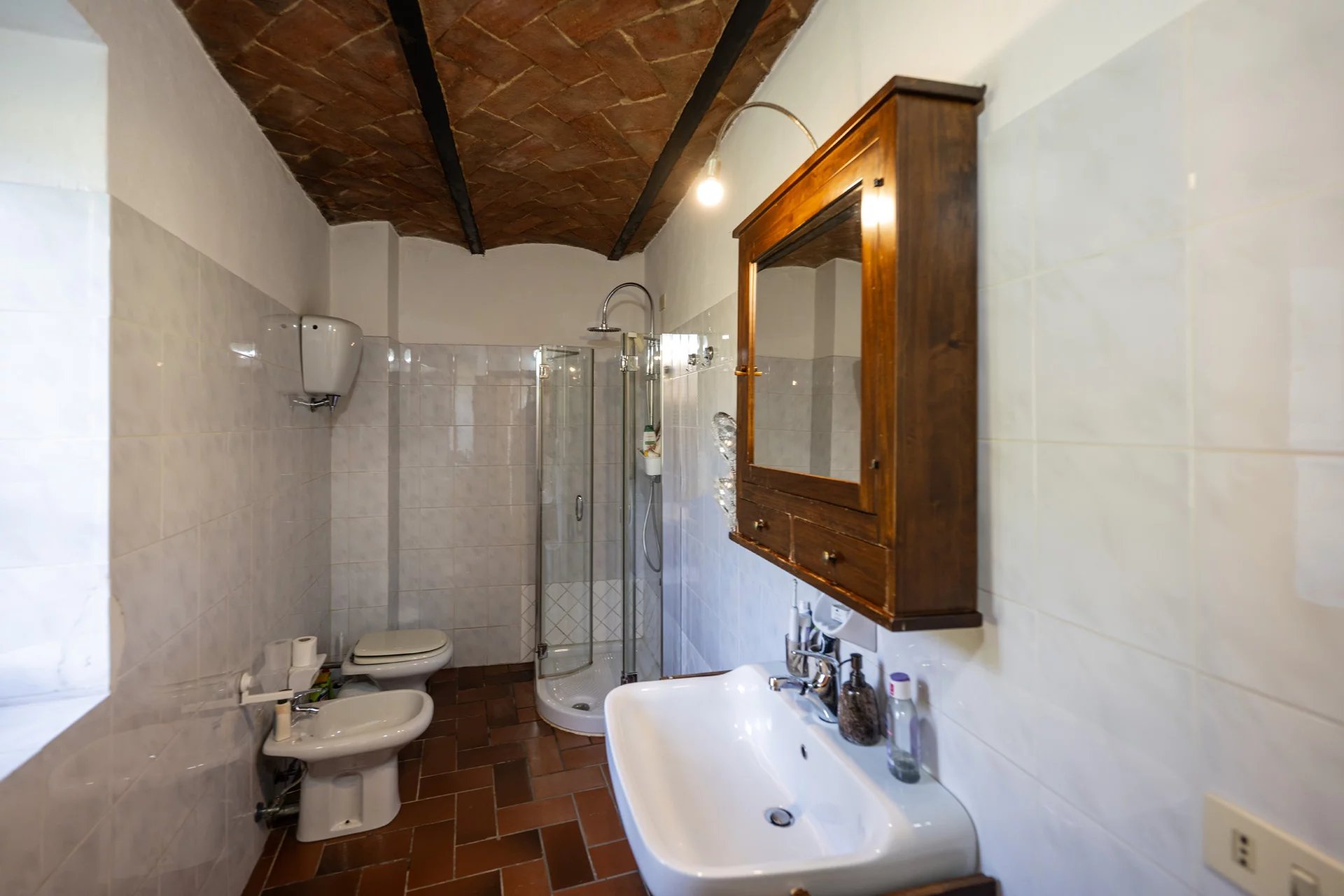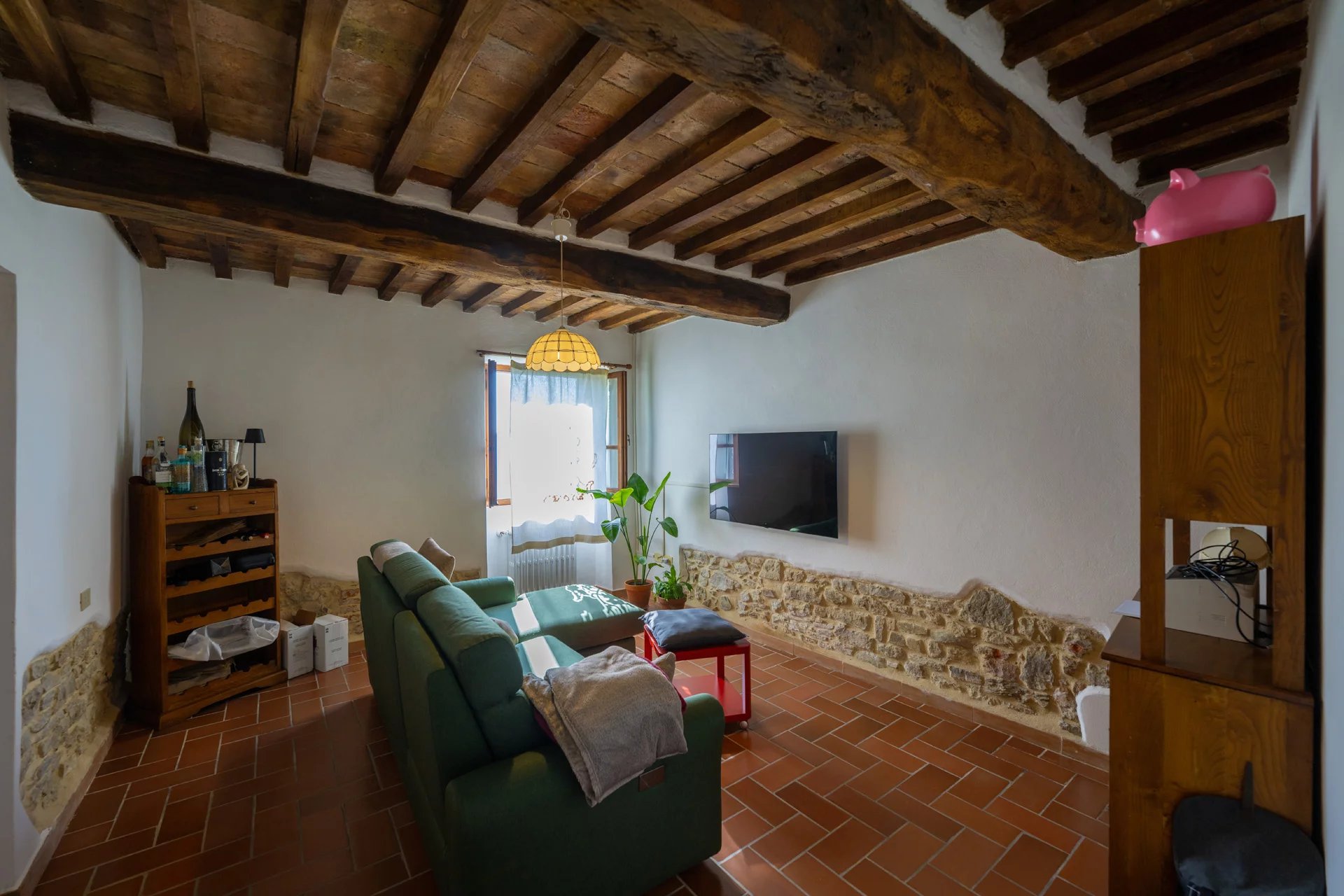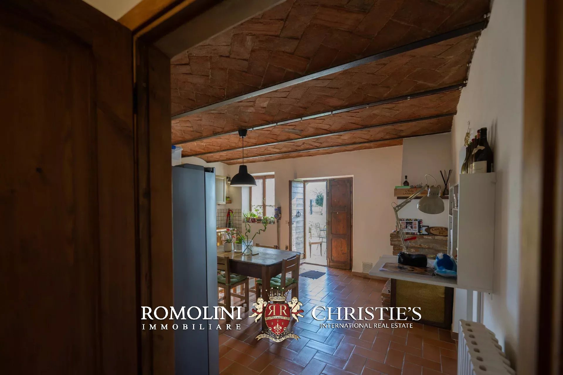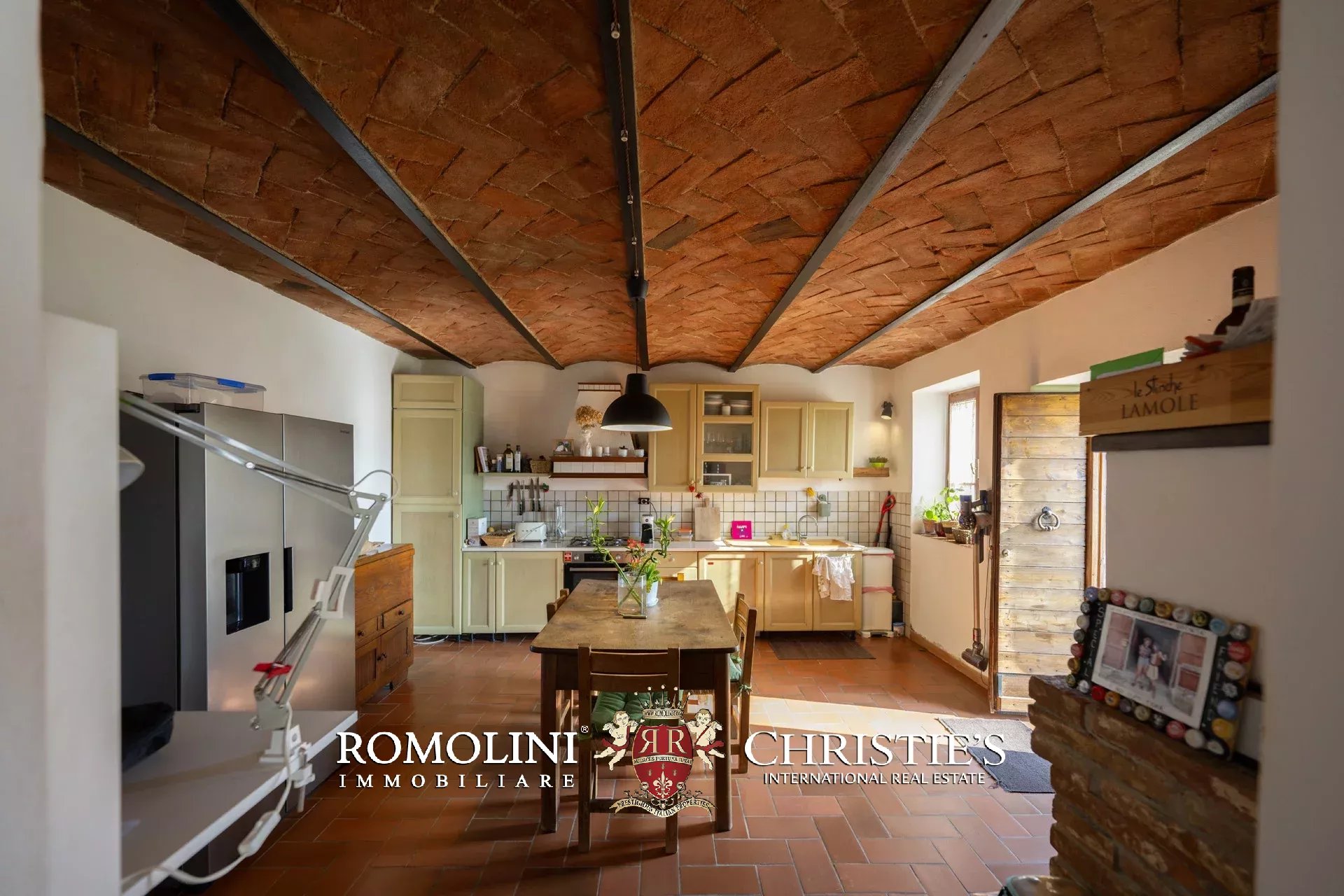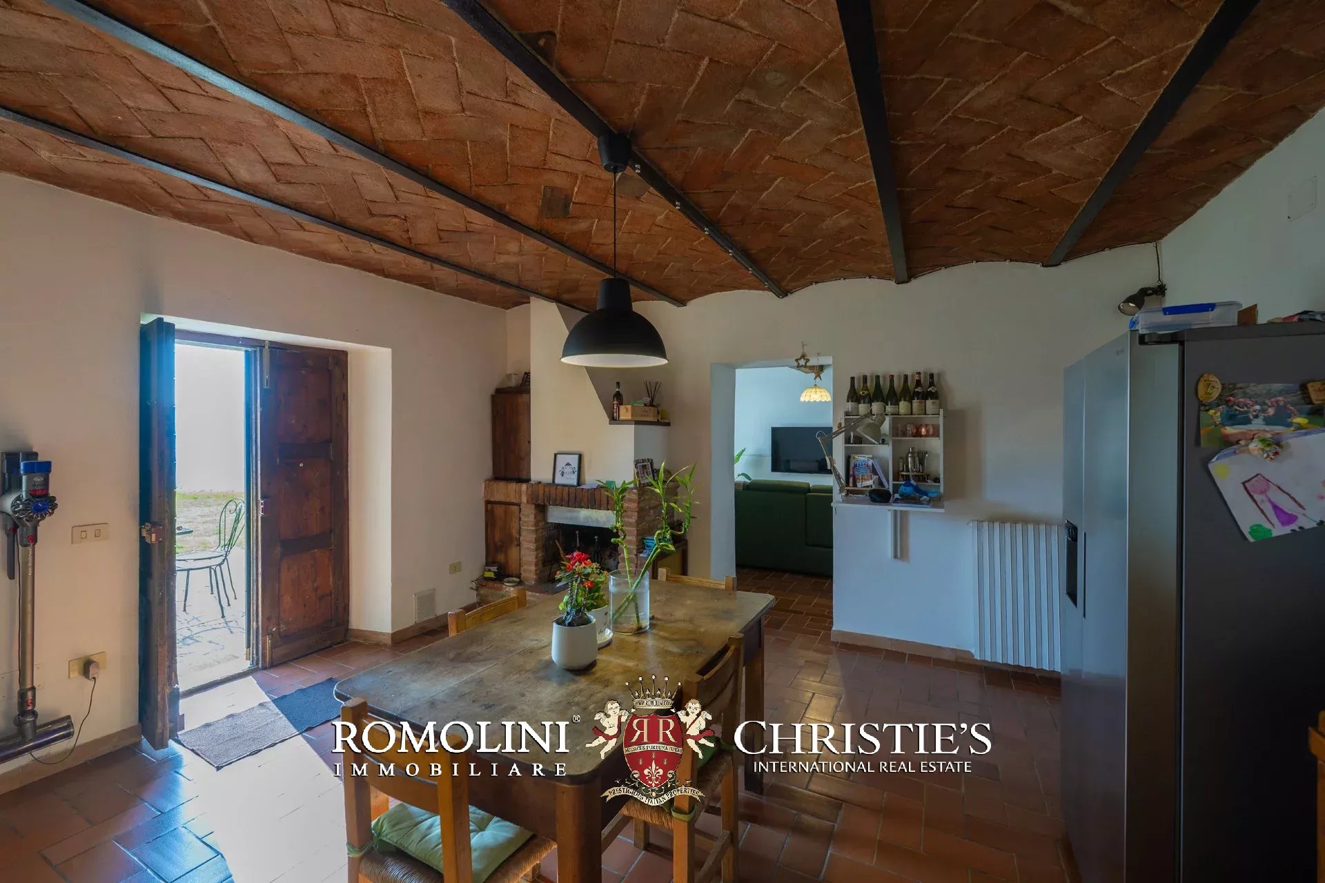 Il casale (560 m²) è diviso in due sezioni, una delle quali adibita ad agriturismo e l’altra da ristrutturare. La parte ristrutturata (circa 140 m²) è strutturata su due livelli: al piano terra si trova un ampio soggiorno open space con cucina a vista e camino, salotto, camera e bagno; al piano primo troviamo invece una bellissima loggia che disimpegna tre camere e un bagno (con predisposizione per la realizzazione di un appartamento indipendente). La ristrutturazione ha conservato le finiture originali al piano terra, mentre il primo piano è impreziosito da finiture moderne che ben si integrano con il contesto storico.