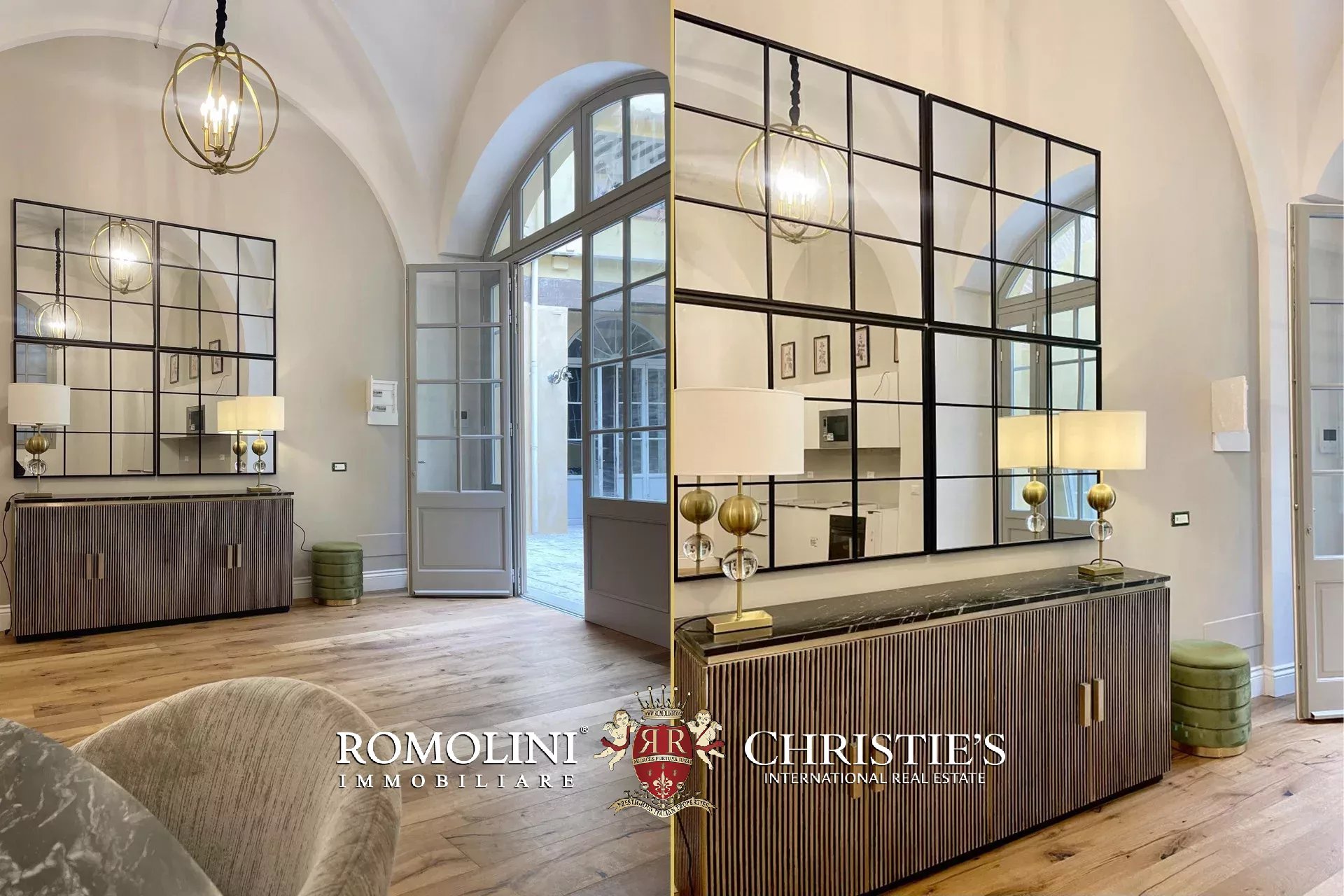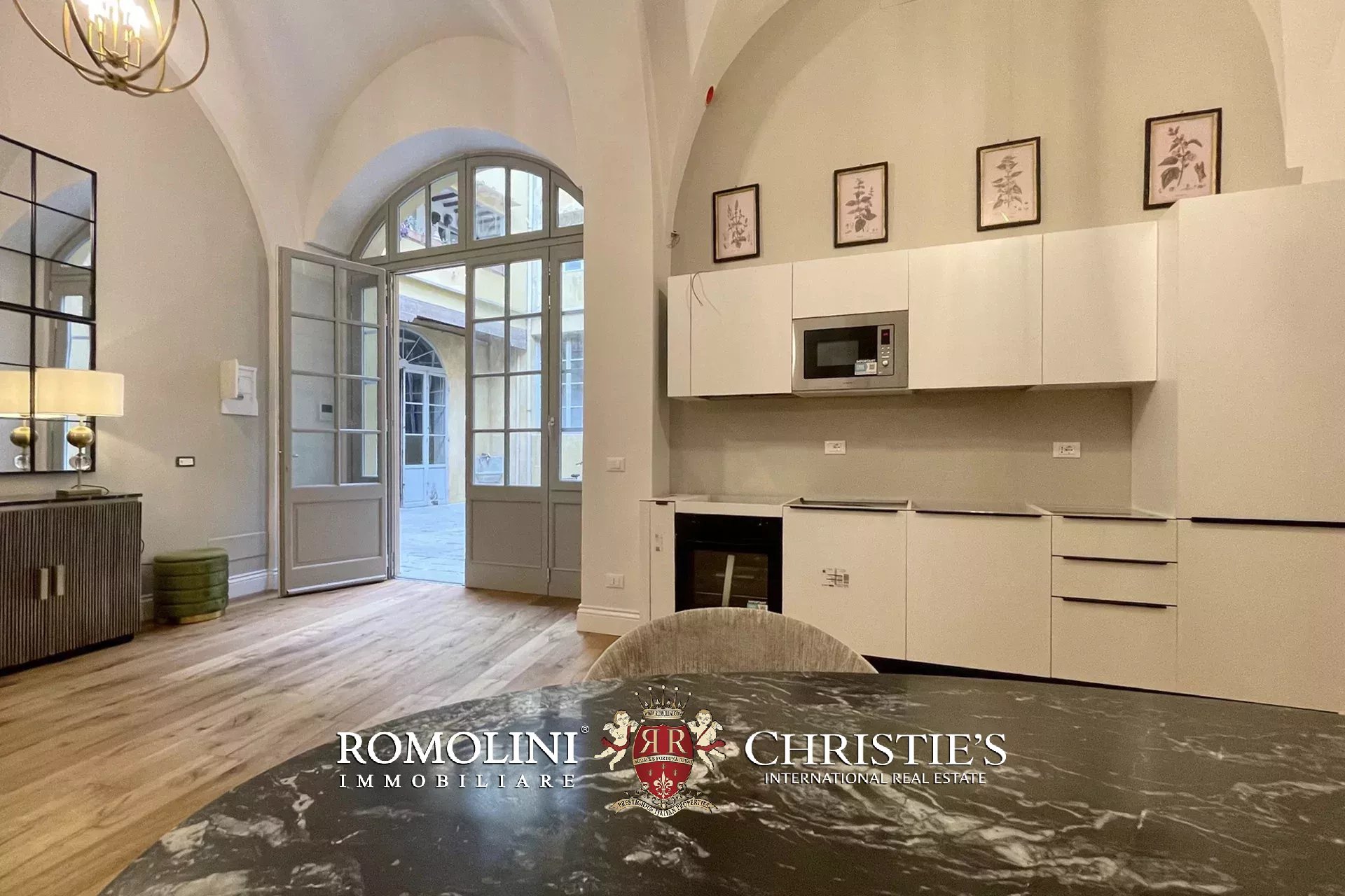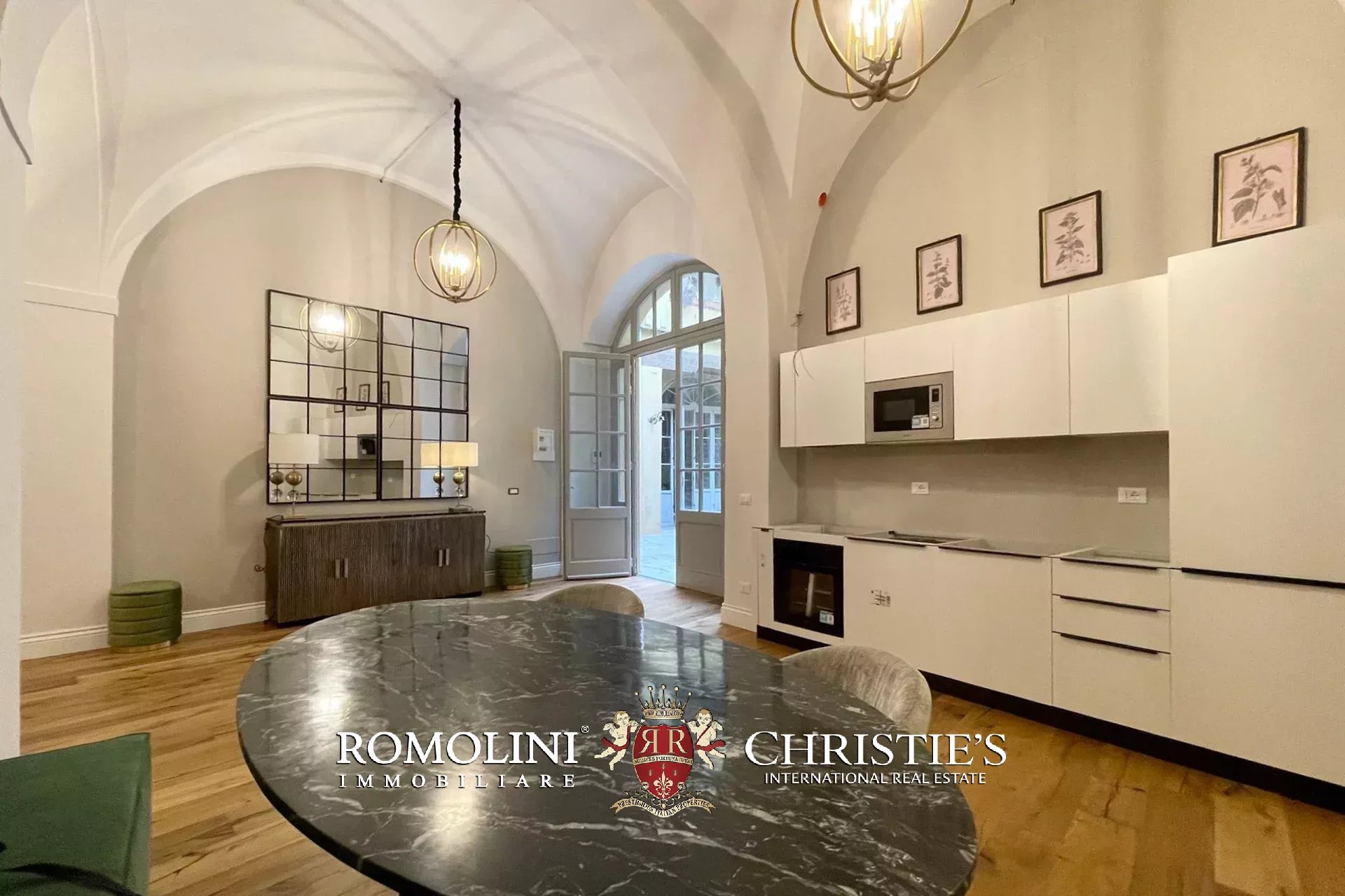 L’immobile, con accesso dal cortile condominiale del palazzo, è stato completamente ristrutturato e arredato con grande attenzione ai dettagli, utilizzando materiali e finiture di alto livello. L’ingresso si apre su un ampio e luminoso salone caratterizzato da suggestivi soffitti a volta, affiancato da una zona cottura completamente attrezzata.