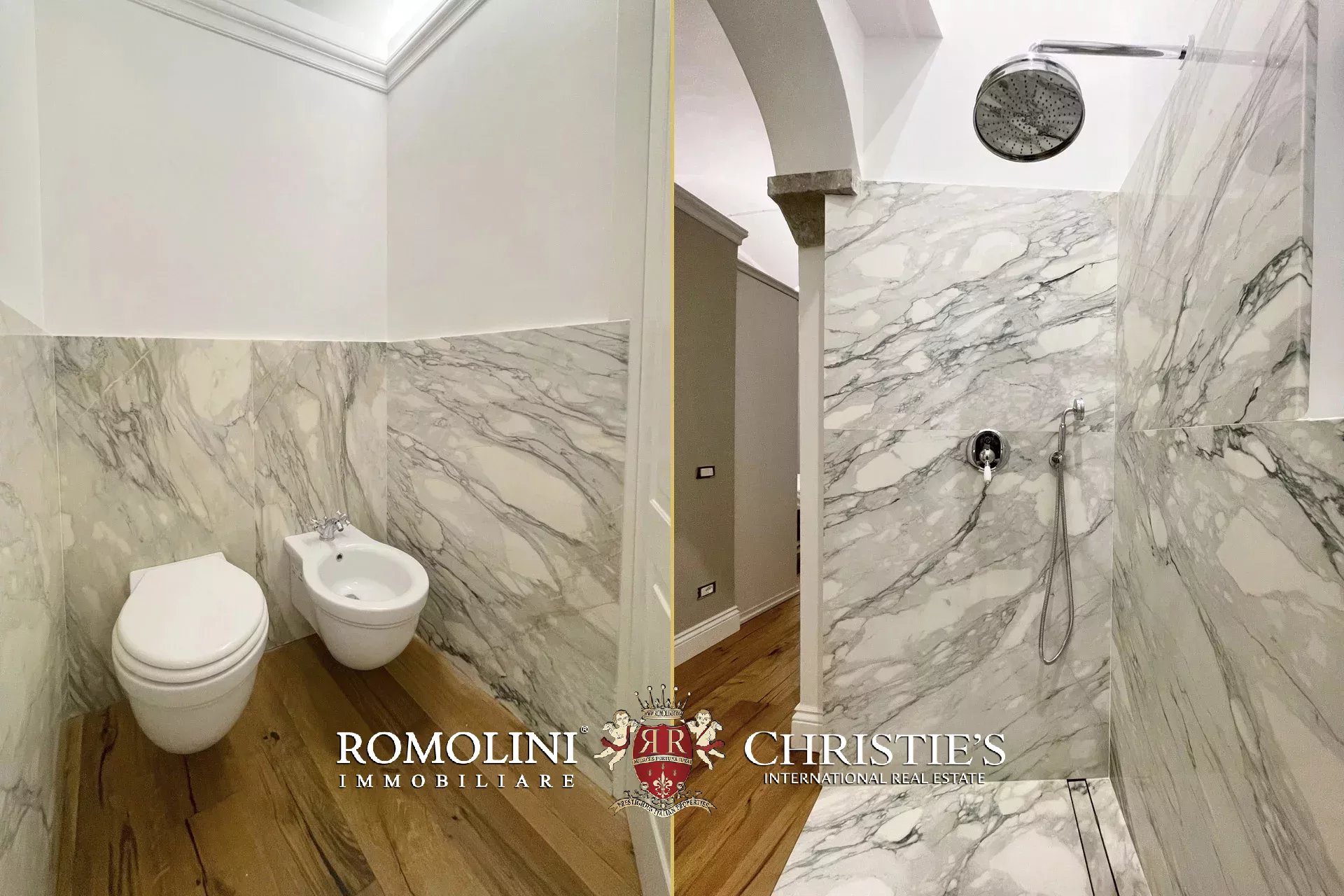 La zona notte comprende una spaziosa camera matrimoniale e un elegante bagno con ampia doccia rivestita in lastre di marmo. L’appartamento è dotato di aria condizionata, nuovi infissi e pavimenti in parquet, garantendo comfort moderno nel rispetto del carattere storico dell’edificio.