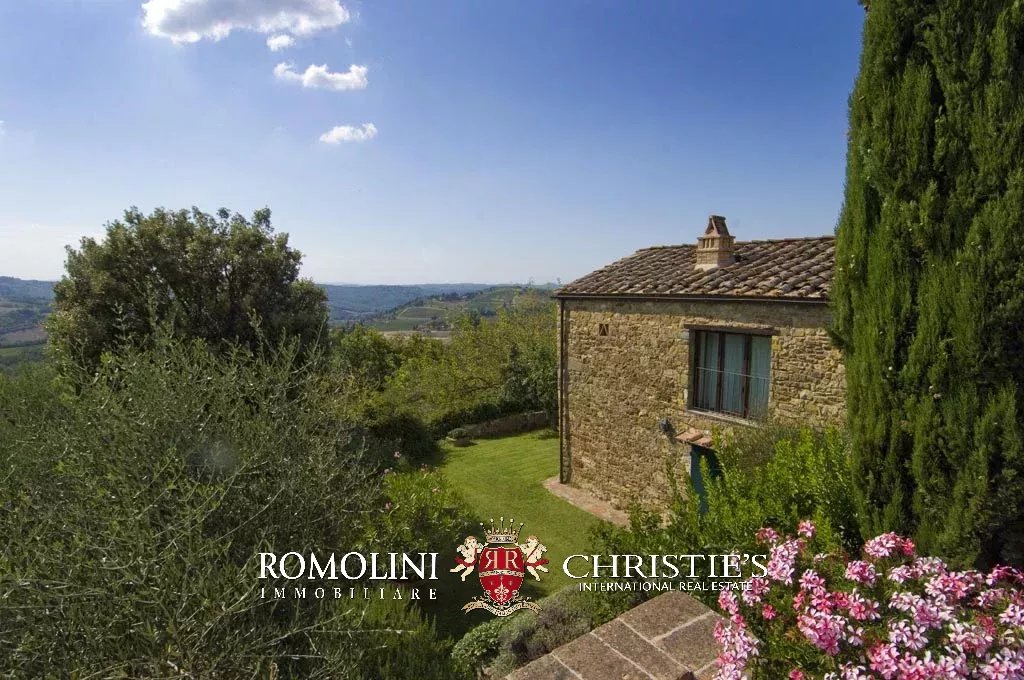 Rose e glicine fanno da cornice alla casa padronale in pietra, in tipico stile toscano, caratterizzata dalla torretta, dalla quale si gode di una splendida vista sul paesaggio circostante.