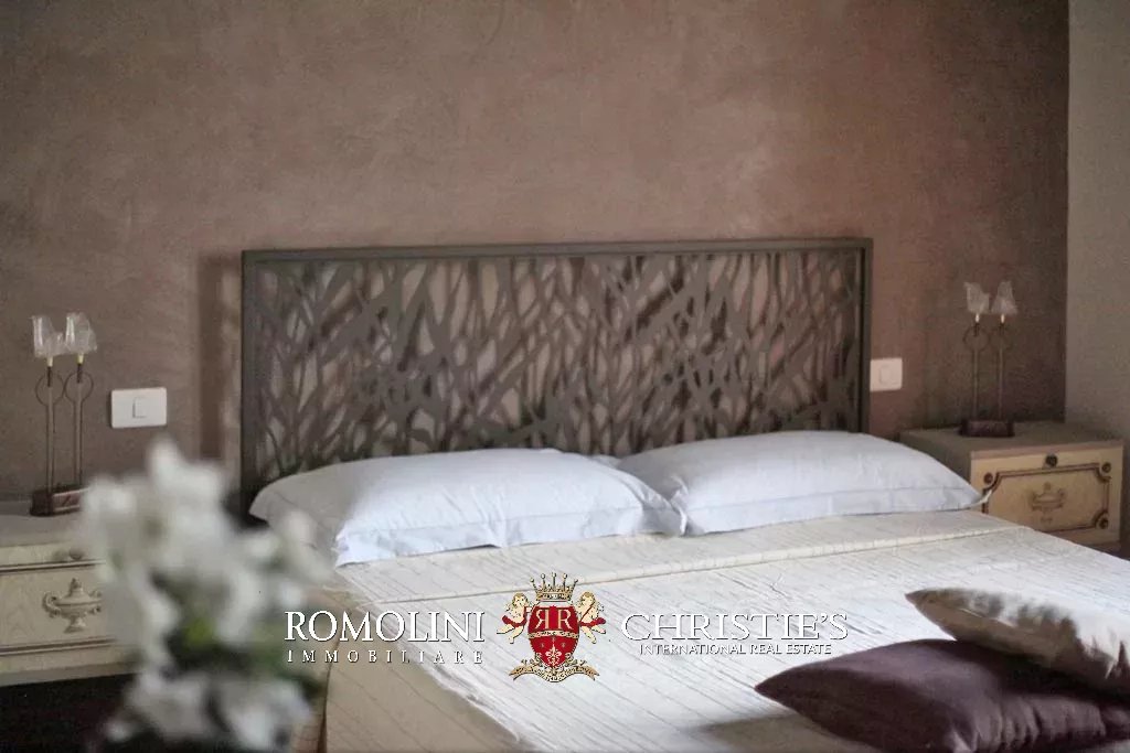 Il giardino include un’area gioco per bambini, un’area attrezzata per il barbecue e due piscine con solarium. Il terreno si estende per circa 7,5 ettari e sono presenti 18 piante di ulivo.
