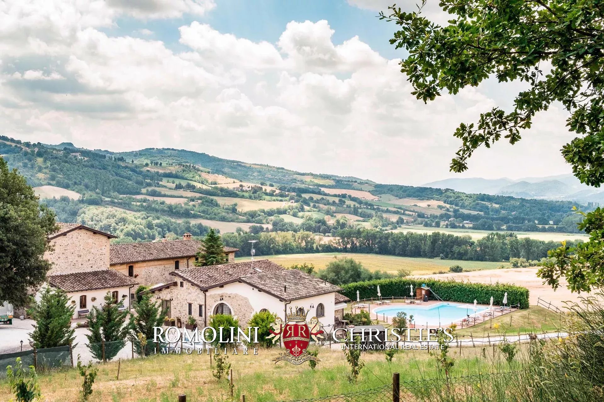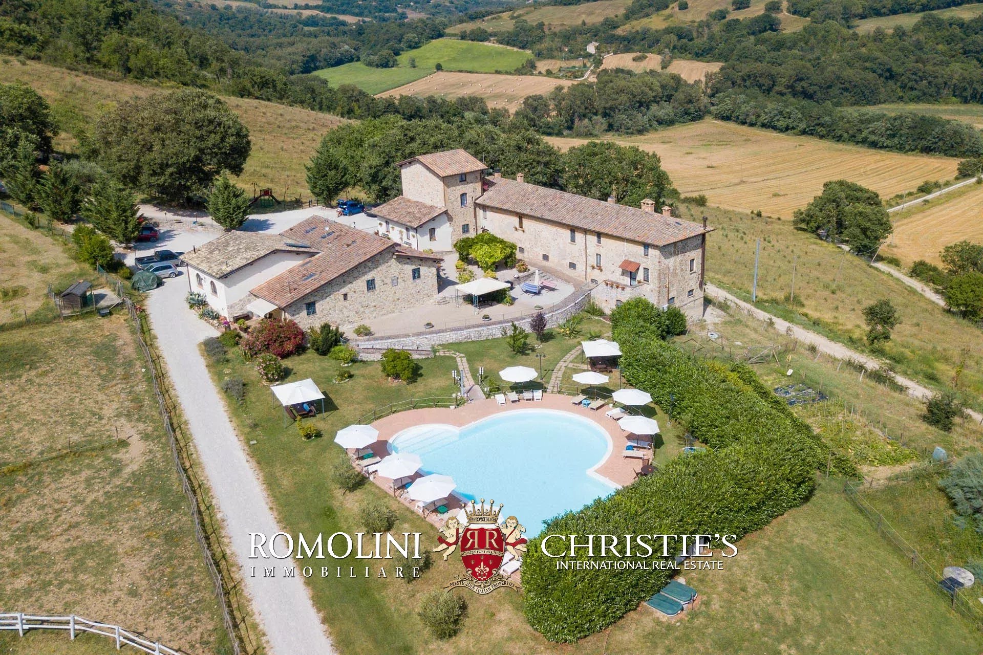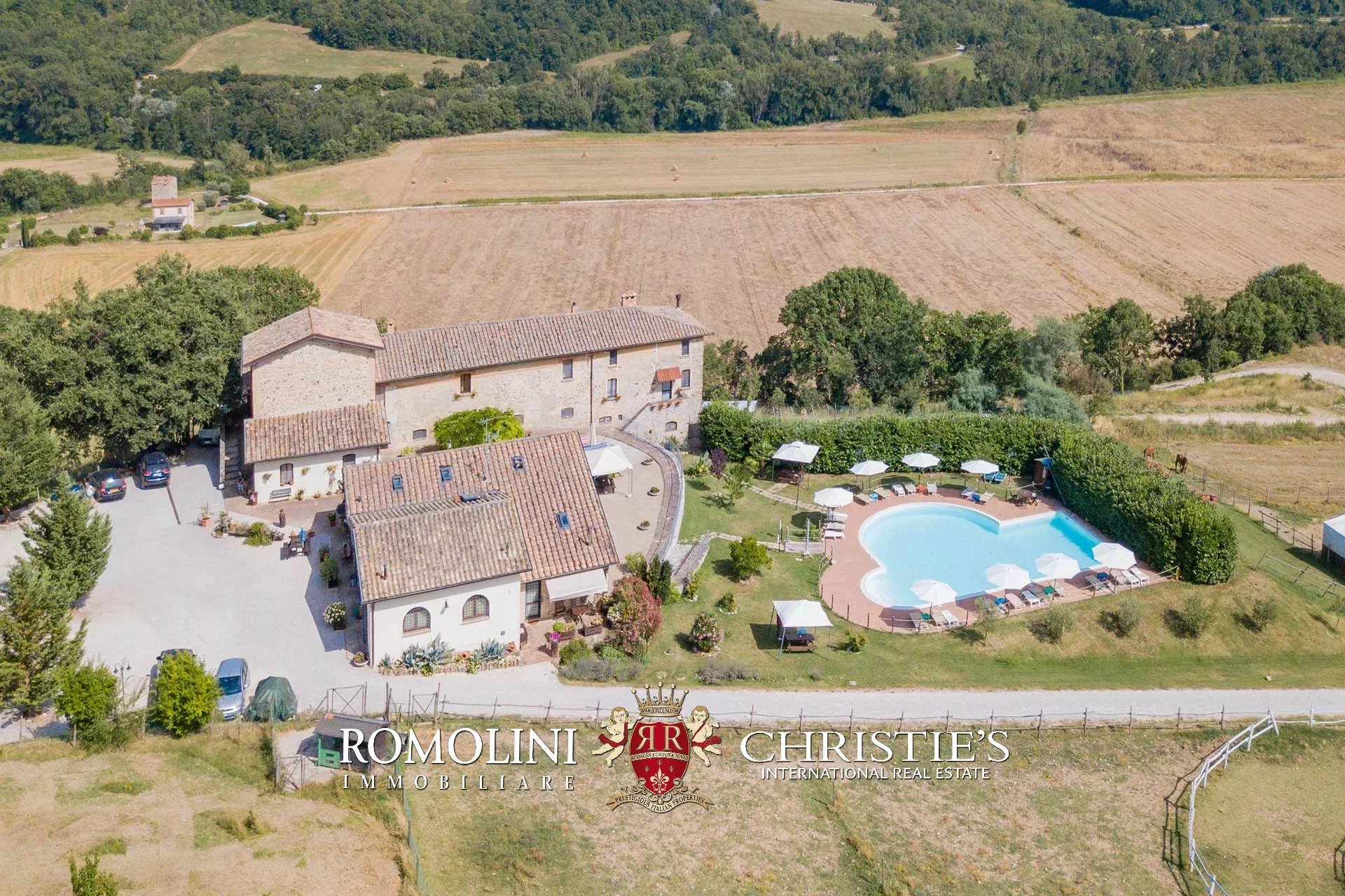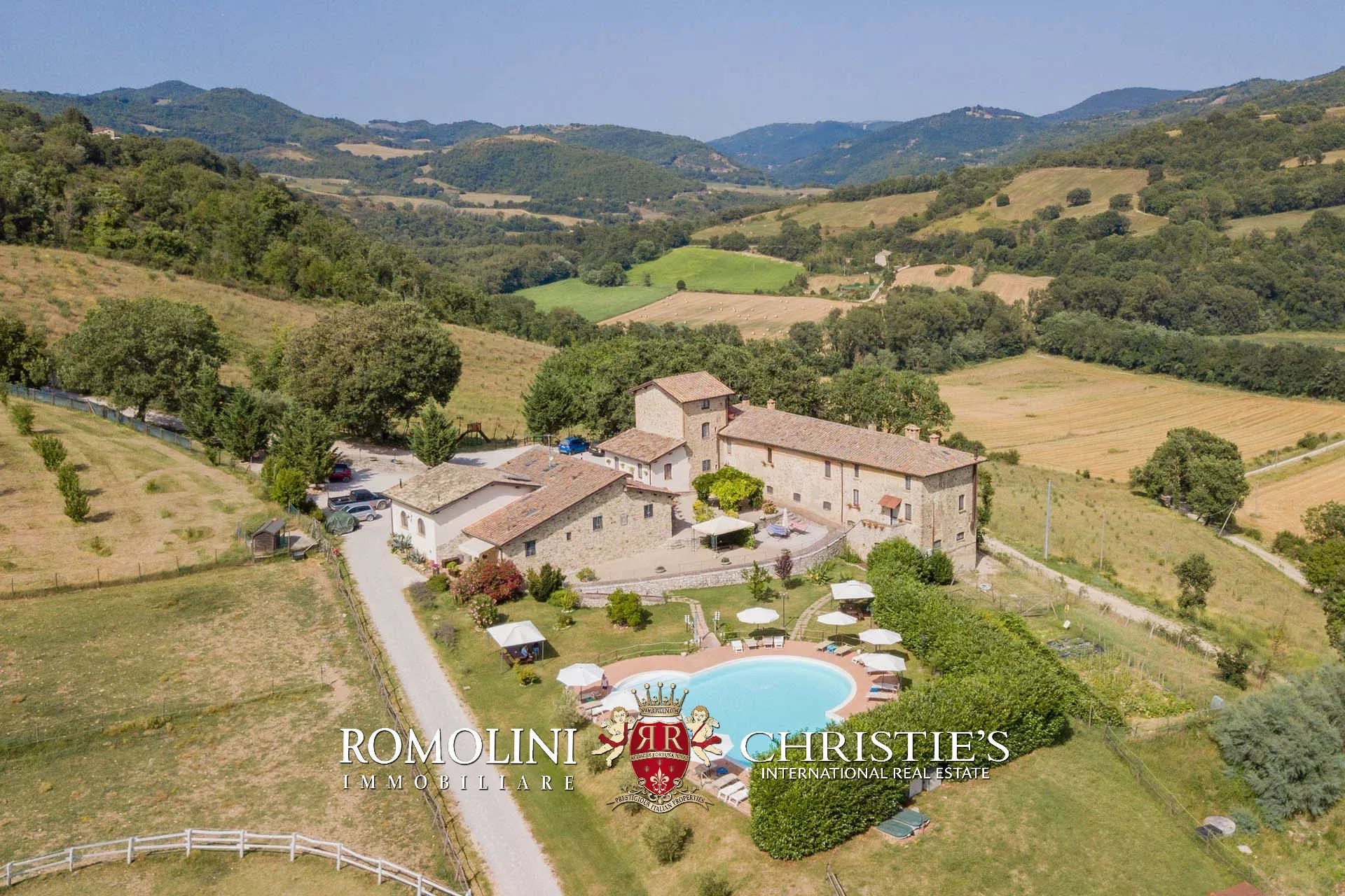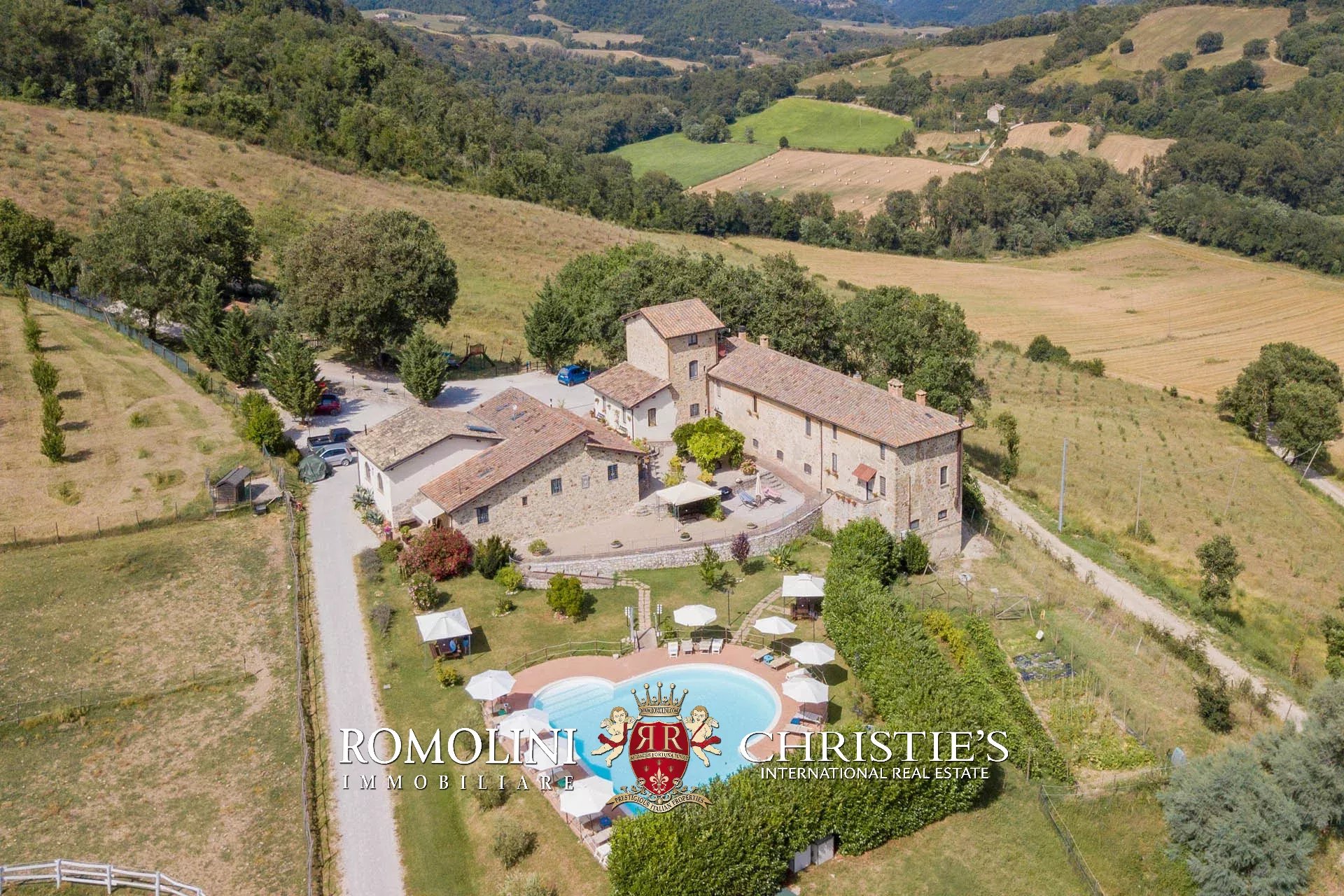Sulle colline dell’Umbria, non lontano da Umbertide, azienda agricola biologica di 13,6 ettari con agriturismo e maneggio in vendita. Gli edifici residenziali, ristrutturati in anni recenti, sono stati divisi in appartamenti e camere per gli ospiti e includono tra le altre cose un grande ristorante. I terreni sono tutti coltivati con metodi biologici e ospitano 2.800 piante di ulivo e un paddock per i cavalli.