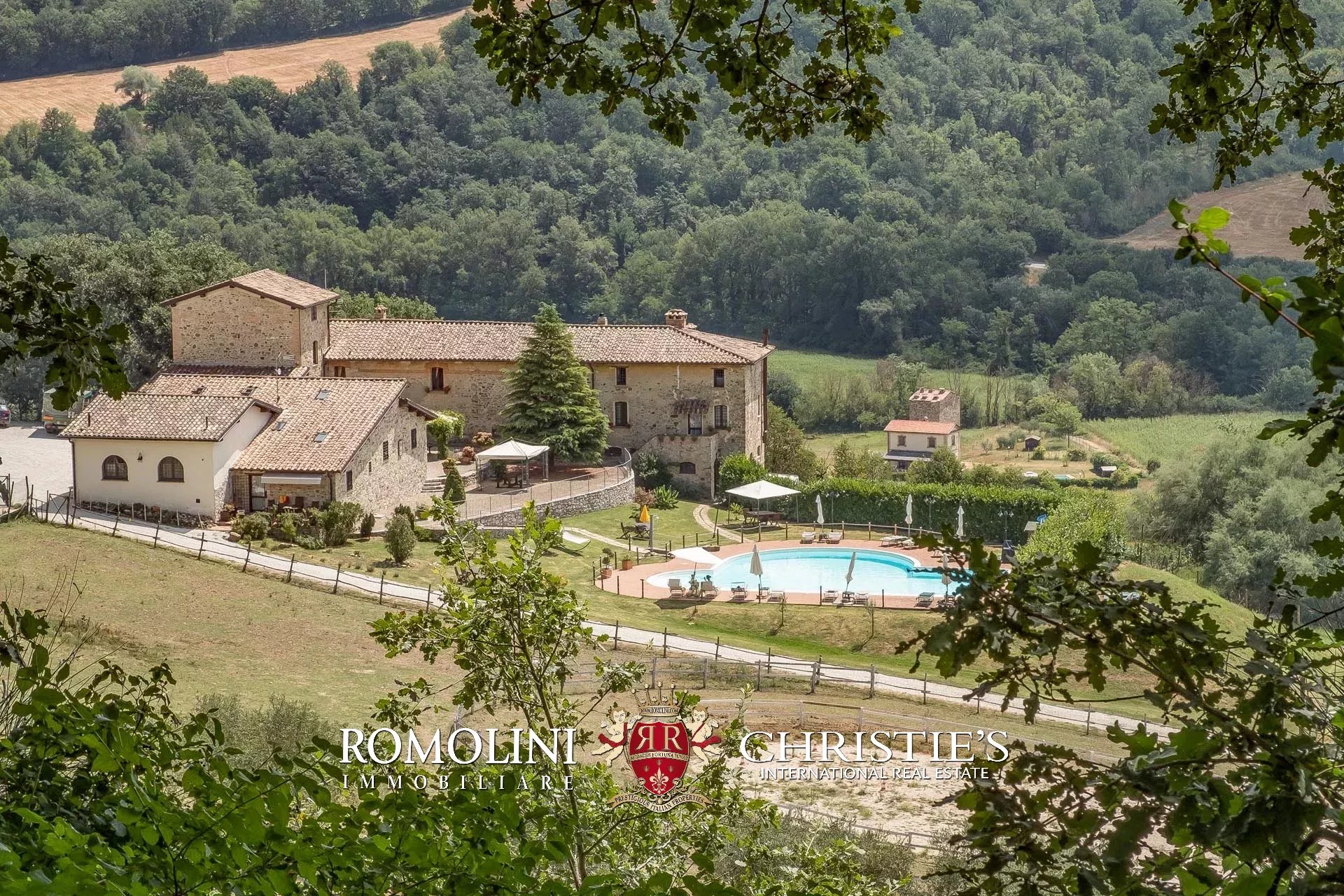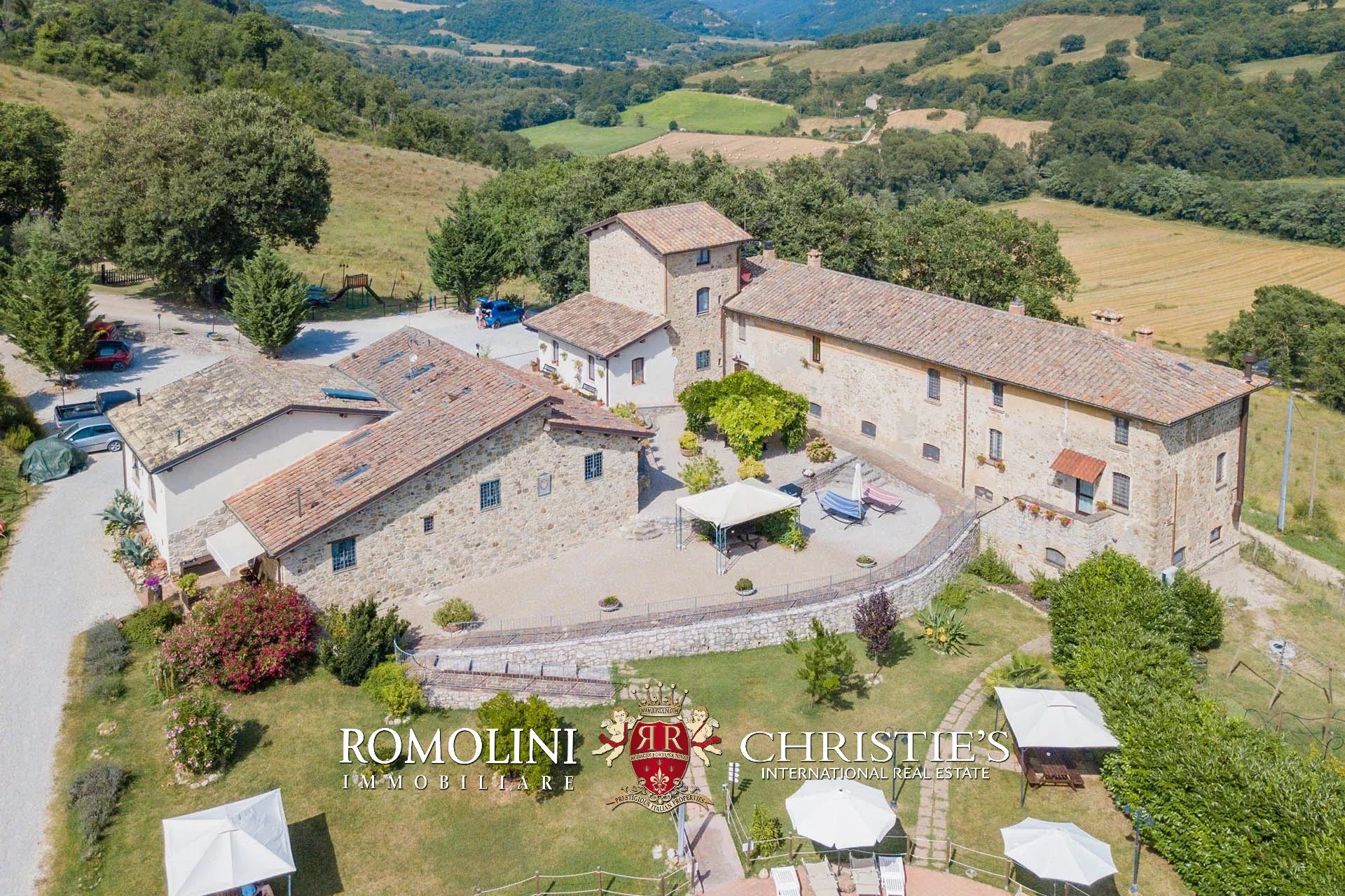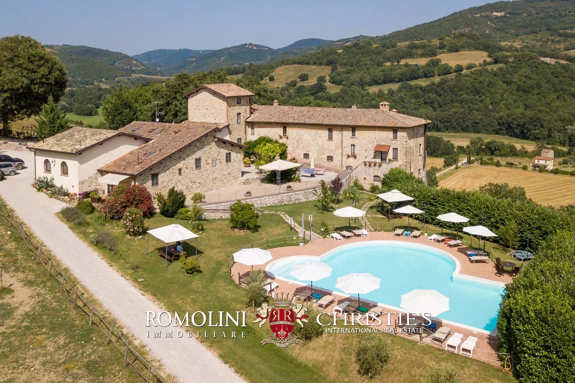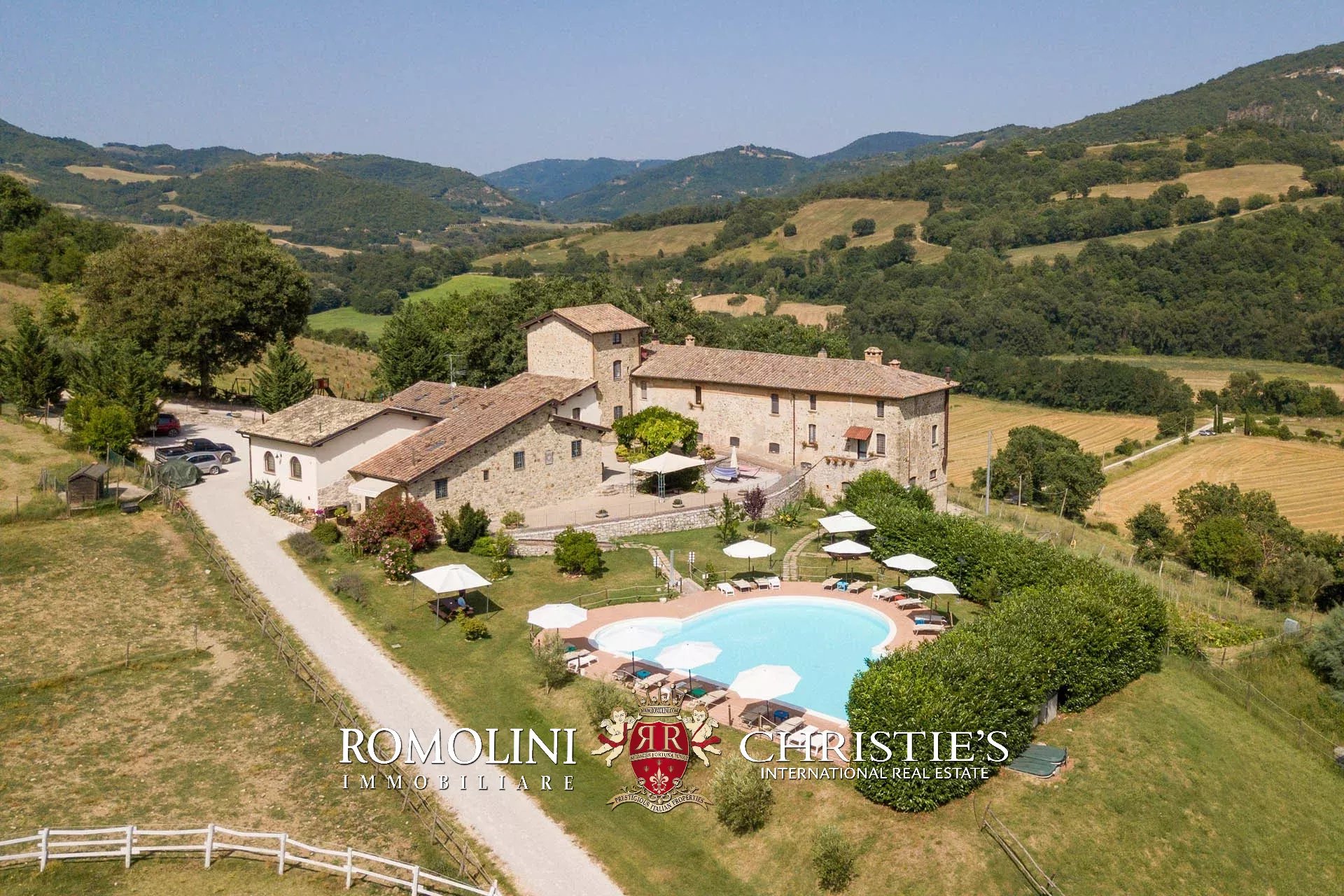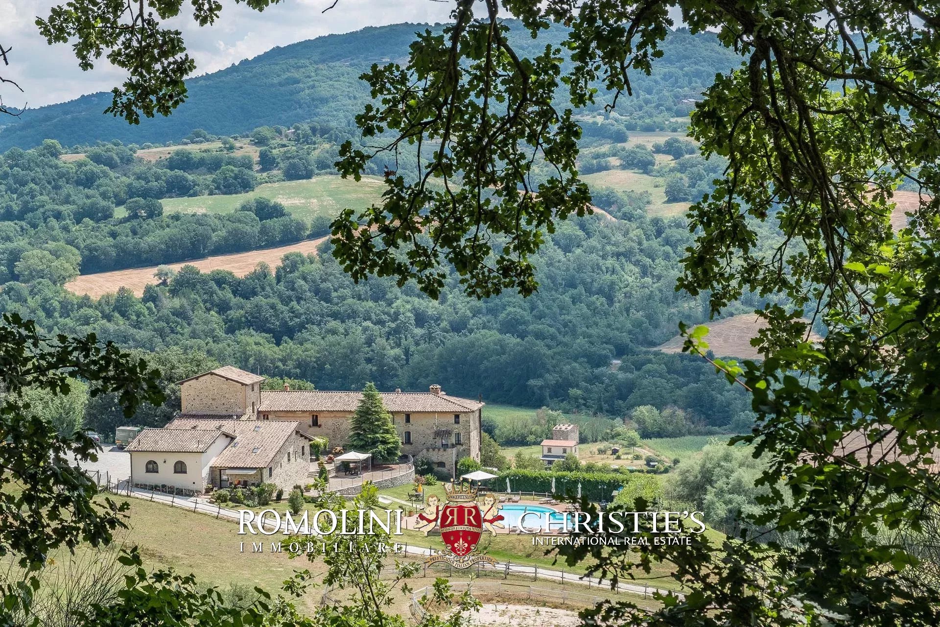 Sulle colline dell’Umbria, non lontano da Umbertide, azienda agricola biologica di 13,6 ettari con agriturismo e maneggio in vendita. Gli edifici residenziali, ristrutturati in anni recenti, sono stati divisi in appartamenti e camere per gli ospiti e includono tra le altre cose un grande ristorante. I terreni sono tutti coltivati con metodi biologici e ospitano 2.800 piante di ulivo e un paddock per i cavalli.