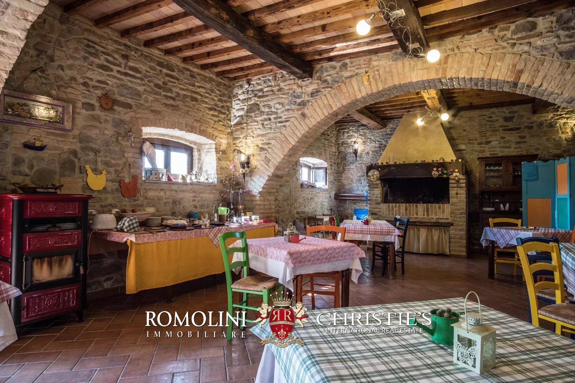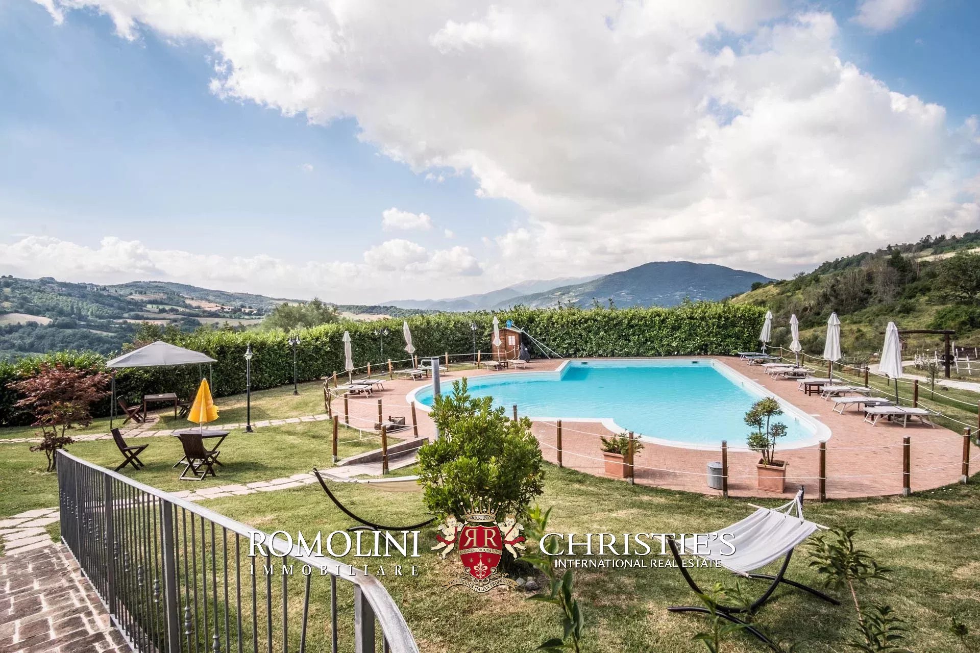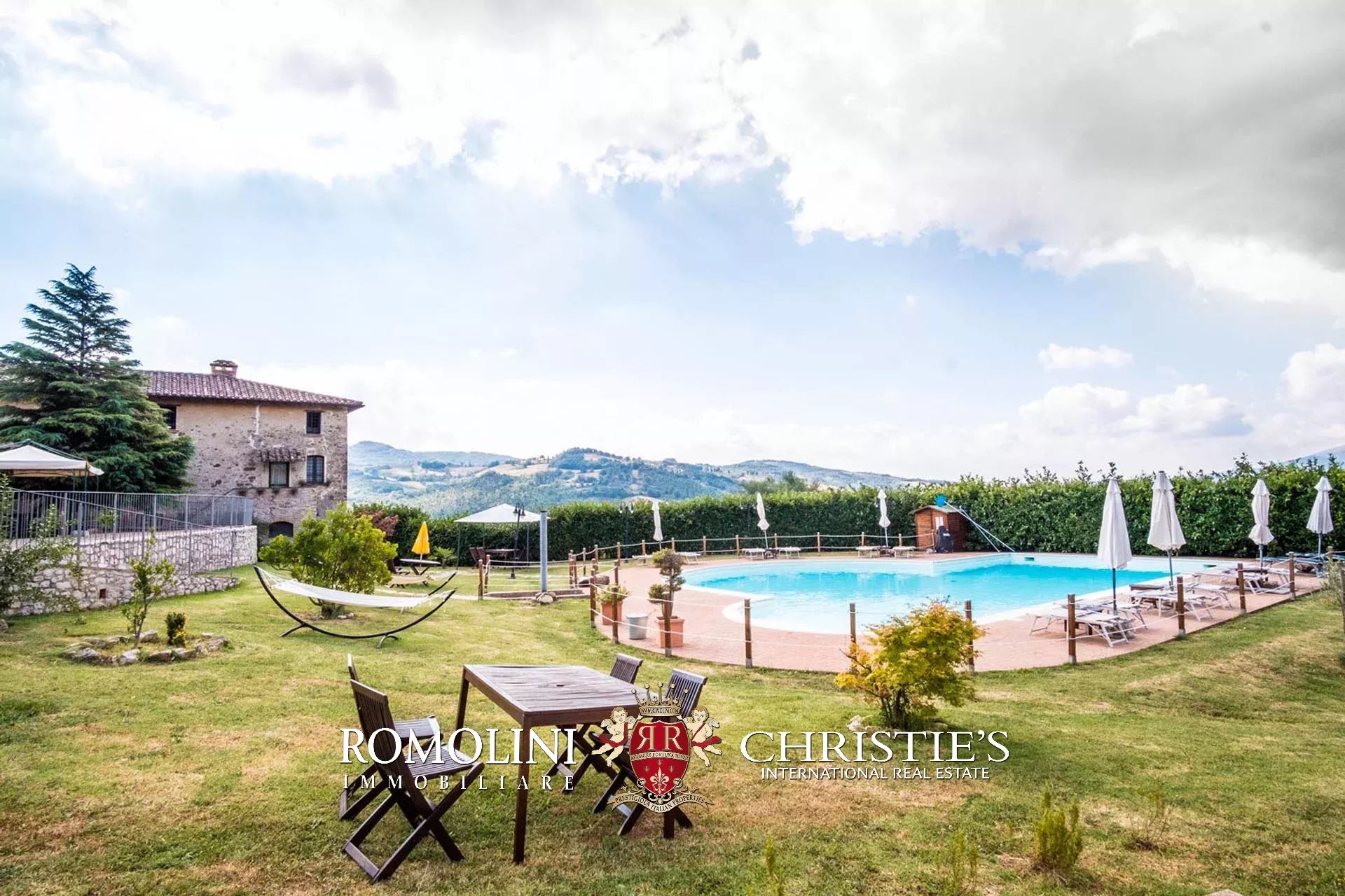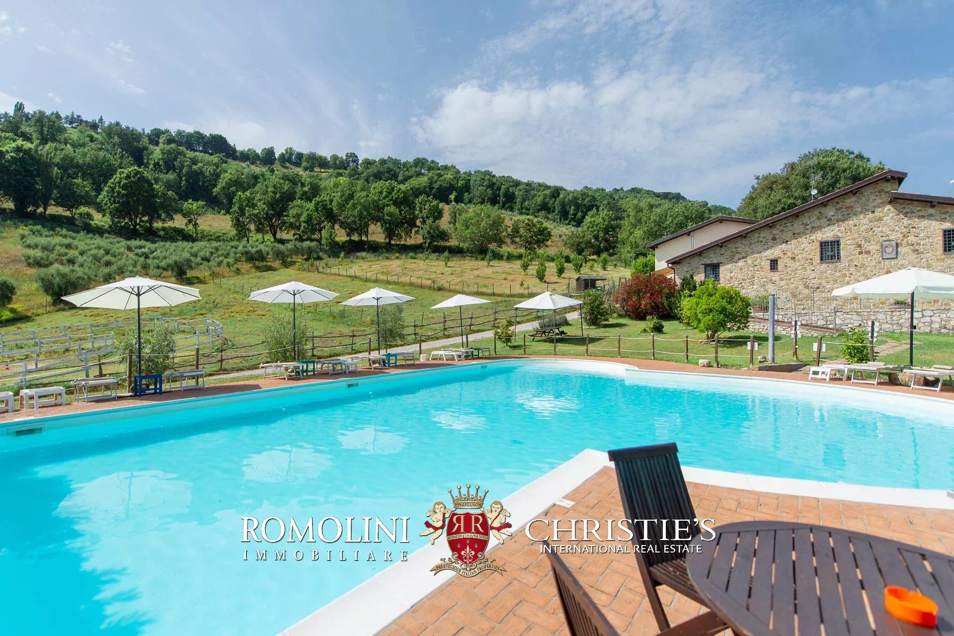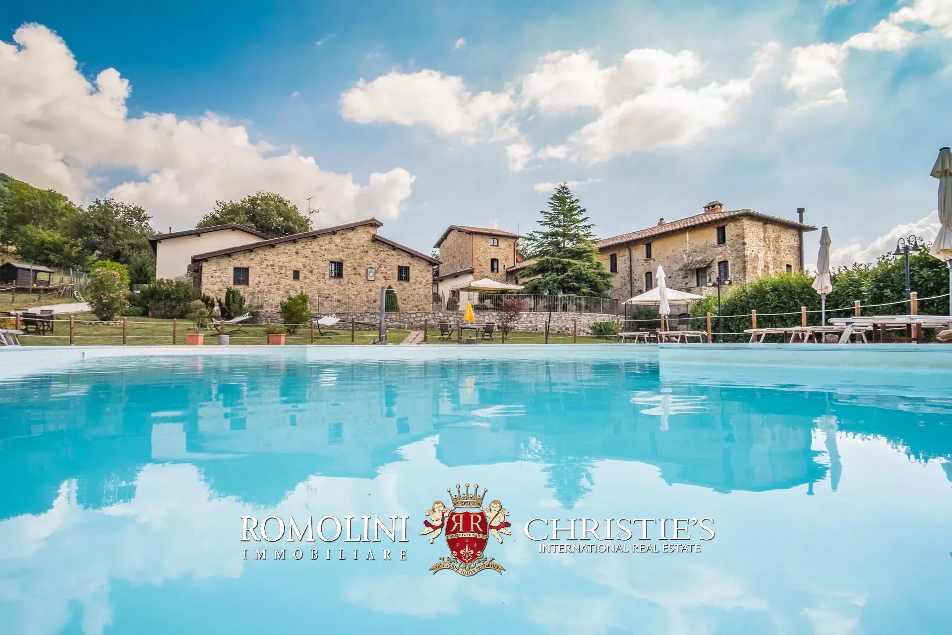 Sulle colline dell’Umbria, non lontano da Umbertide, azienda agricola biologica di 13,6 ettari con agriturismo e maneggio in vendita. Gli edifici residenziali, ristrutturati in anni recenti, sono stati divisi in appartamenti e camere per gli ospiti e includono tra le altre cose un grande ristorante. I terreni sono tutti coltivati con metodi biologici e ospitano 2.800 piante di ulivo e un paddock per i cavalli.