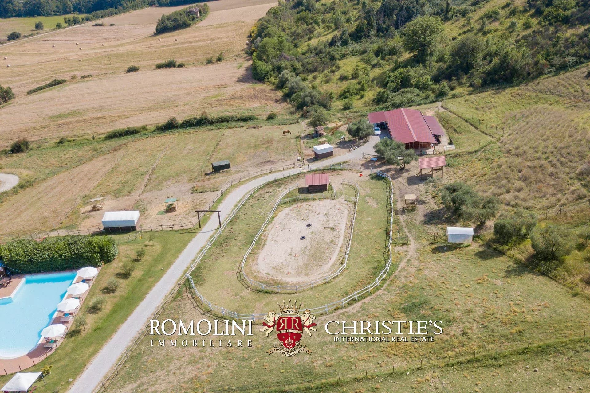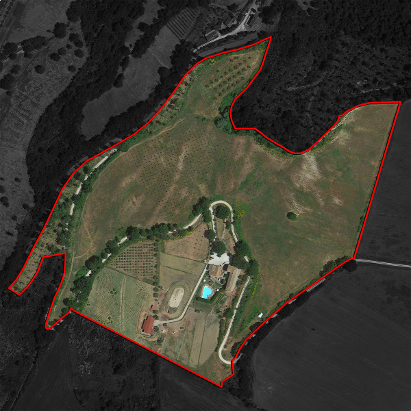 La tenuta si stende su una superficie totale di 13,6 ettari, distribuiti sulle colline circostanti. La maggior parte del terreno è coperto da seminativi e pascoli (9,4 ha), a ulteriore riprova della vocazione equestre della proprietà, con piccole aree coperte da alberi (0,3 ha).