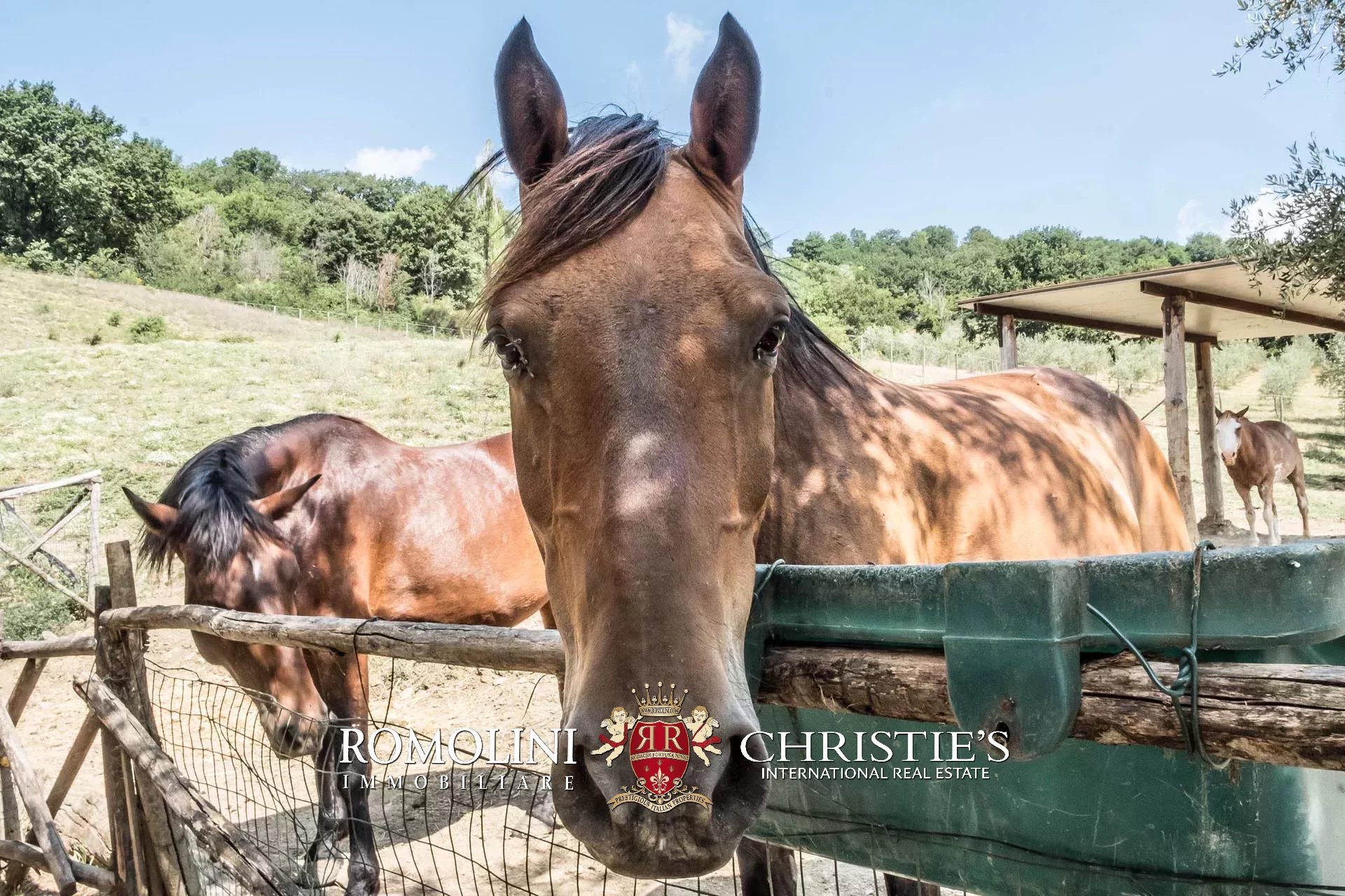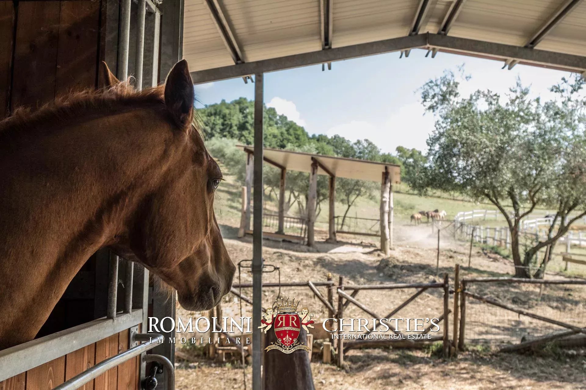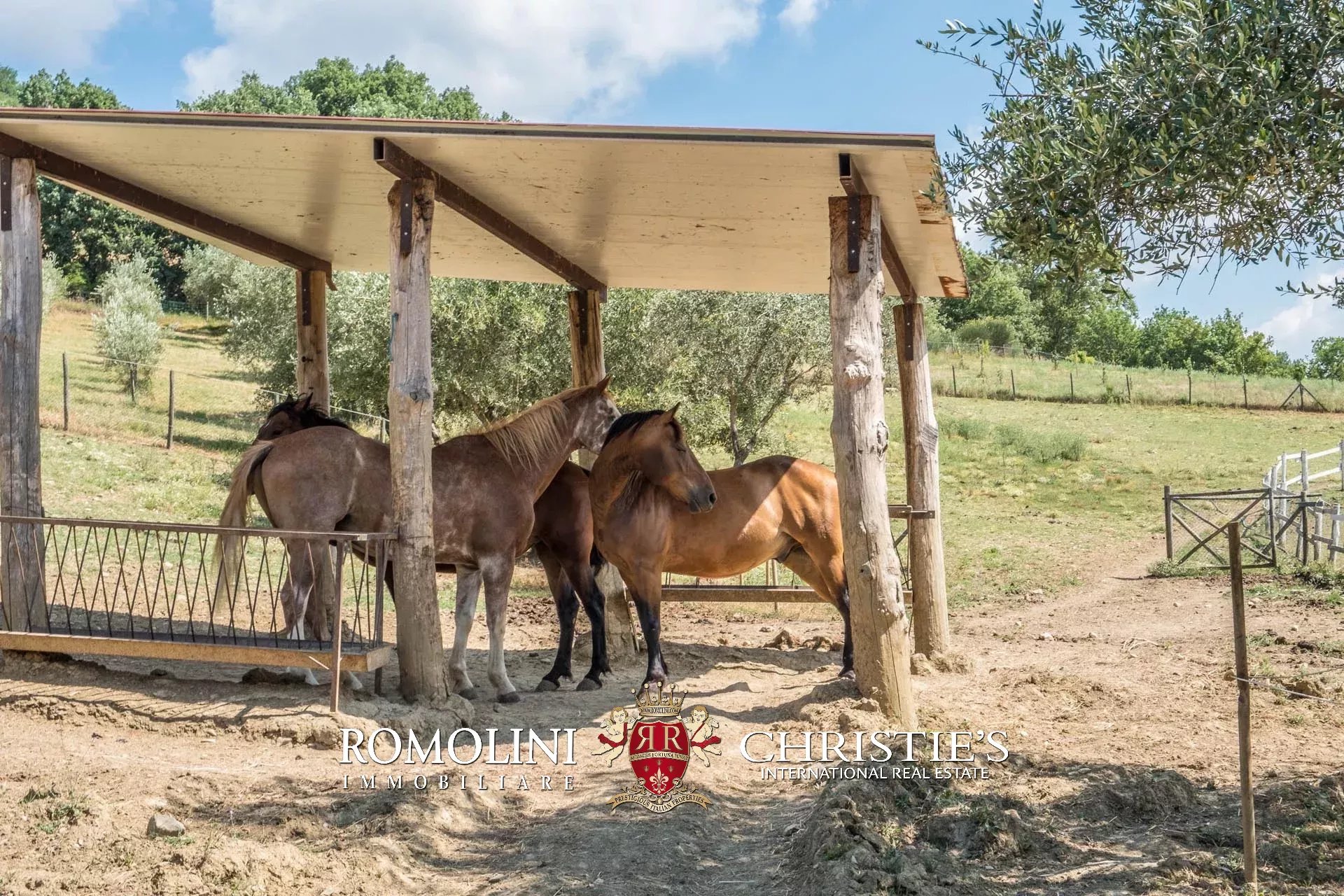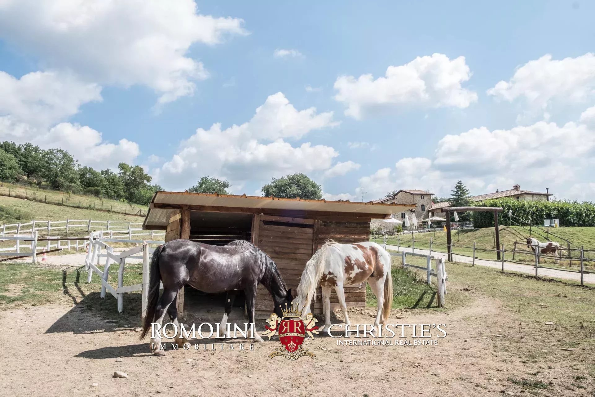 A sud degli edifici, in posizione pianeggiante, si trova una grande stalla (202 m²) con sei box per i cavalli (completi di abbeveratoio e mangiatoia), paddock esterno, rimessa attrezzi e una tettoia con doccia per gli animali.