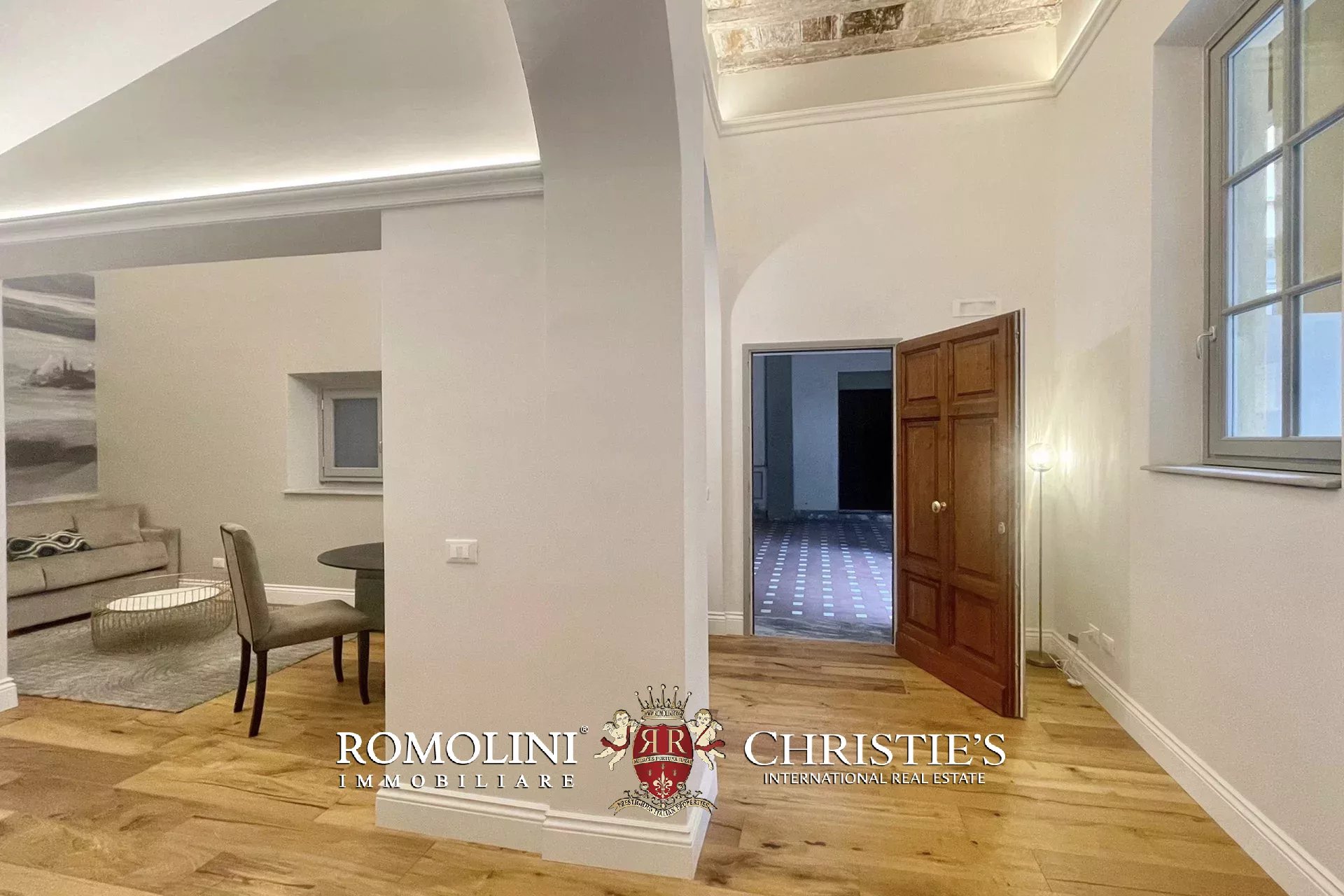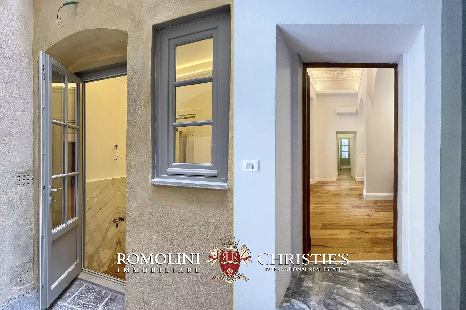 L’immobile, con accesso dal cortile condominiale e dotato di doppio ingresso, è stato completamente ristrutturato e finemente arredato, con particolare attenzione alla qualità delle finiture e al rispetto del carattere storico dell’edificio. L’ingresso si apre su un ampio e luminoso salone caratterizzato da suggestivi soffitti a volta, affiancato da una zona cottura completamente attrezzata.