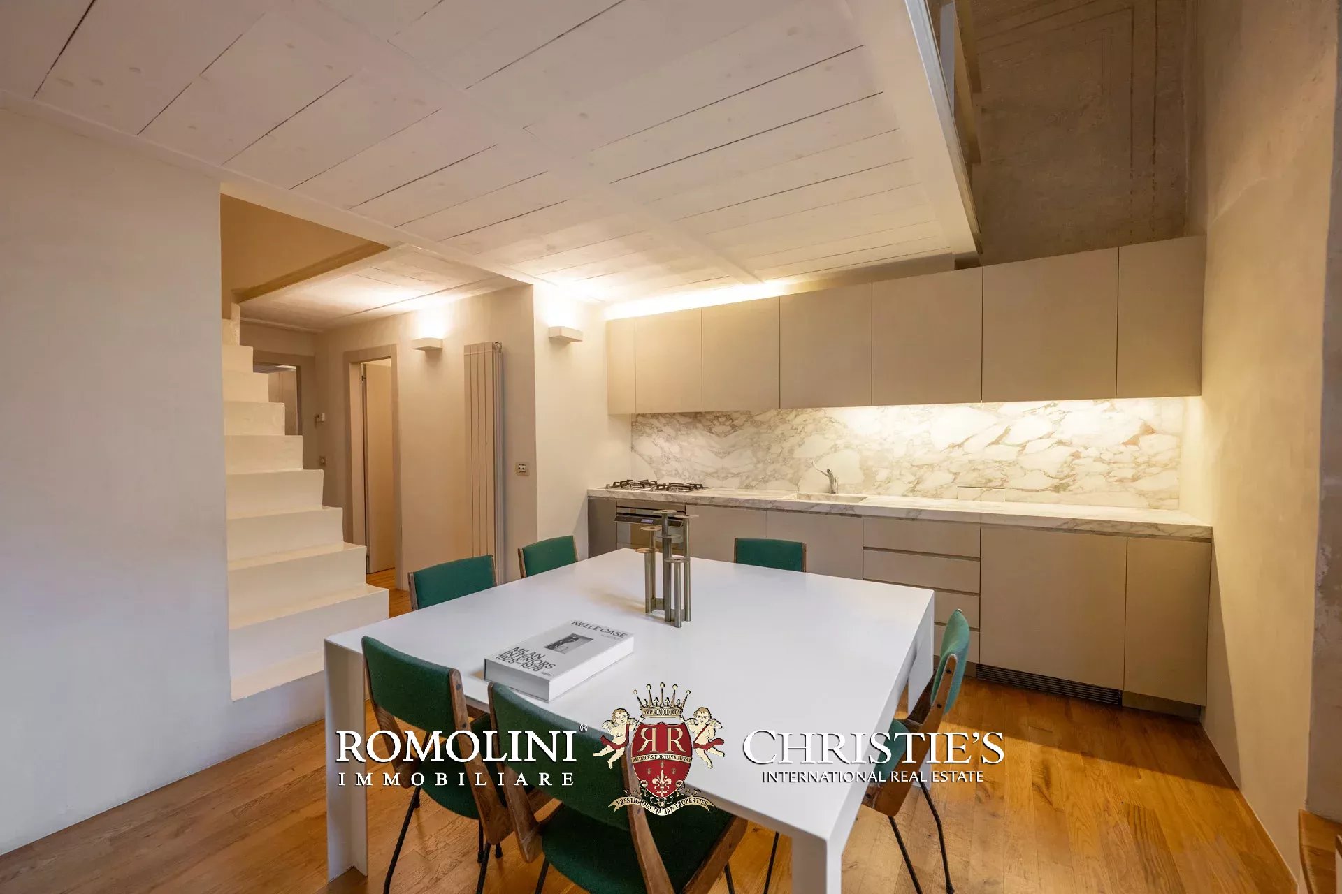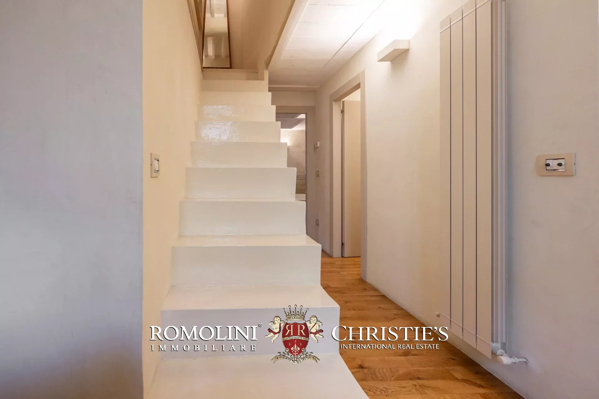 Il piano terra si articola in un ampio ingresso/soggiorno, sala da pranzo con cucina, camera e bagno. Al piano ammezzato si accede poi con due distinte scale interne (una nella sala da pranzo e l'altra nella camera): qui si trovano due stanze pluriuso (ideali come soggiorno e zona relax), due bagni e un guardaroba. Gli ambienti sono caratterizzati da soluzioni di design originali e realizzate con estrema cura del dettaglio e dei materiali utilizzati.