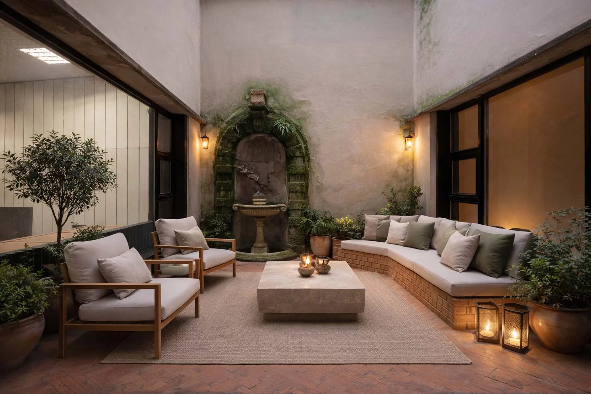Completano la proprietà una raffinata scultura, una fontana esterna e l’accesso a un curato cortile condominiale, raggiungibile tramite doppio ingresso carrabile. Qui l’appartamento dispone di un posto auto riservato oltre a due posti auto privati nel garage (38 m²) di proprietà.