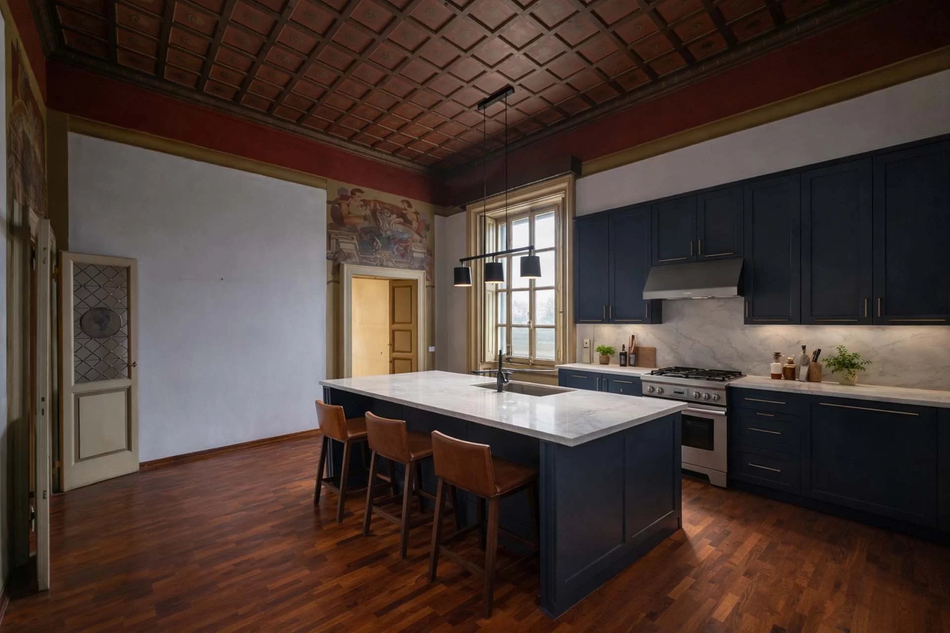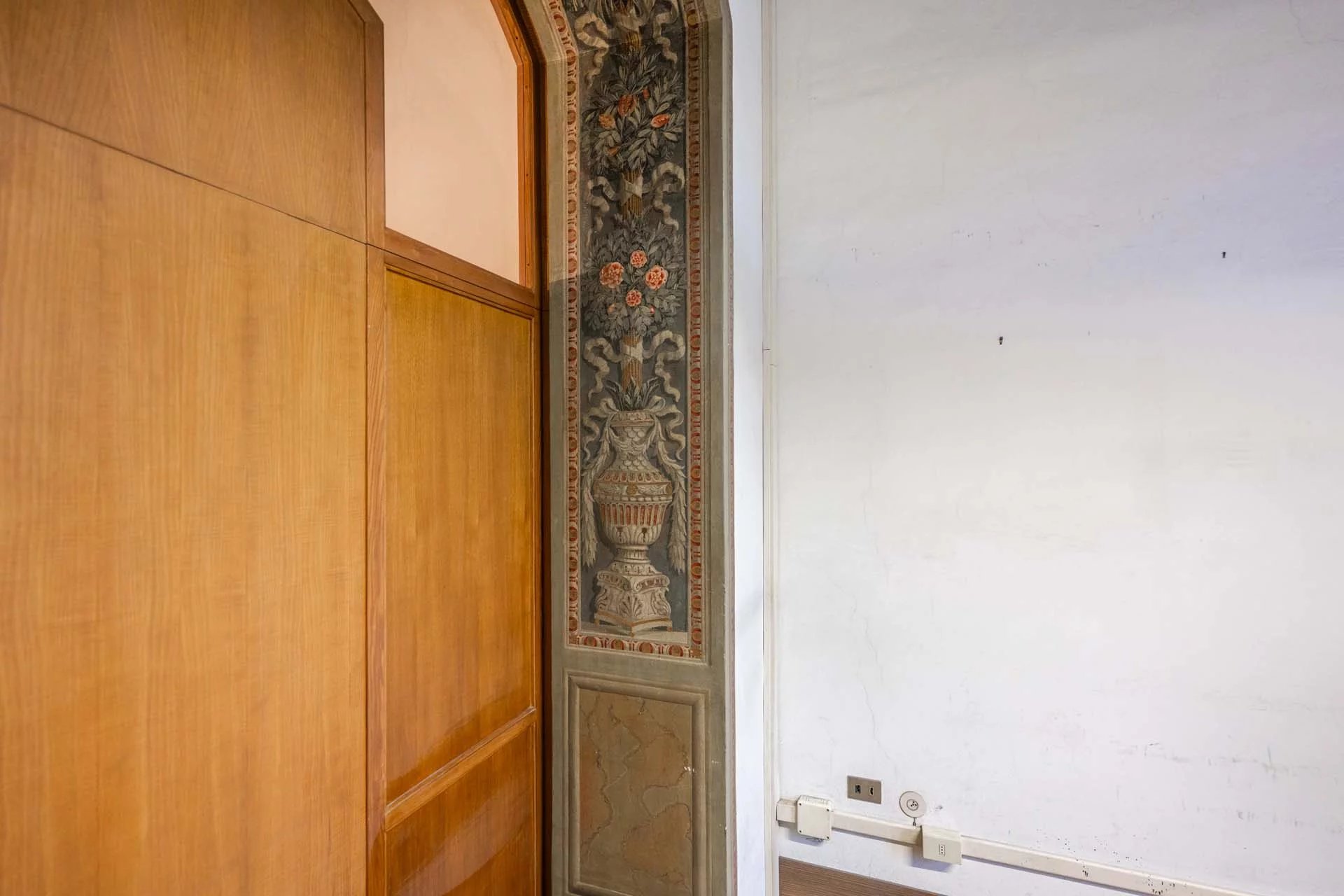 L’appartamento conserva straordinarie caratteristiche storico artistiche, tra cui alti soffitti a cassettoni, preziose decorazioni pittoriche, pavimenti in parquet e un elegante camino nel soggiorno principale. Le ampie finestre garantiscono una luminosità eccellente e splendidi affacci sul fiume Arno, valorizzando ulteriormente gli ambienti di rappresentanza.