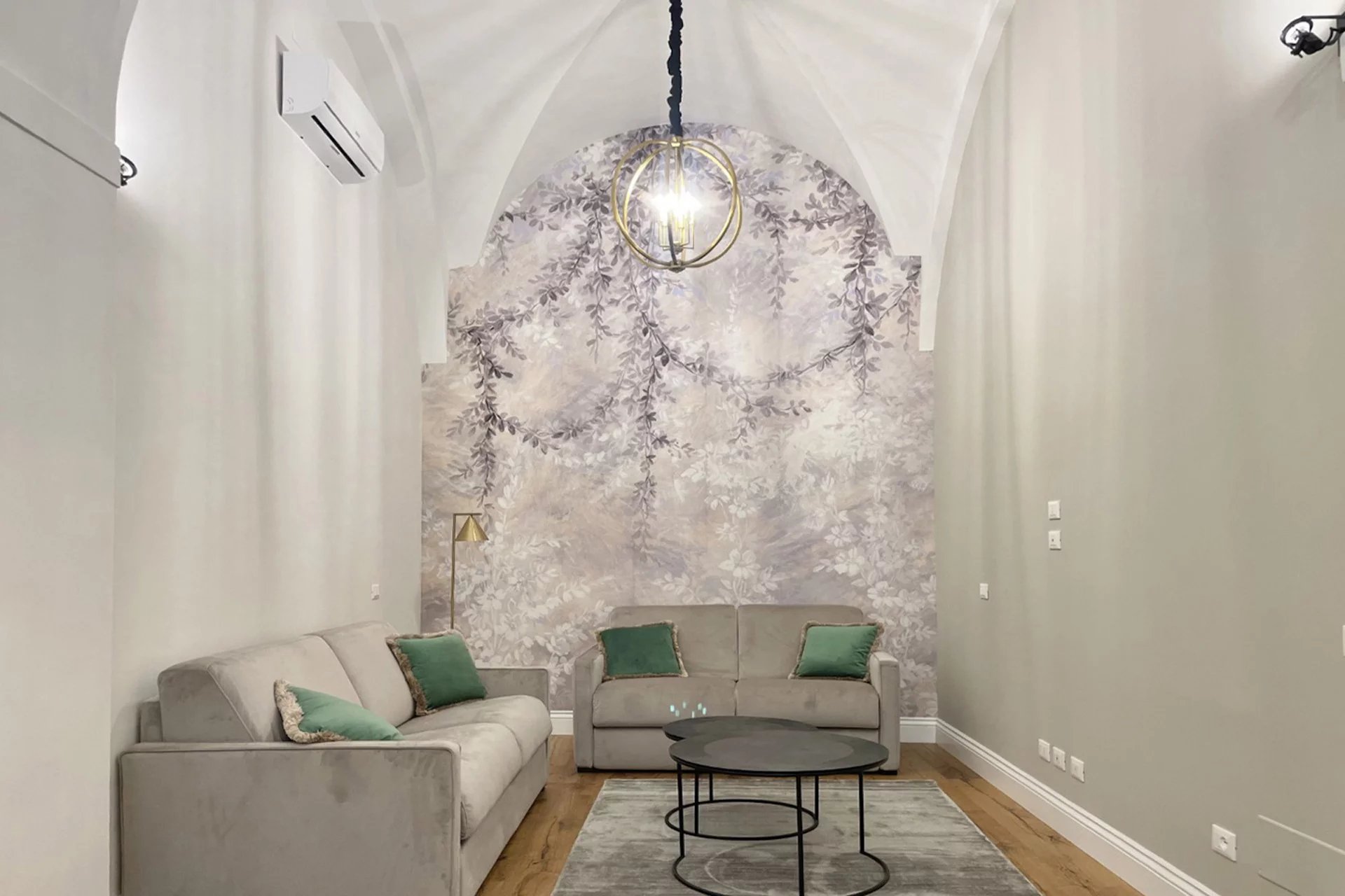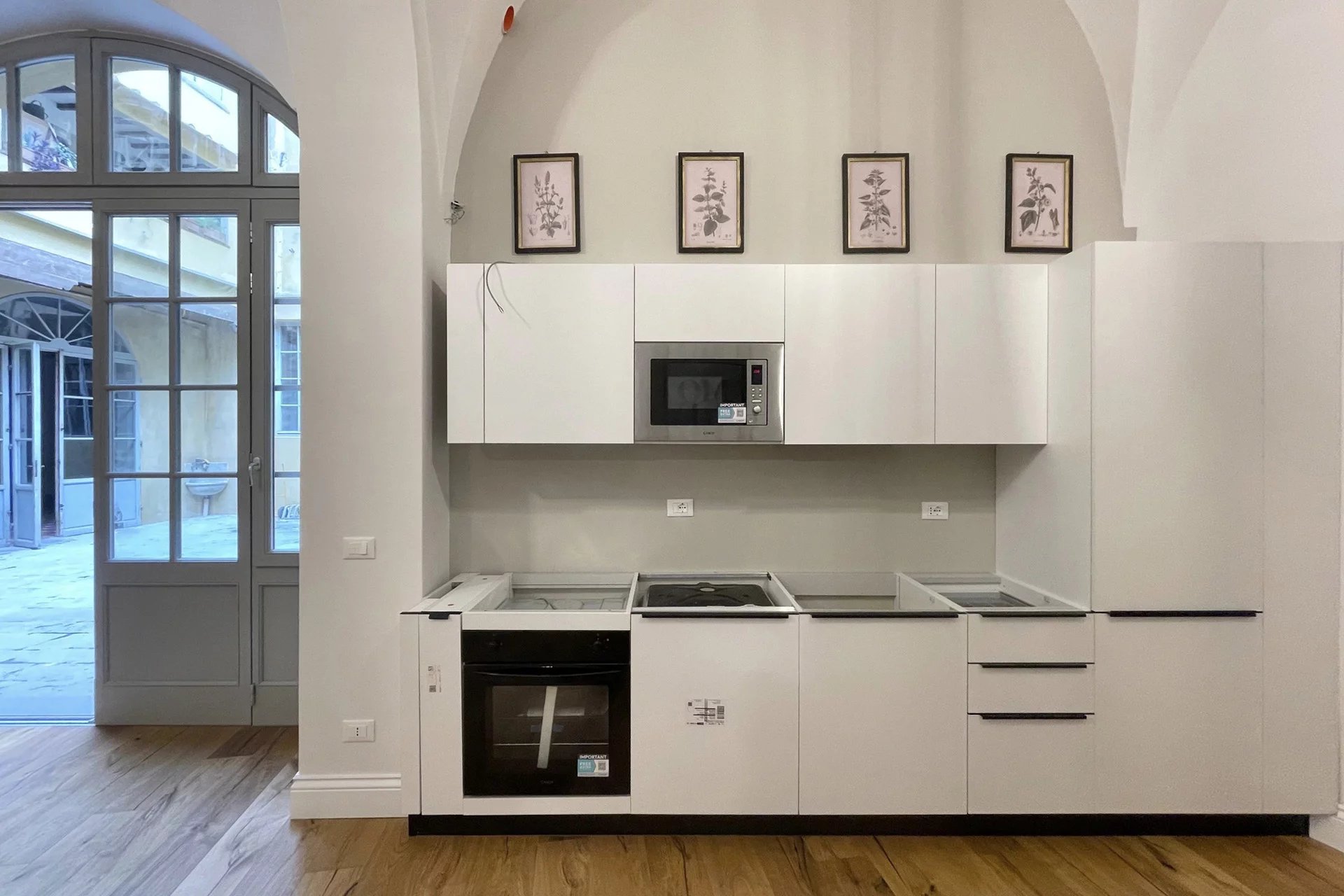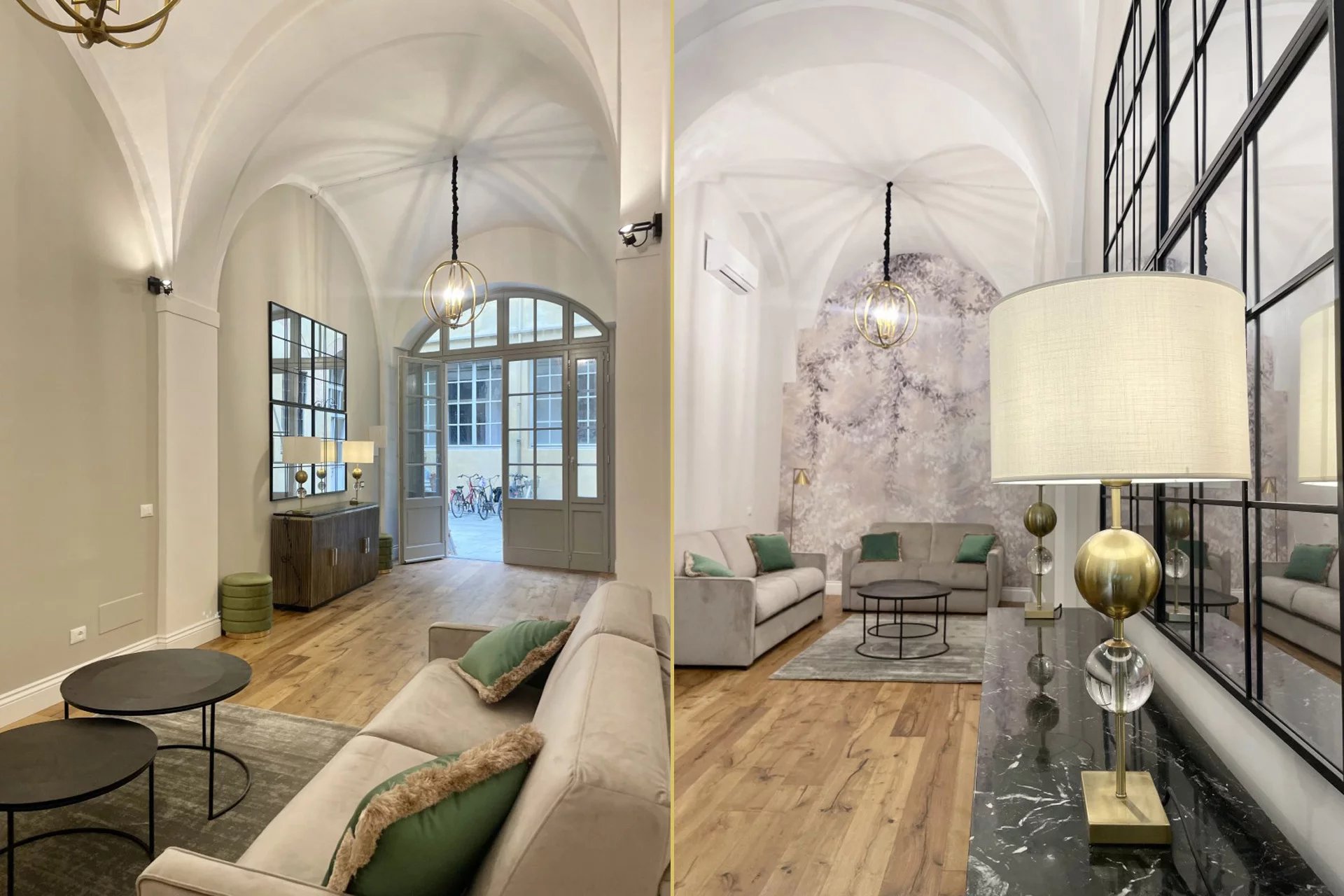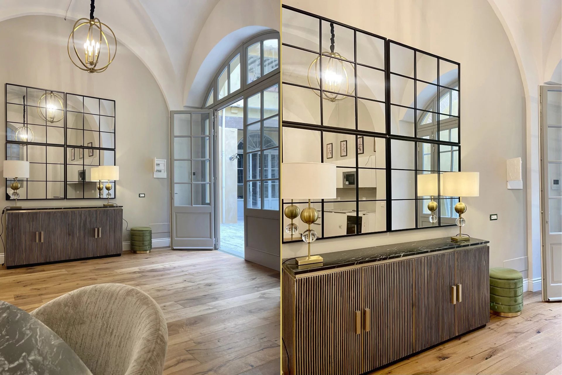 L’immobile, con accesso dal cortile condominiale del palazzo, è stato completamente ristrutturato e arredato con grande attenzione ai dettagli, utilizzando materiali e finiture di alto livello. L’ingresso si apre su un ampio e luminoso salone caratterizzato da suggestivi soffitti a volta, affiancato da una zona cottura completamente attrezzata.