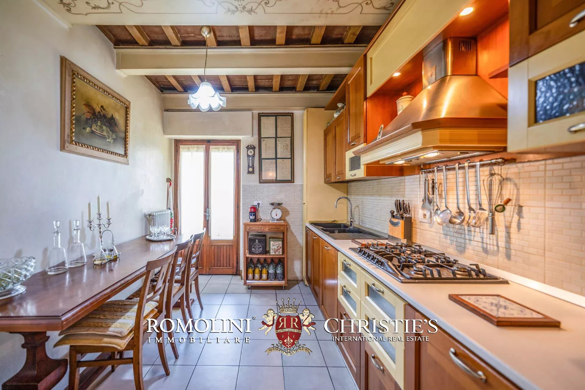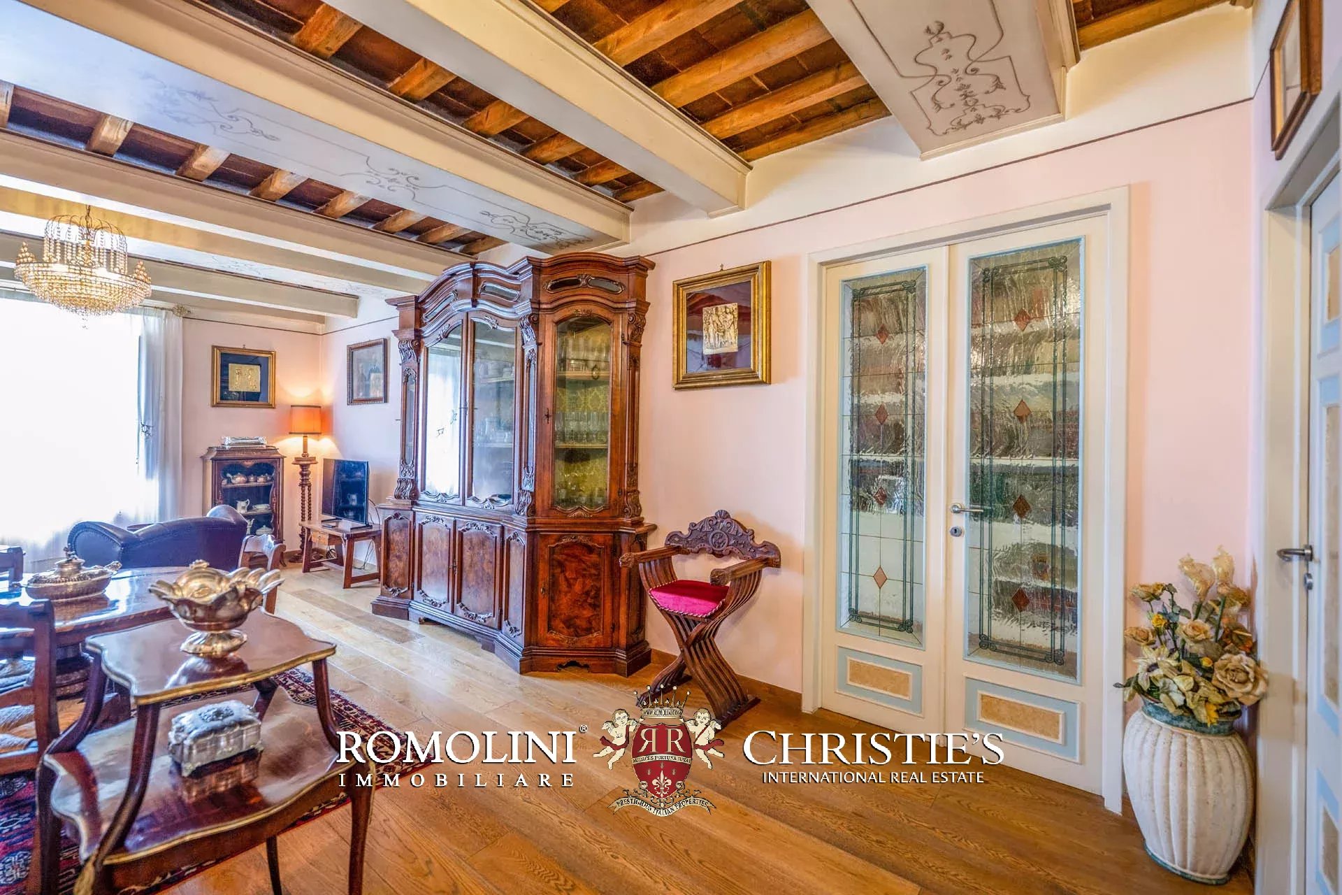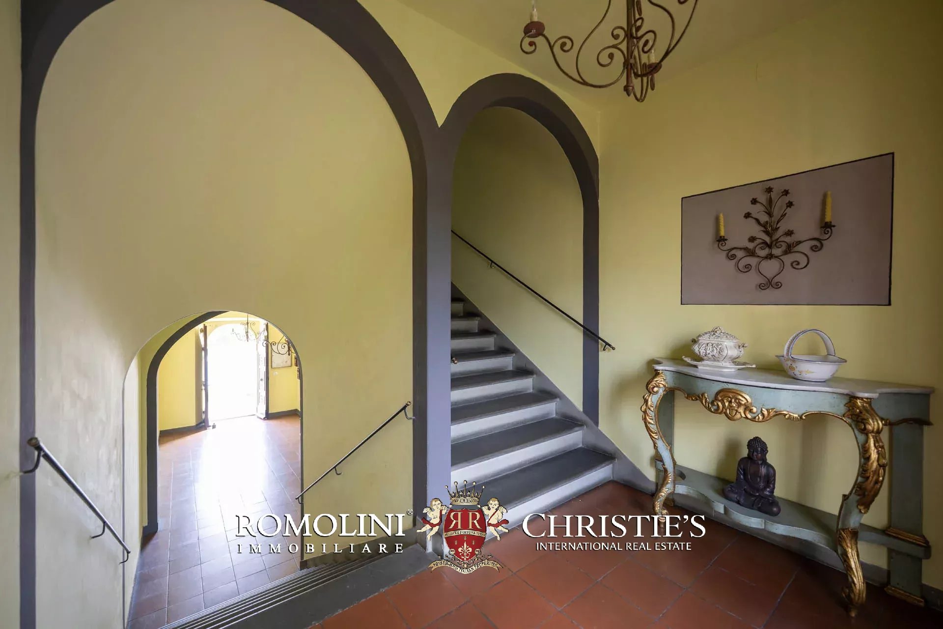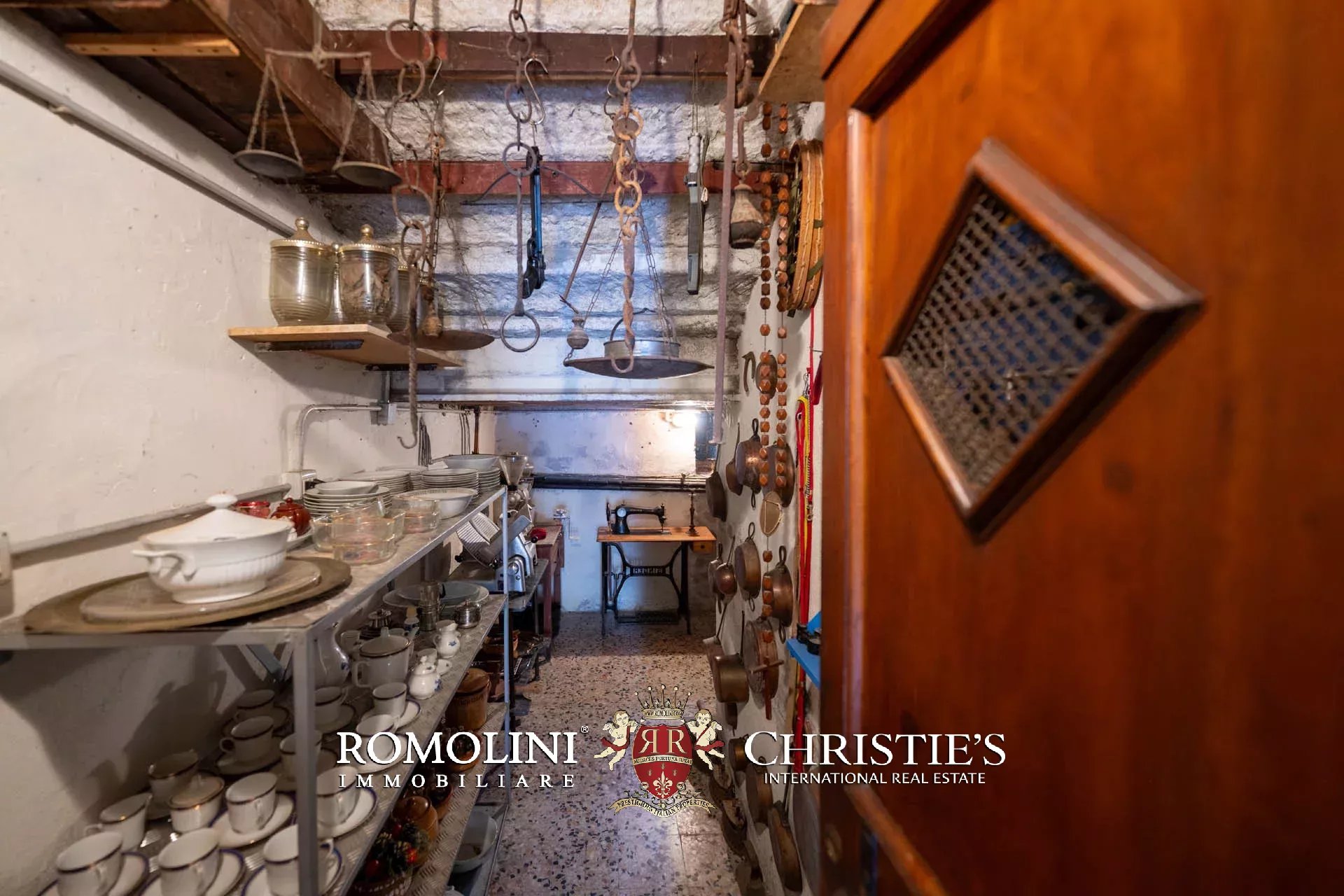 Dal portone condominiale in legno decorato si accede all’androne, dove al piano terra è presente la cantina di proprietà (5 m²), ideale come comodo locale di deposito. Attraverso ampie scale in pietra si raggiunge l’ingresso dell’abitazione.
