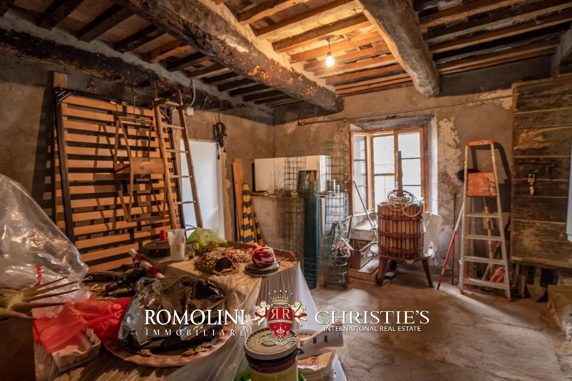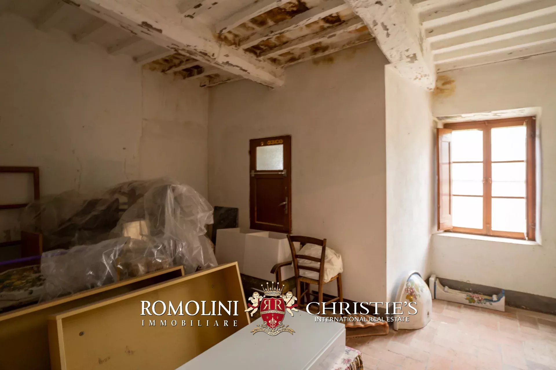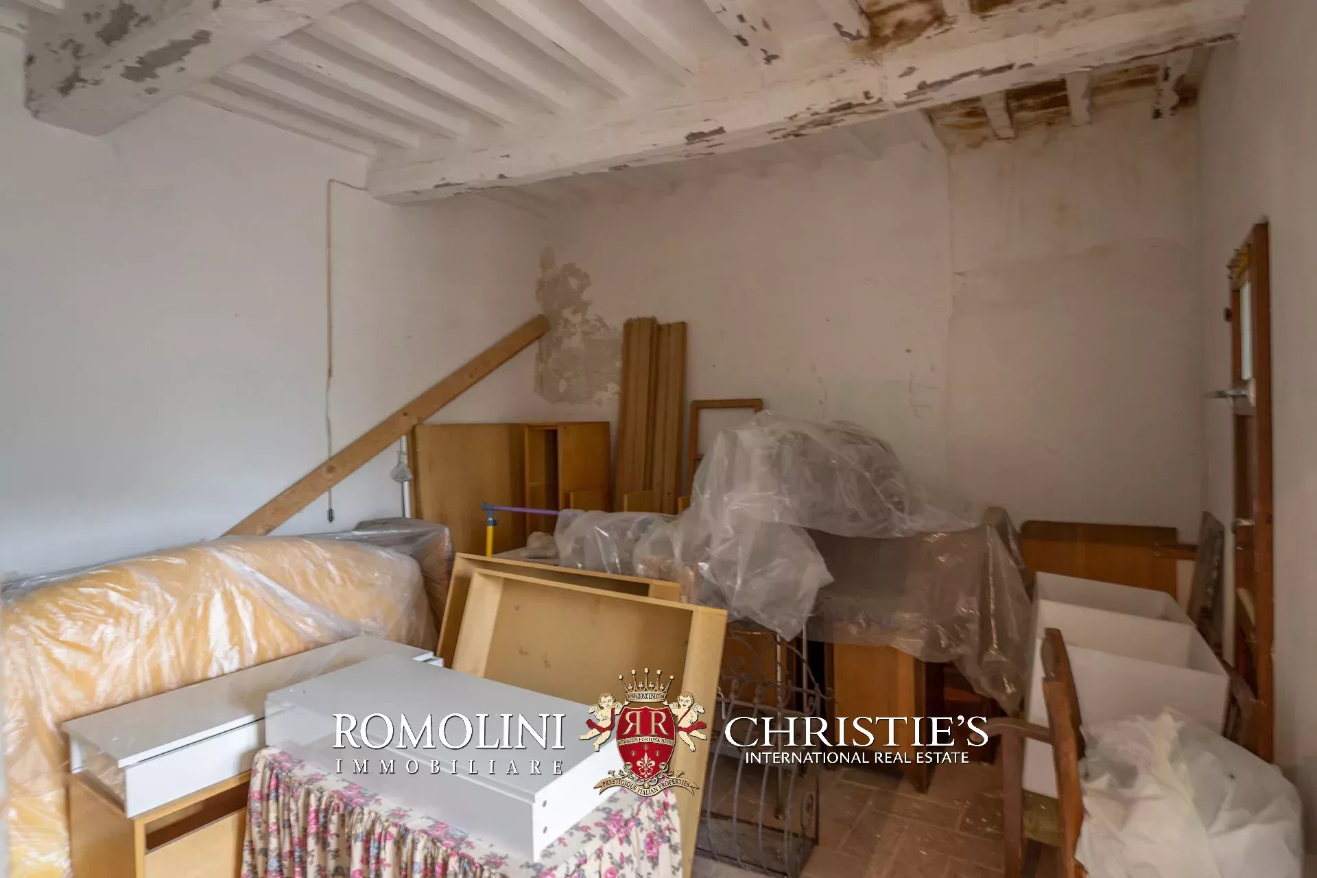 L’appartamento (70 m², 1 camera e 1 bagno) si dispone su due livelli. Al piano terra (25 m²) ci sono due cantine e il garage, mentre al primo piano (45 m²) si trova l’abitazione con cucina, salotto, camera e bagno. L’appartamento presenta soffitti con travi in legno, pavimenti in terracotta e un camino, ed è già abitabile senza alcun intervento necessario. Il piano terra è invece al grezzo e necessita di alcuni interventi (tra cui l’installazione degli impianti) se si volesse creare una camera aggiuntiva.