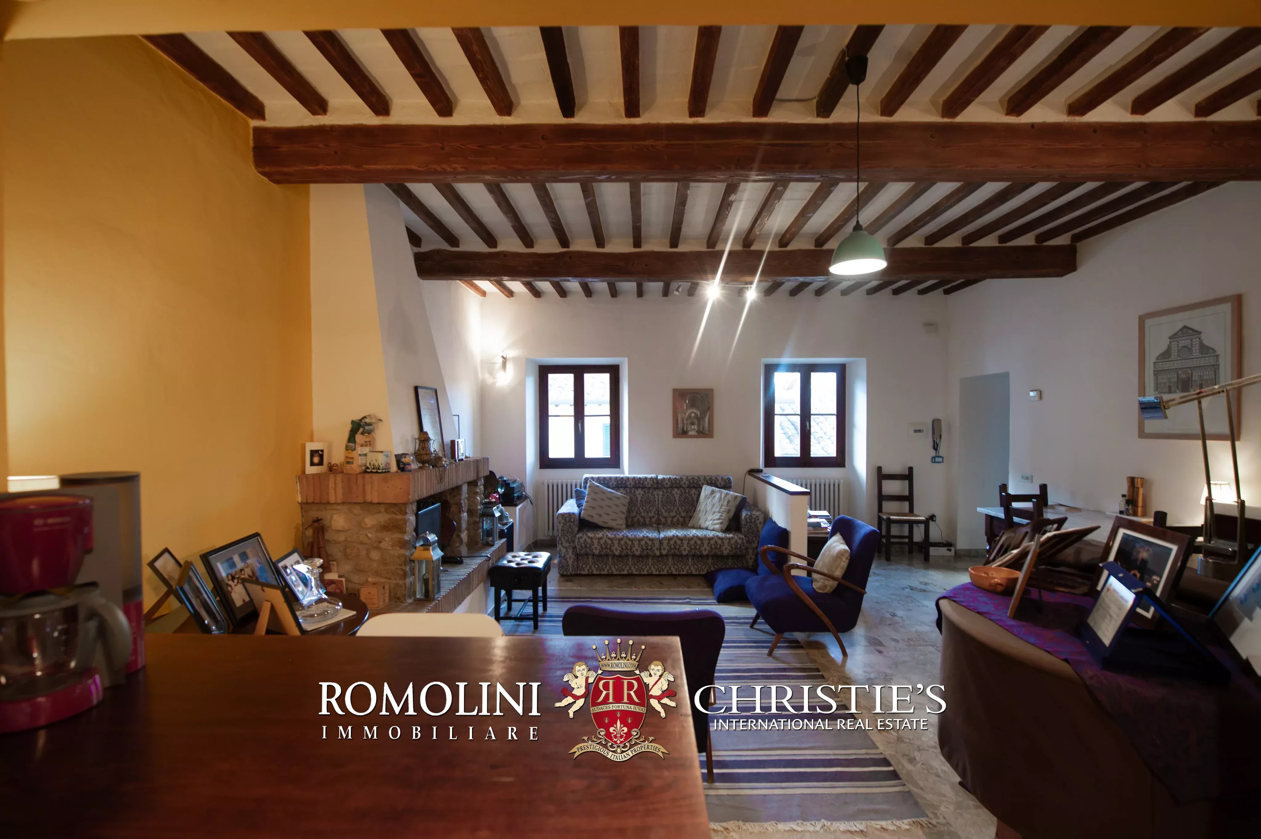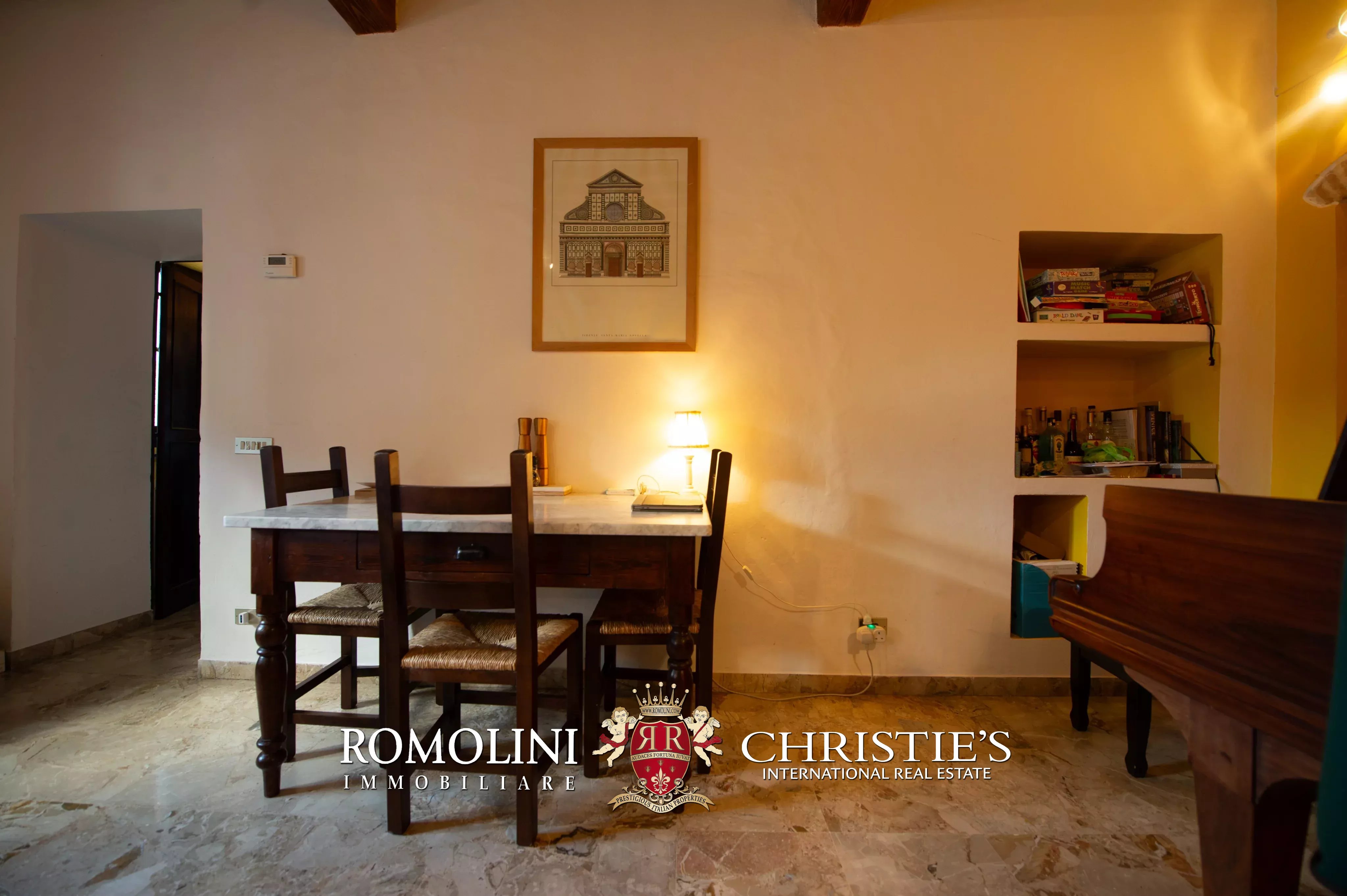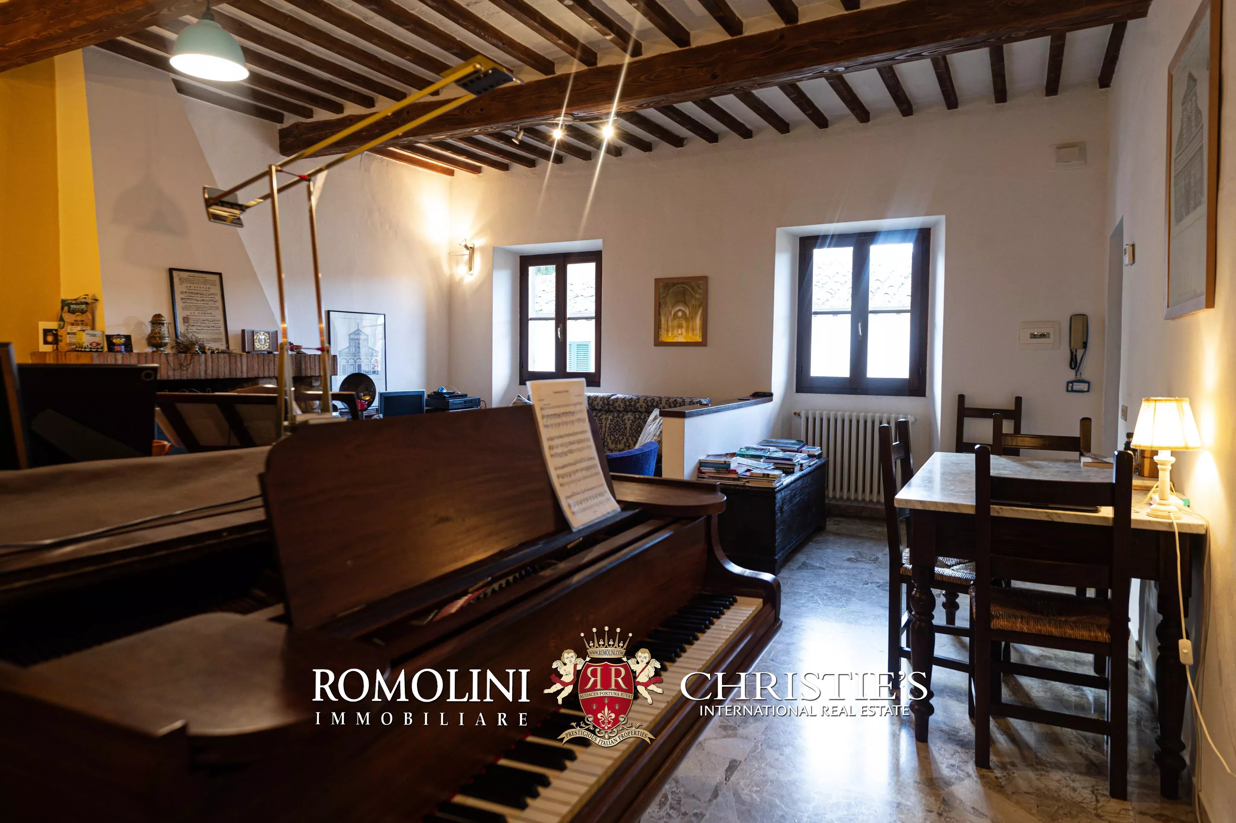 L'appartamento, cui si accede direttamente da un'ariosa via del borgo medievale, occupa l’intero secondo piano dell'edificio e include una graziosa mansarda al piano superiore con scorcio sui tetti del borgo e sulle colline circostanti, ideale per accogliere ospiti, mantenendo la loro privacy.