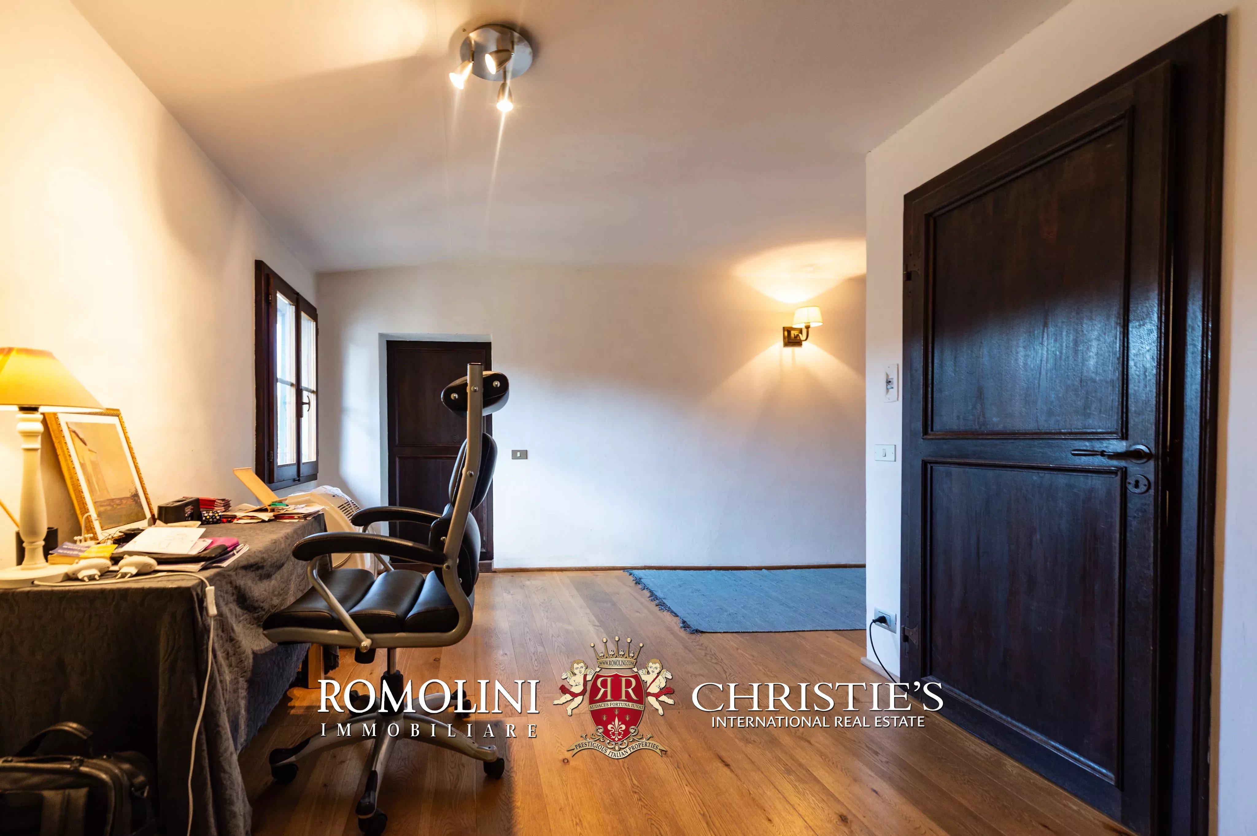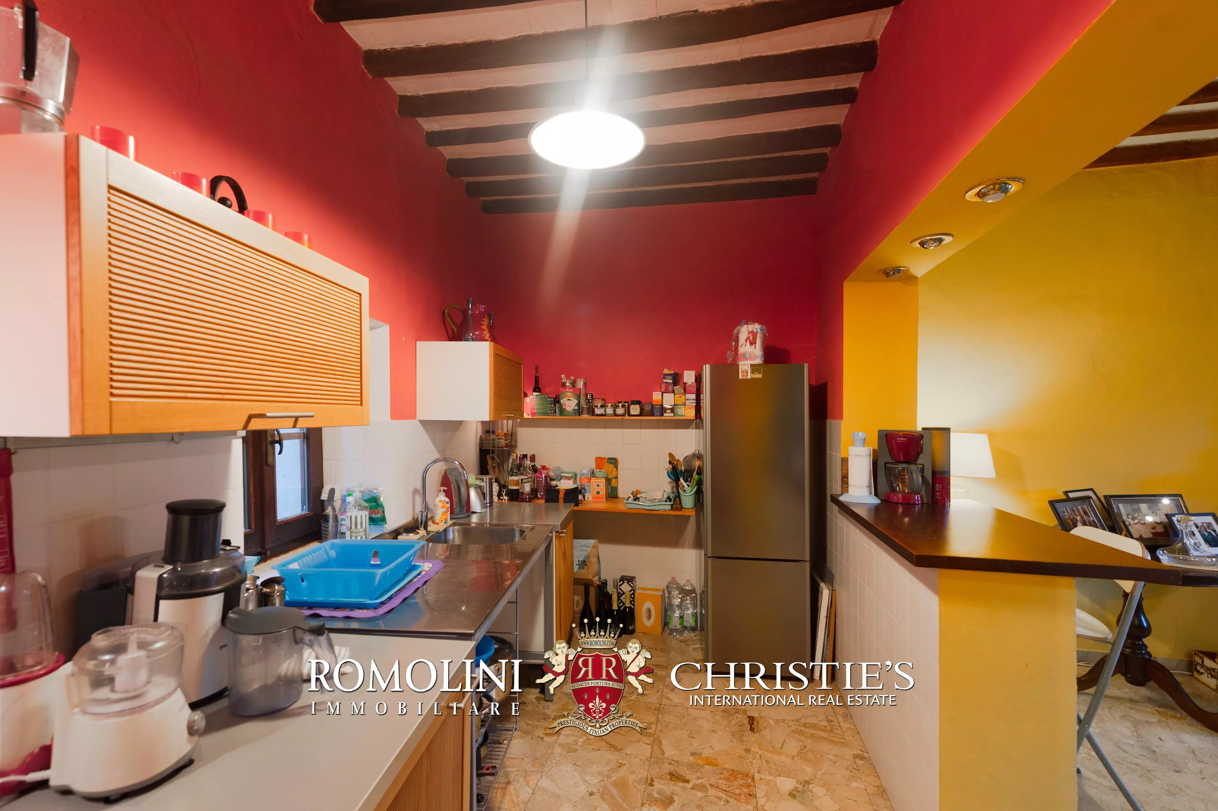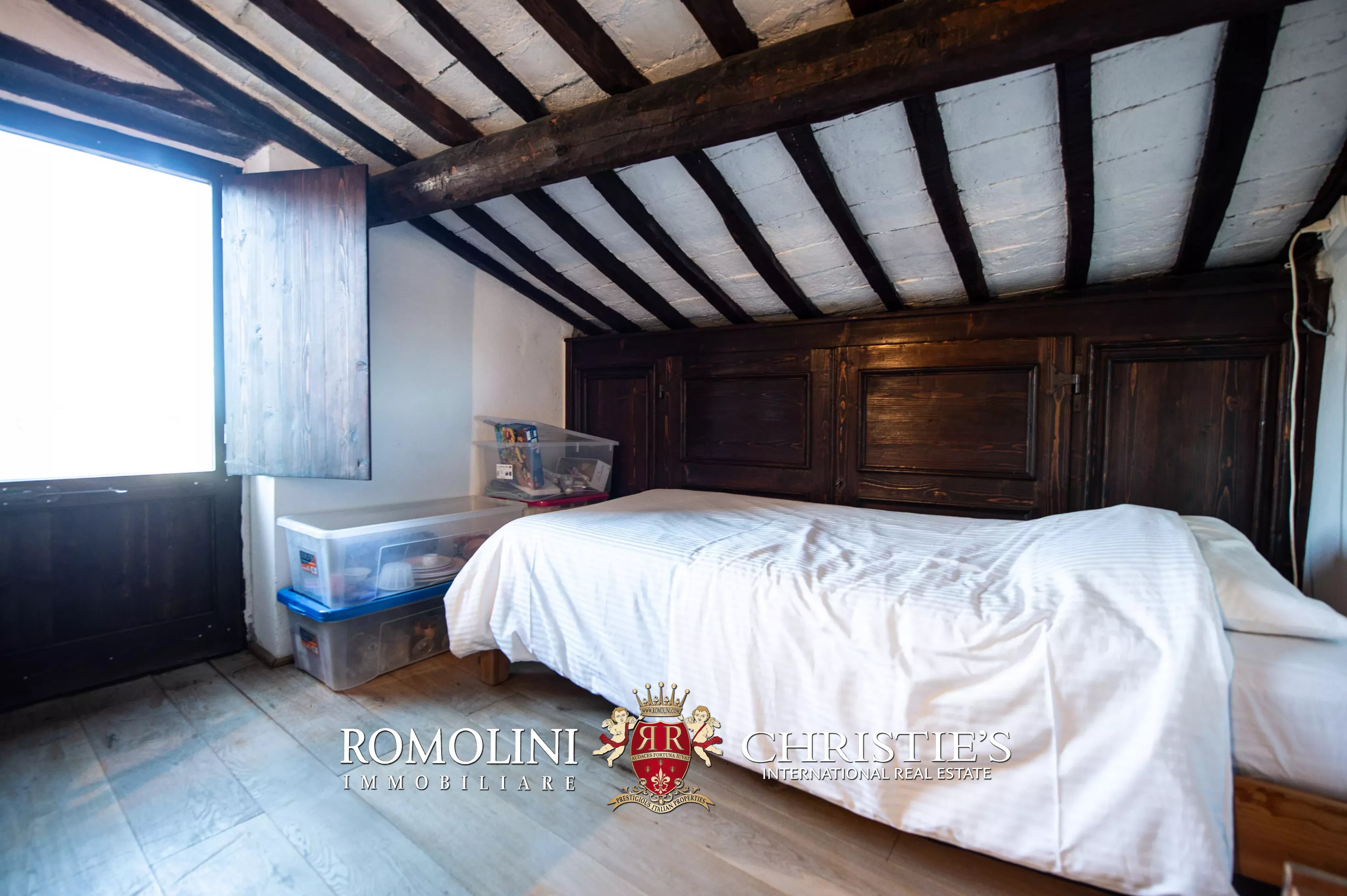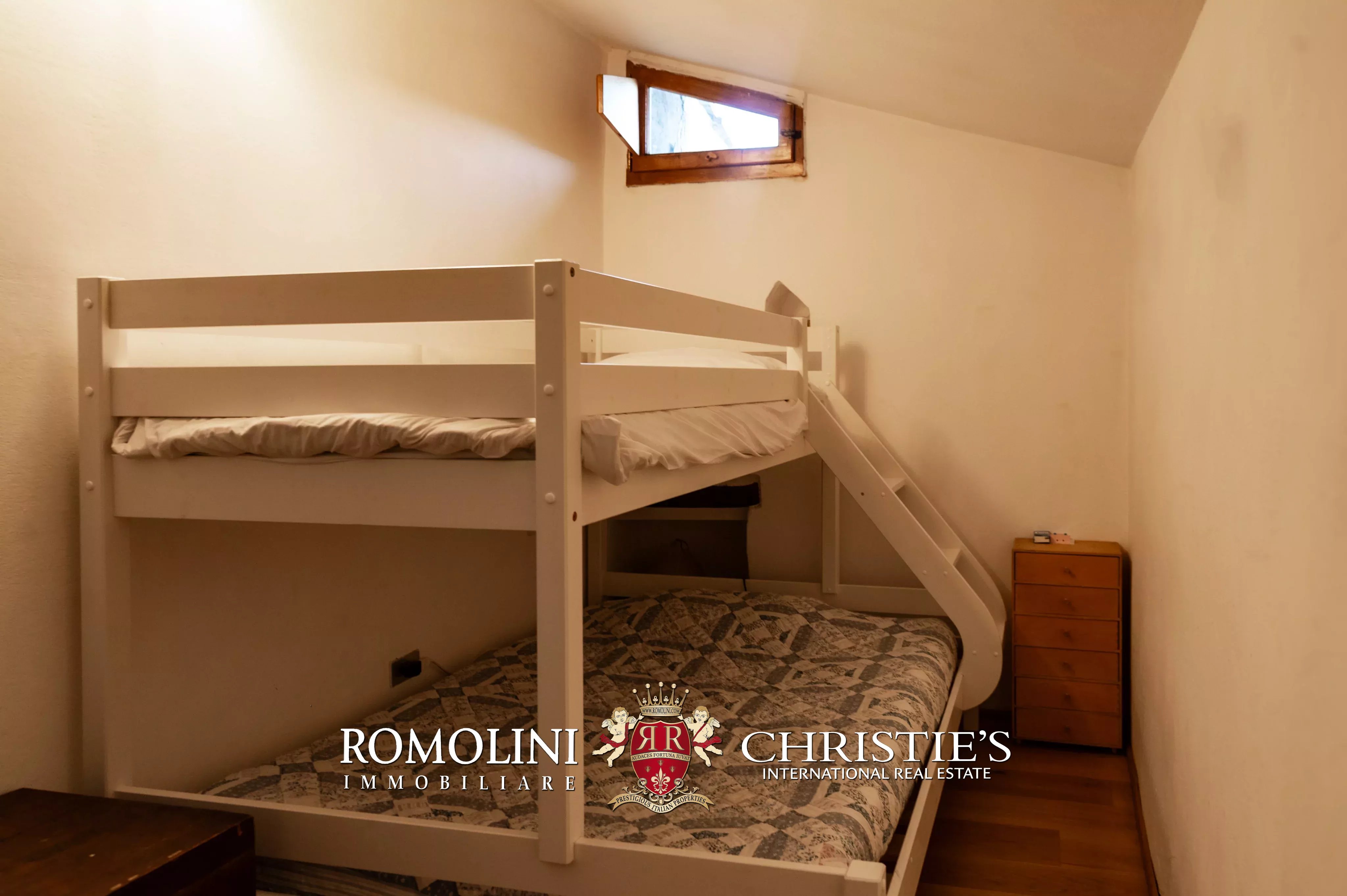 L'appartamento, cui si accede direttamente da un'ariosa via del borgo medievale, occupa l’intero secondo piano dell'edificio e include una graziosa mansarda al piano superiore con scorcio sui tetti del borgo e sulle colline circostanti, ideale per accogliere ospiti, mantenendo la loro privacy.