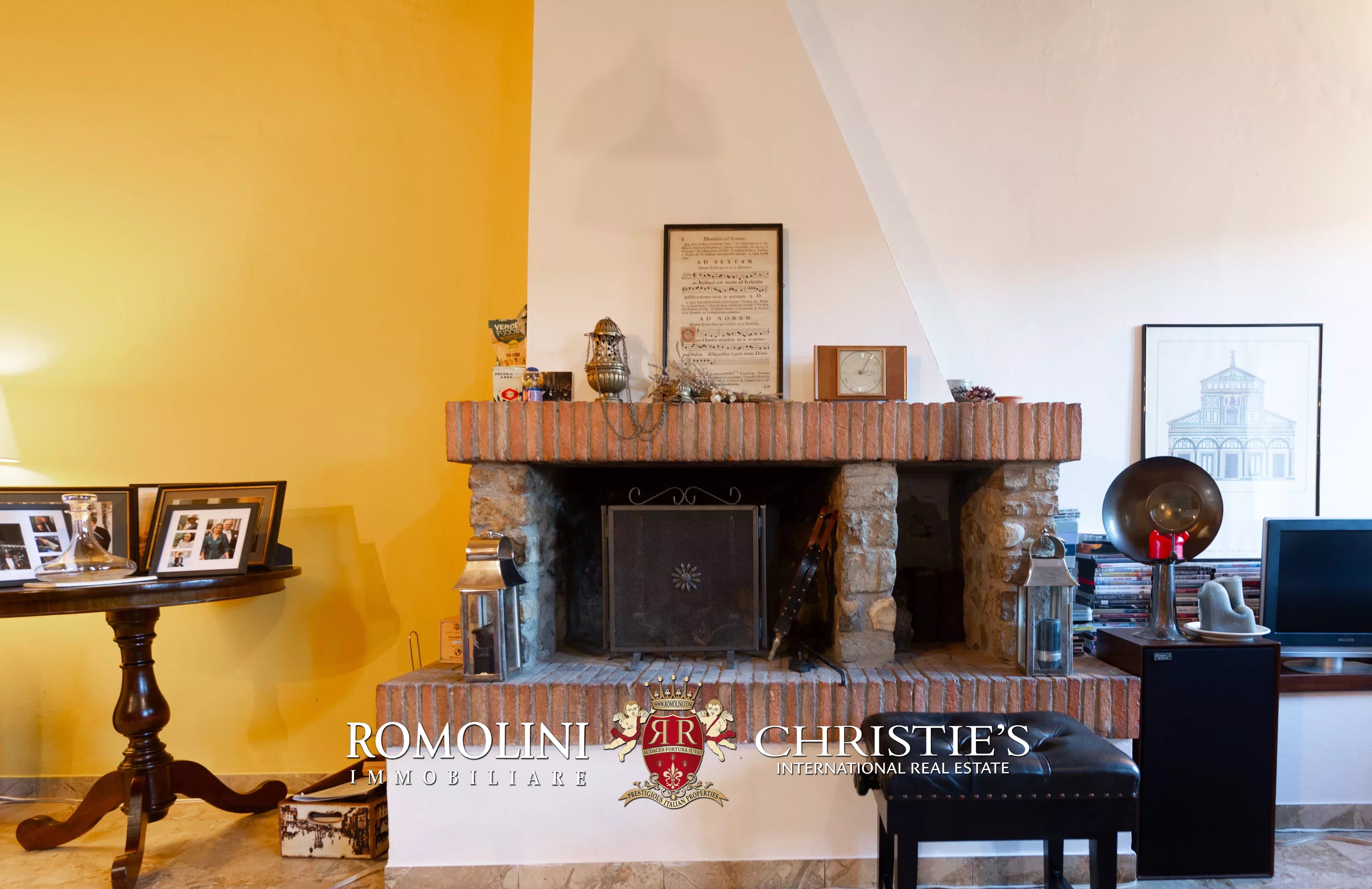 Dall’ingresso si passa poi al soggiorno (con un bellissimo camino semiaperto), alla cucina attrezzata e a un bagno di servizio.