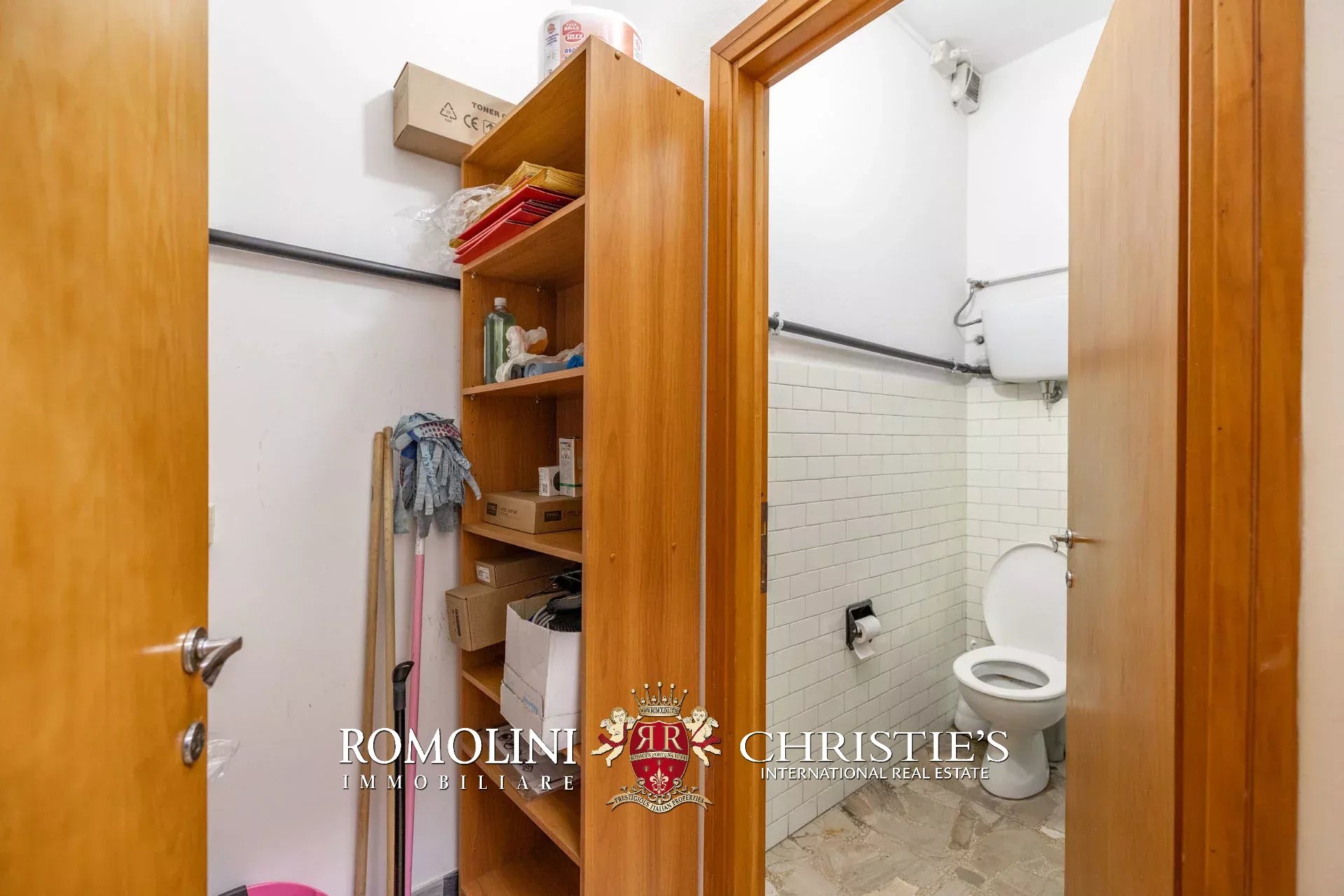 Per chi fosse interessato a convertire l’unità in un appartamento, la trasformazione potrebbe essere eseguita senza necessità di grandi modifiche strutturali con l’unico vincolo di un muro portante centrato tra due delle tre finestre aperte sulla strada.