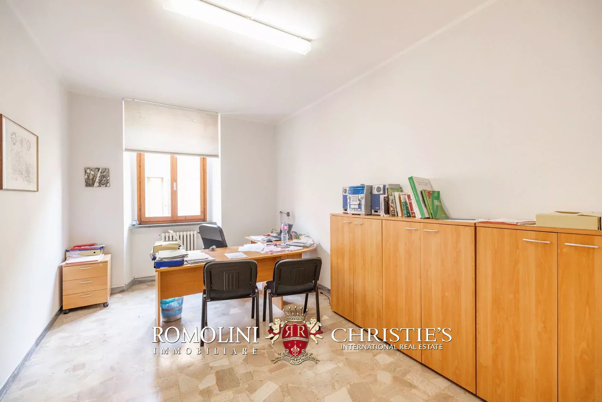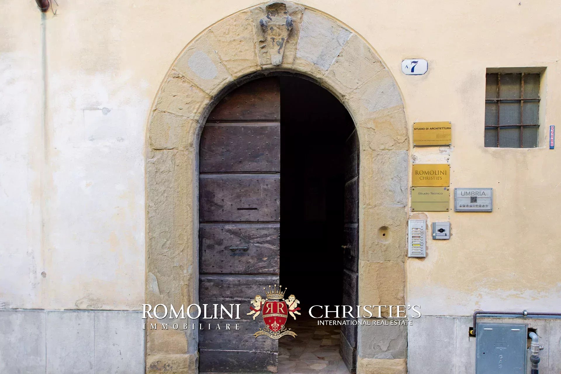 In posizione centralissima, a pochi passi dalla piazza principale di Città di Castello, appartamento di 120 m² attualmente adibito ad ufficio posto al primo piano di un palazzetto storico. La conformazione attuale include un ampio ingresso con corridoio collegato a quattro stanze e un bagno di servizio.