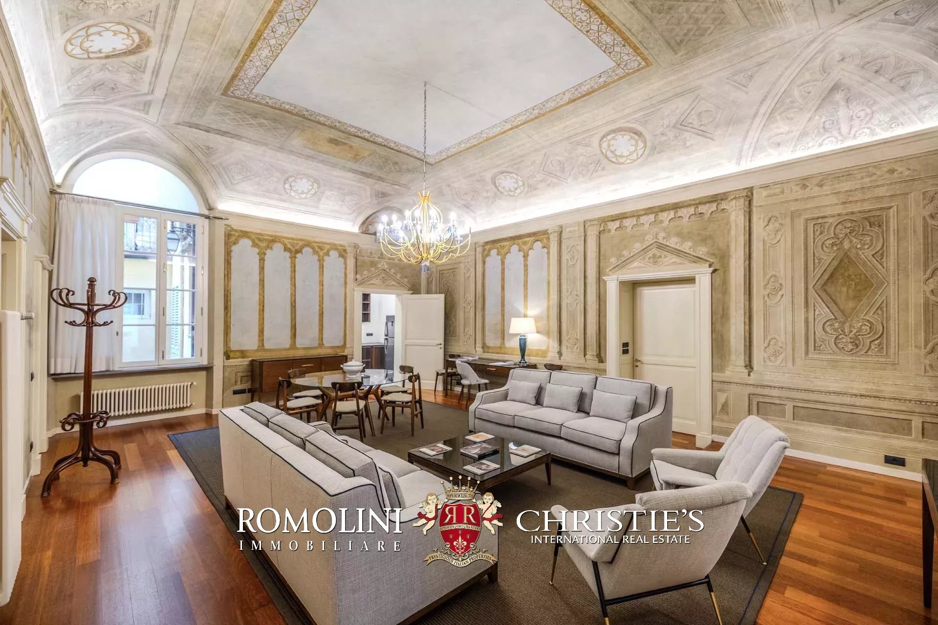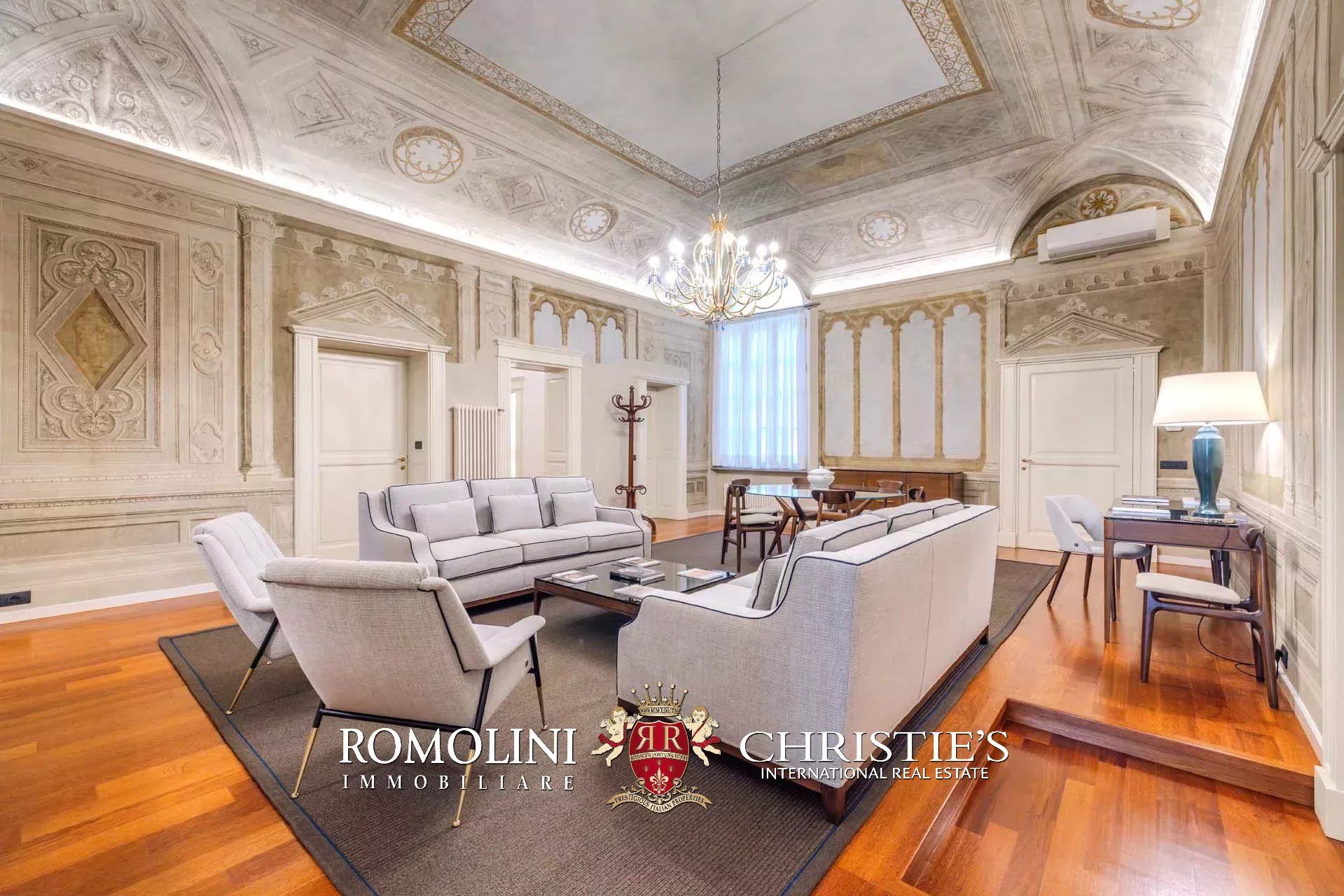 Un maestoso salone affrescato posto al centro dell'appartamento risulta essere l’antica biblioteca del palazzo. È uno dei due soli immobili sulla strada che hanno balconi dai quali è possibile avere una vista unica sul Duomo e la sua imponente cupola.