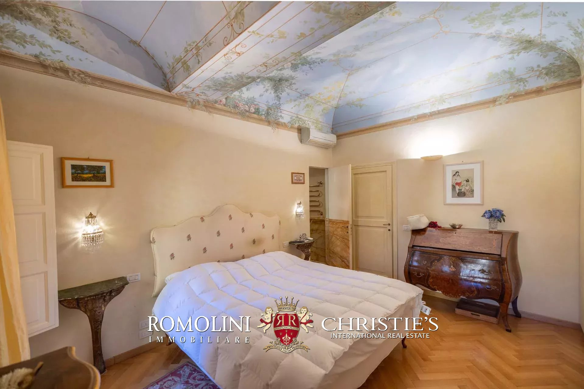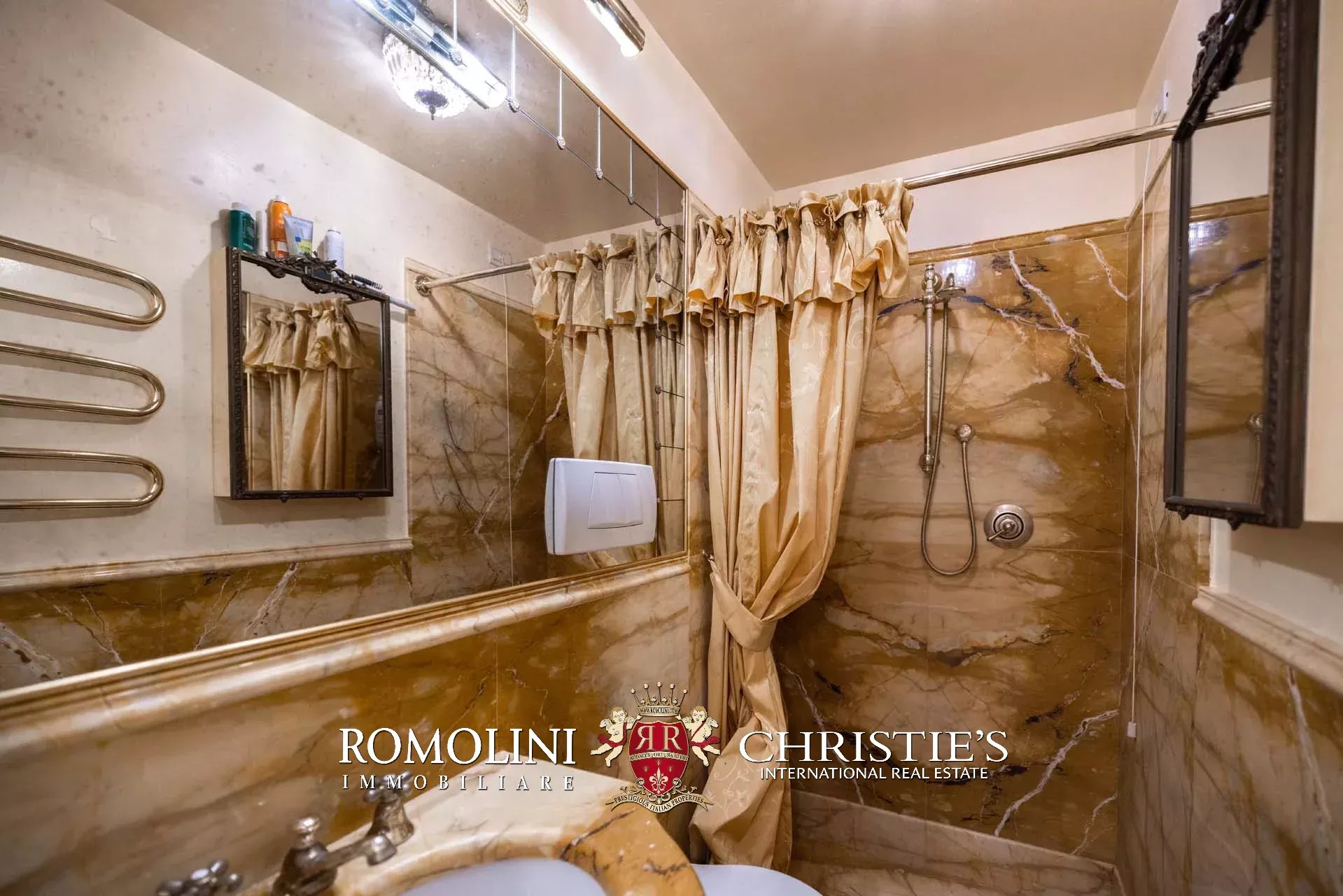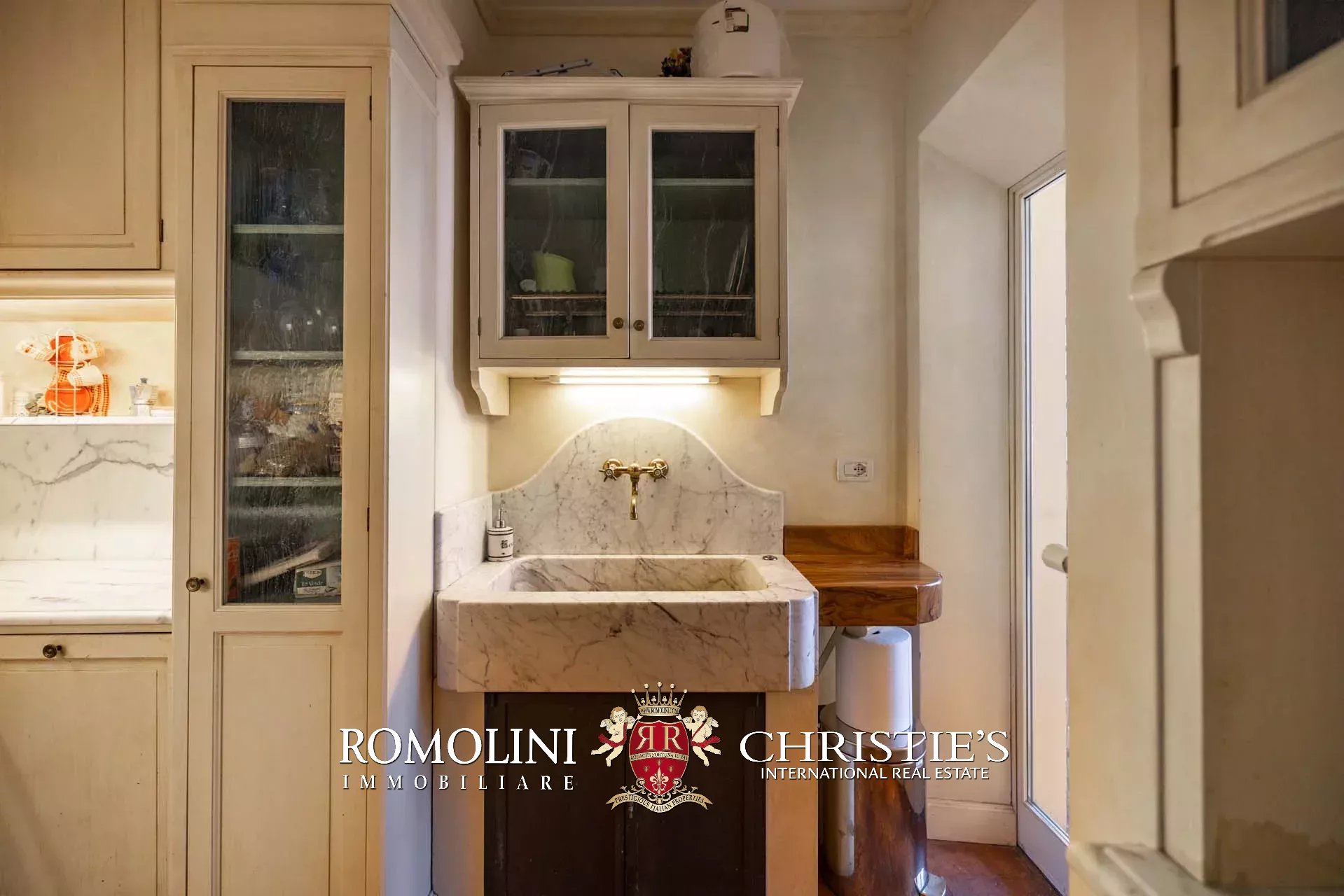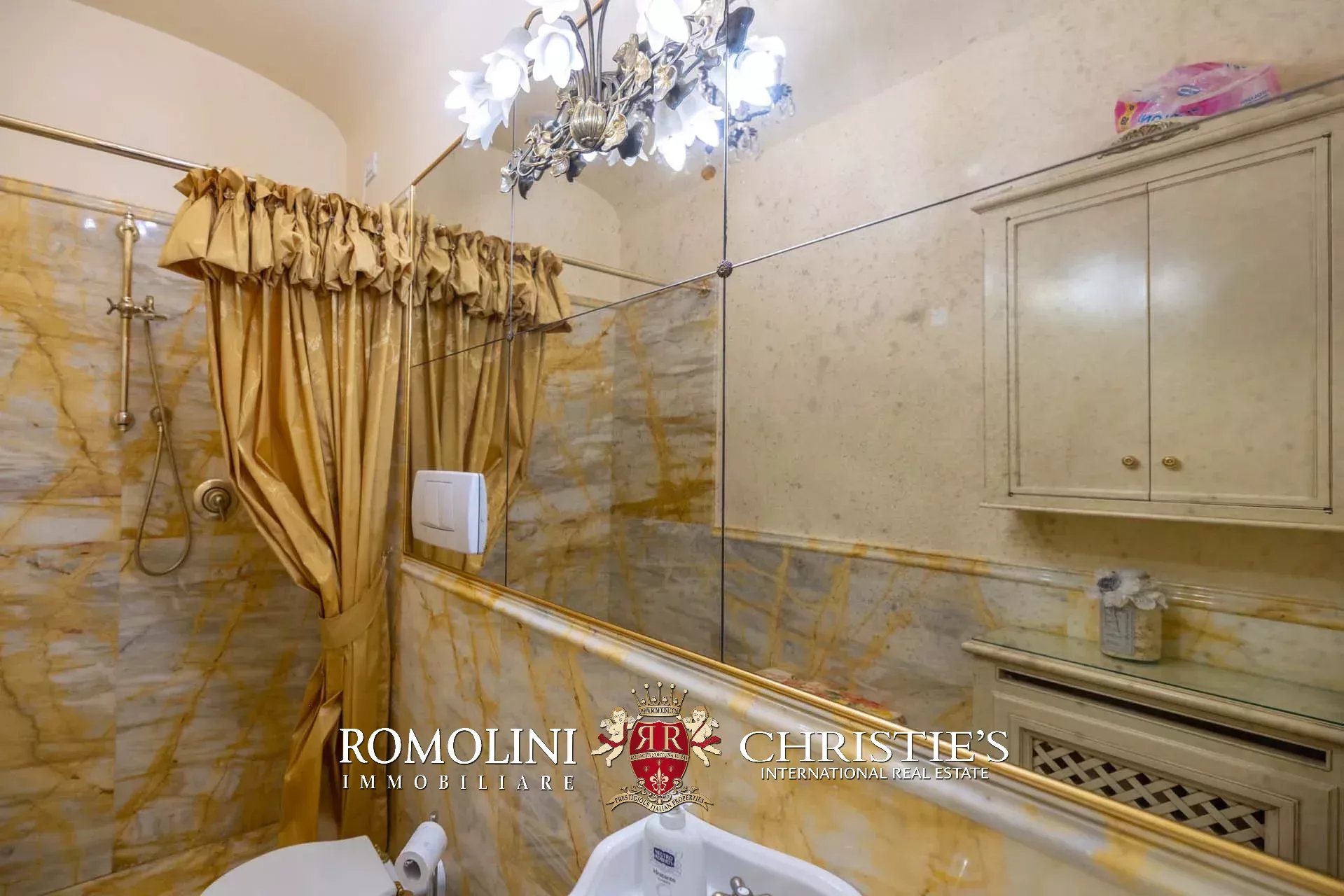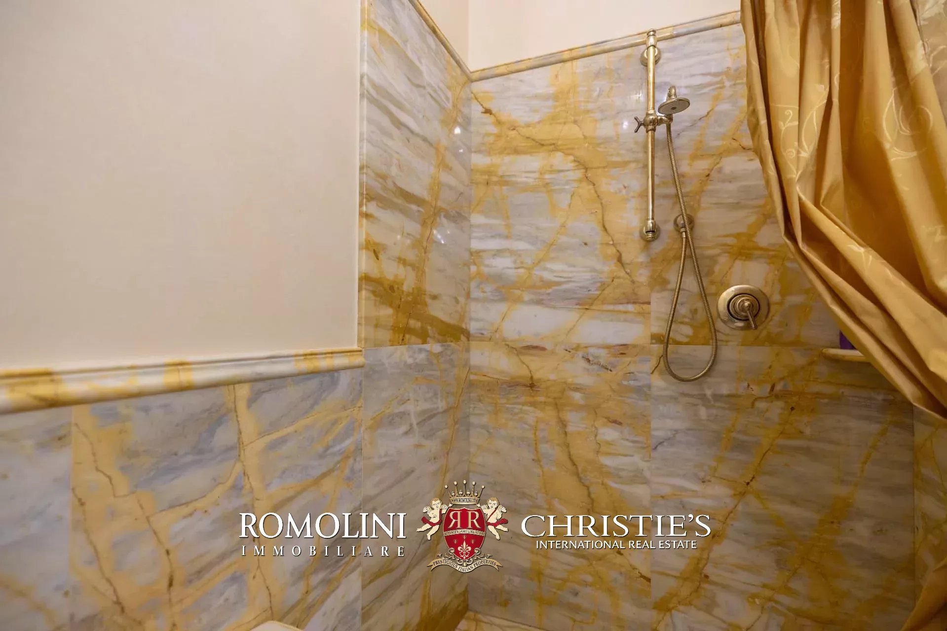 L’immobile vanta finiture di pregio che evidenziato la storia signorile dell’edificio, tutte meticolosamente restaurate e conservate in ottica di preservazione del passato. Le caratteristiche più interessanti includono i pavimenti in cotto originali, le travi in legno a supporto dei soffitti e i bellissimi camini in marmo. I bagni, anch’essi di pregio, sono rivestiti in marmo giallo e dotati di infissi pensati per armonizzarsi con il contesto storico circostante. Il grande soggiorno, cuore della proprietà, è decorato con affreschi e modanature dal gusto tipicamente Ottocentesco caratterizzate da motivi floreali e geometrici.