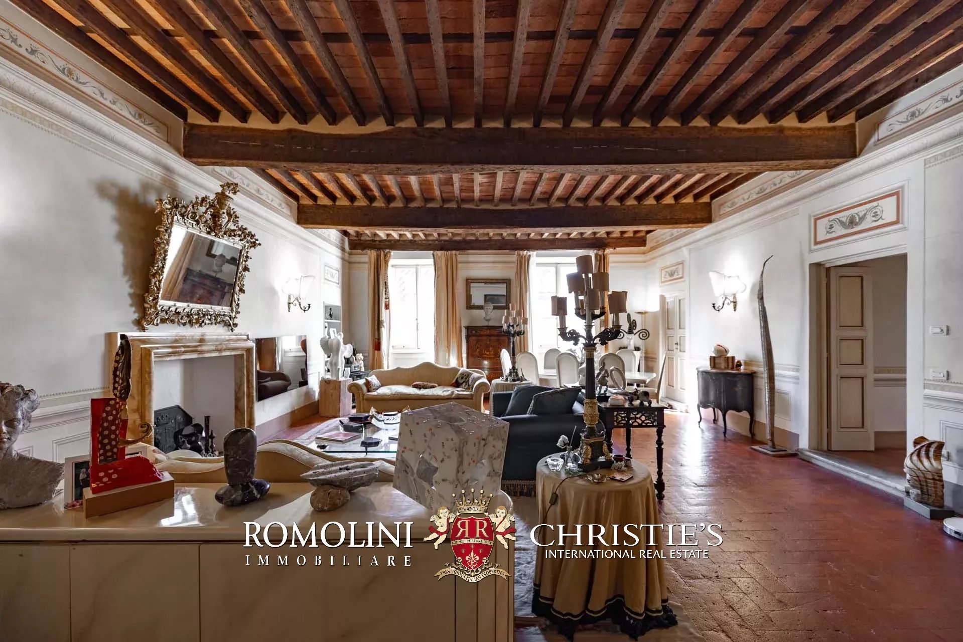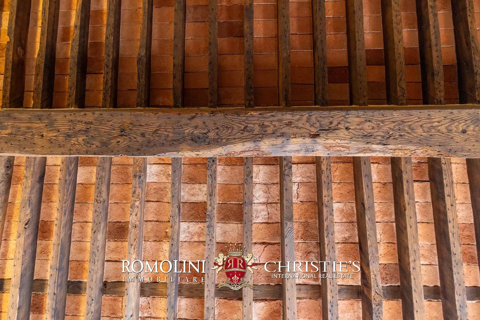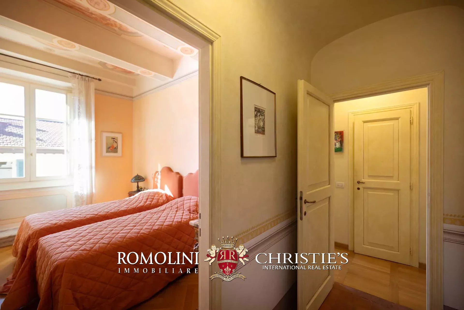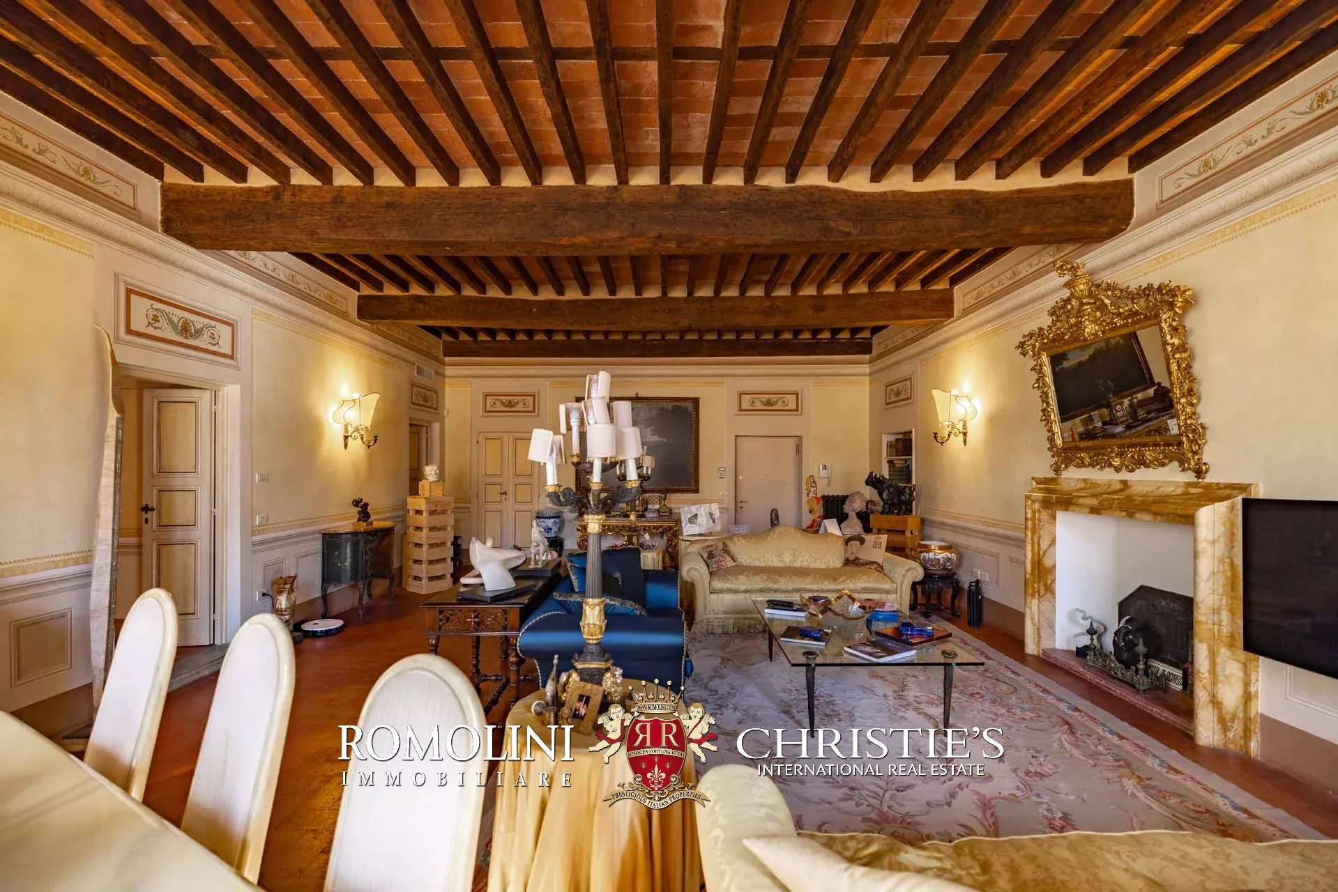 L’immobile vanta finiture di pregio che evidenziato la storia signorile dell’edificio, tutte meticolosamente restaurate e conservate in ottica di preservazione del passato. Le caratteristiche più interessanti includono i pavimenti in cotto originali, le travi in legno a supporto dei soffitti e i bellissimi camini in marmo. I bagni, anch’essi di pregio, sono rivestiti in marmo giallo e dotati di infissi pensati per armonizzarsi con il contesto storico circostante. Il grande soggiorno, cuore della proprietà, è decorato con affreschi e modanature dal gusto tipicamente Ottocentesco caratterizzate da motivi floreali e geometrici.