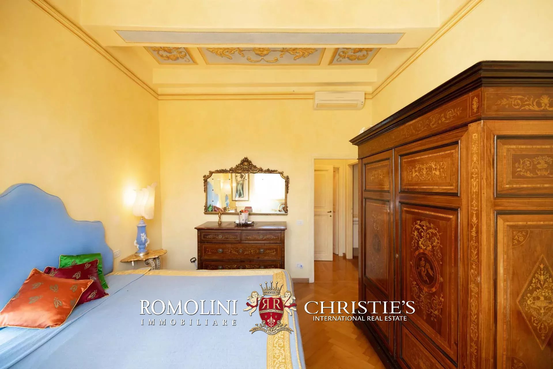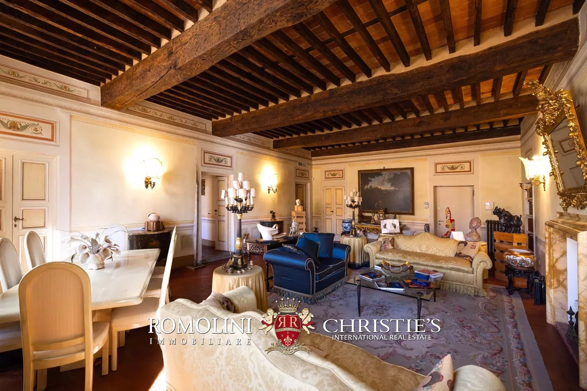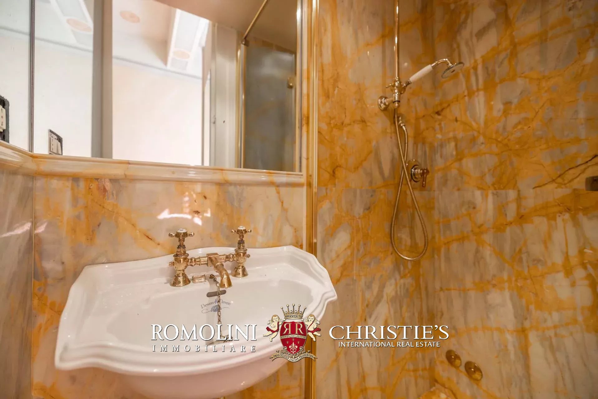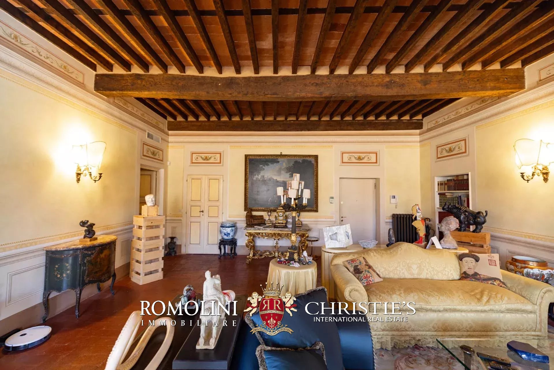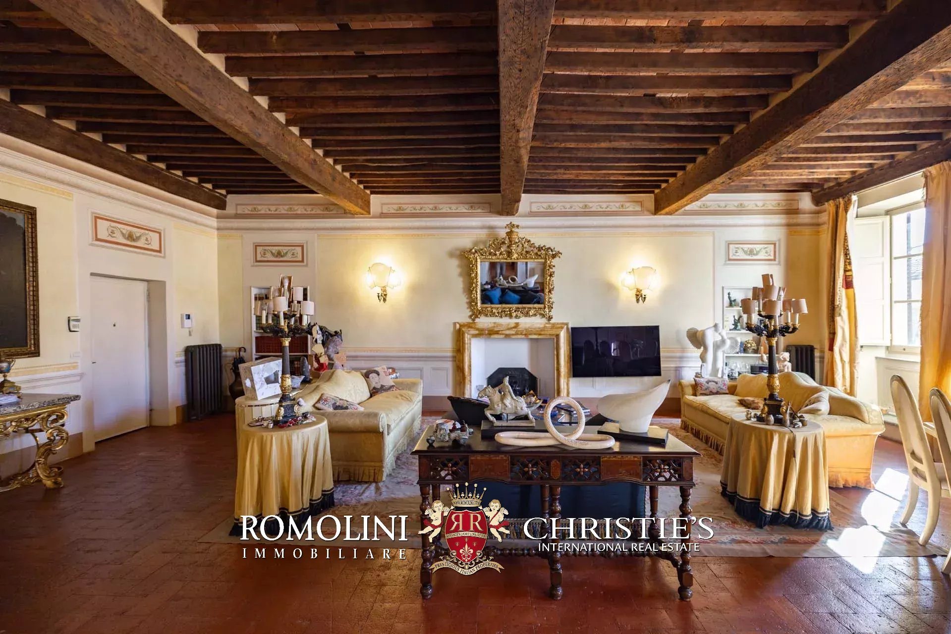 L’immobile vanta finiture di pregio che evidenziato la storia signorile dell’edificio, tutte meticolosamente restaurate e conservate in ottica di preservazione del passato. Le caratteristiche più interessanti includono i pavimenti in cotto originali, le travi in legno a supporto dei soffitti e i bellissimi camini in marmo. I bagni, anch’essi di pregio, sono rivestiti in marmo giallo e dotati di infissi pensati per armonizzarsi con il contesto storico circostante. Il grande soggiorno, cuore della proprietà, è decorato con affreschi e modanature dal gusto tipicamente Ottocentesco caratterizzate da motivi floreali e geometrici.