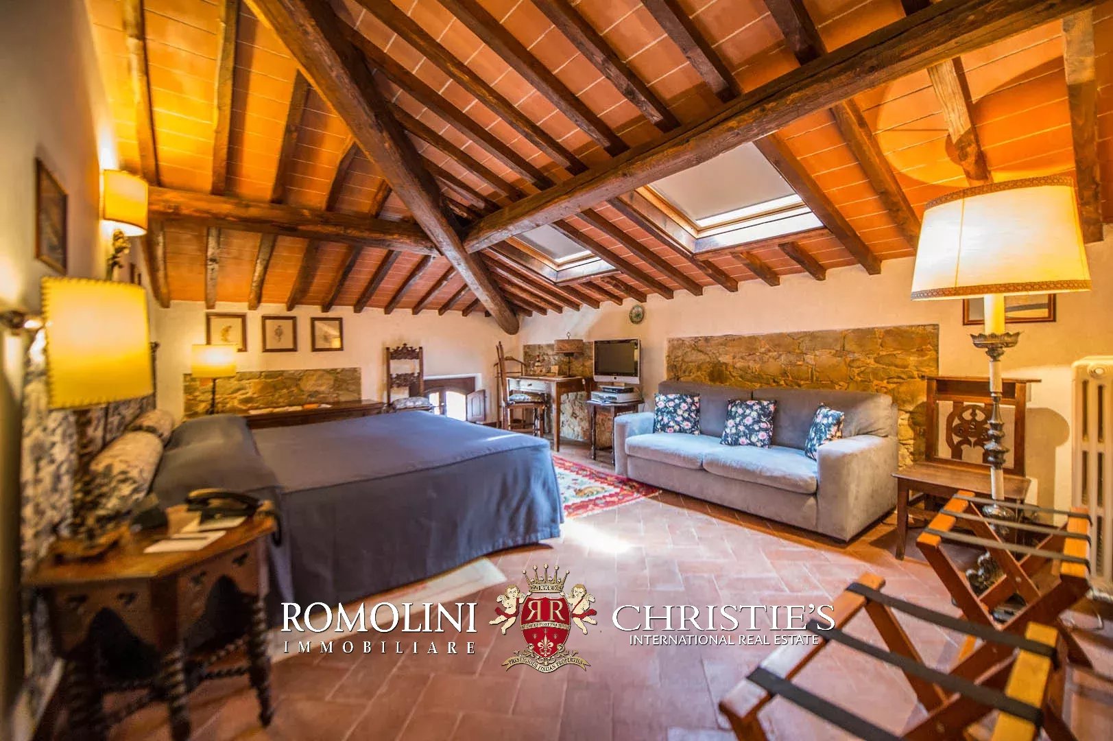 Situato in un piccolo borgo del Chianti aretino, nella campagna toscana, castello medievale del XII secolo con struttura ricettiva di lusso, appartamenti, palestra, piscina, parco e oliveto.