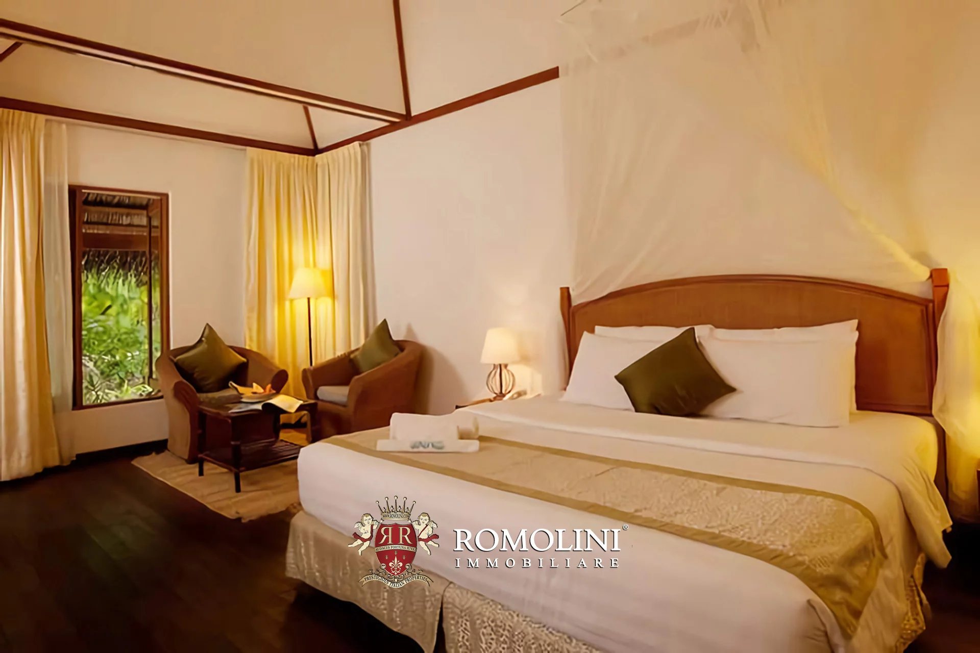 Sull’isola sono presenti ben 56 villette, disposte lungo la circonferenza nascoste dalla rigogliosa vegetazione e a brevissima distanza dal mare, e un resort con Spa completamente attrezzata per garantire il miglior soggiorno possibile ai suoi ospiti. Inoltre un ristorante all’aria aperta e due bar permetteranno ai villeggianti di gustare piatti tipici dell’area. Le villette sono dotate di tutti i comfort moderni, pur nel rispetto della bellezza dei luoghi.