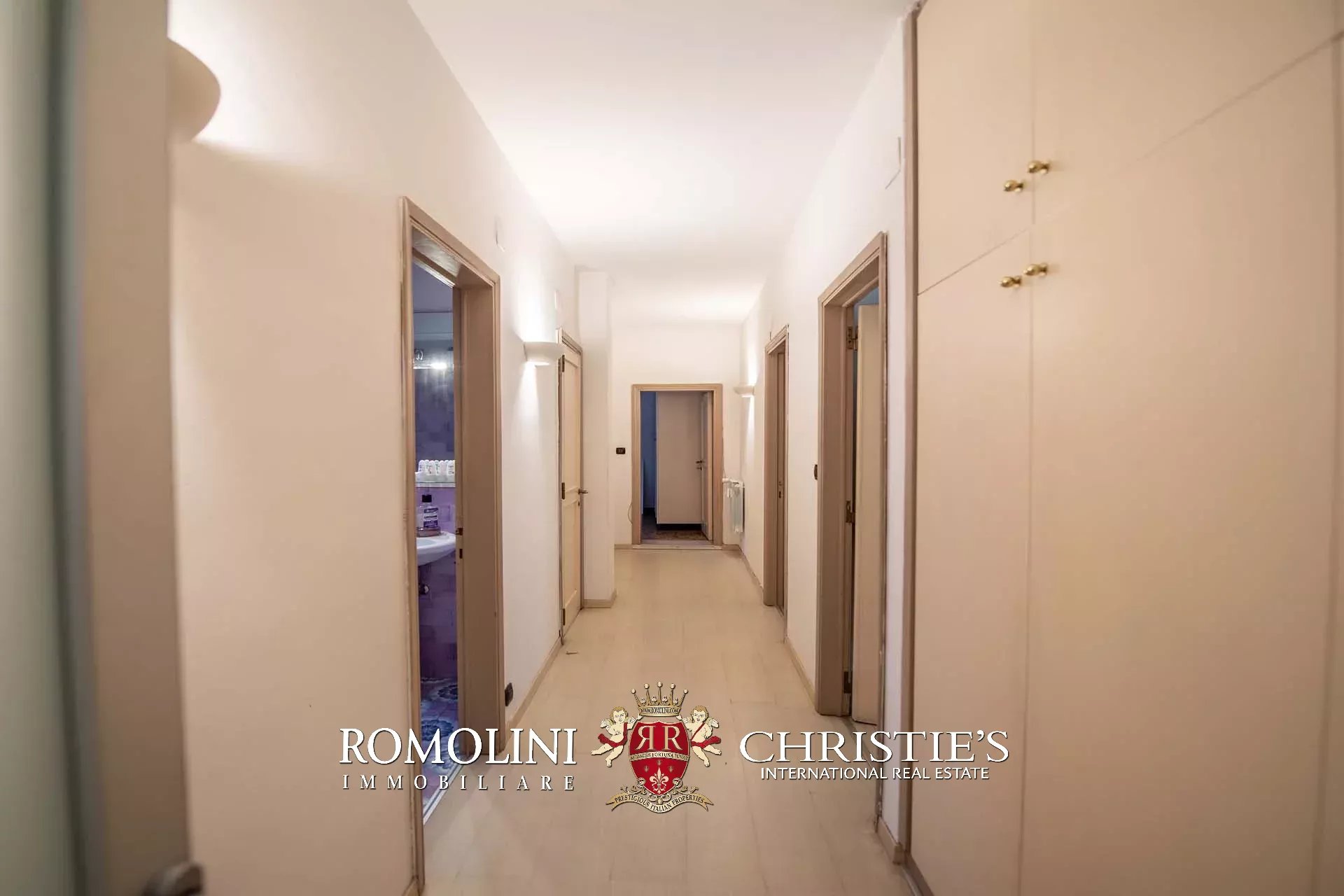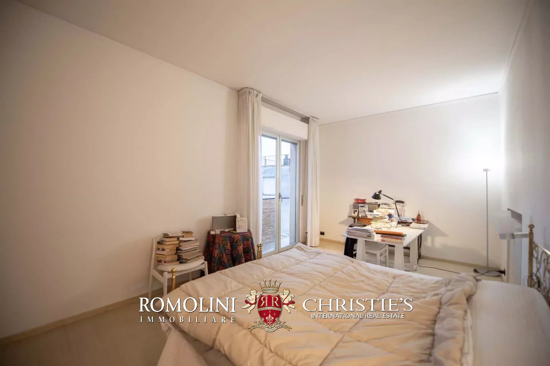 Il corridoio che parte dal soggiorno conduce poi nella zona notte. Qui si trovano la camera padronale (usata anche come studio) con terrazzo esclusivo (5 m²), una seconda camera matrimoniale con terrazzo (4 m²), una camera singola, due bagni e una spaziosa cabina armadio.