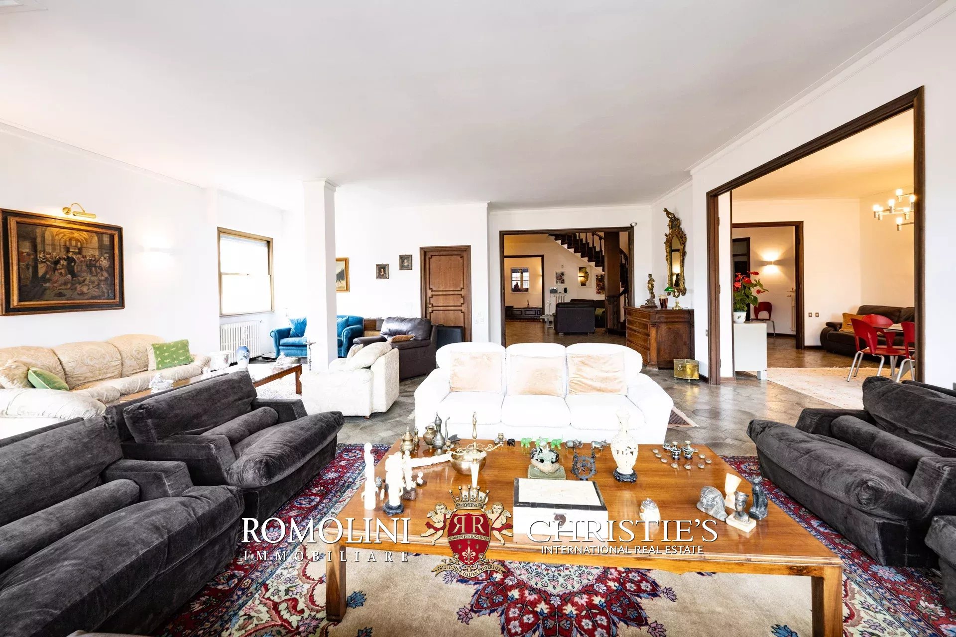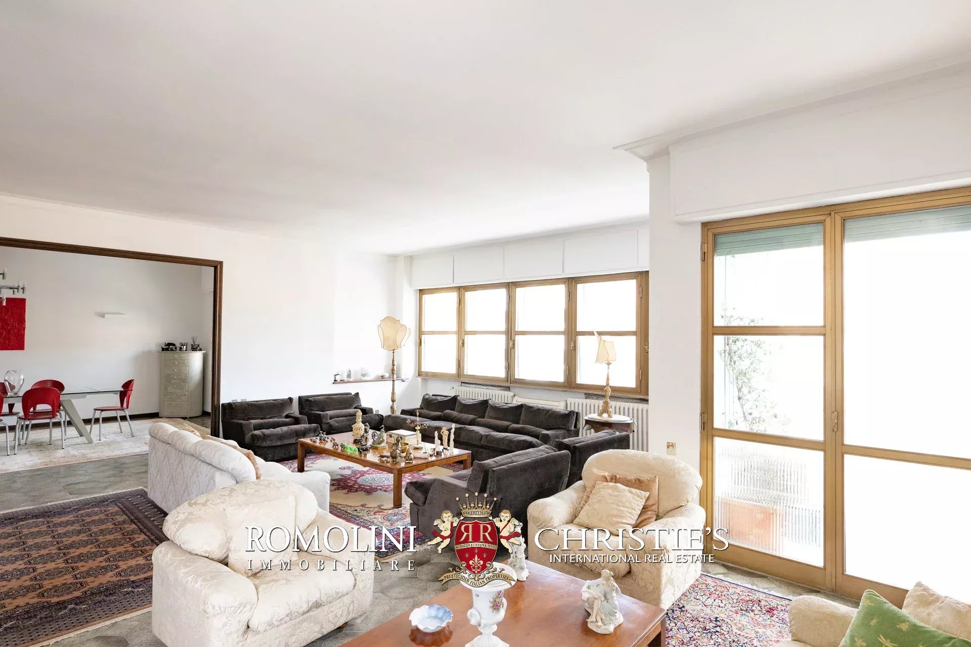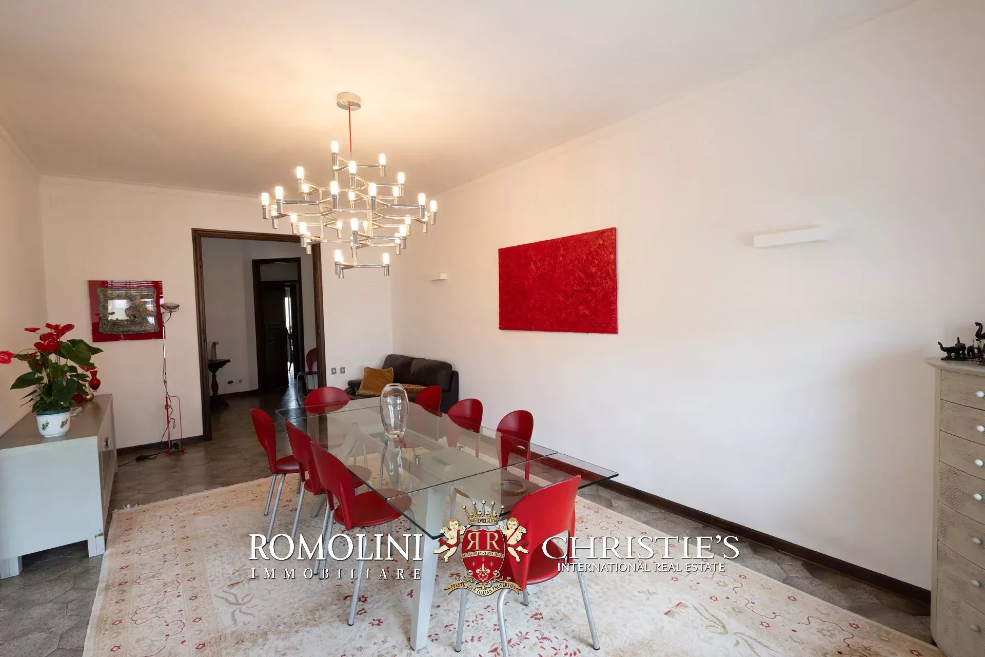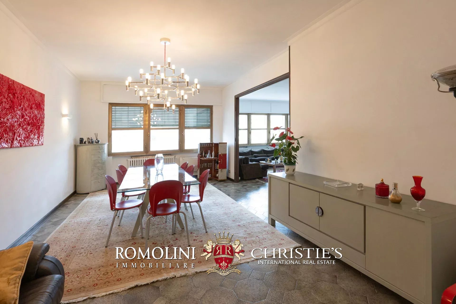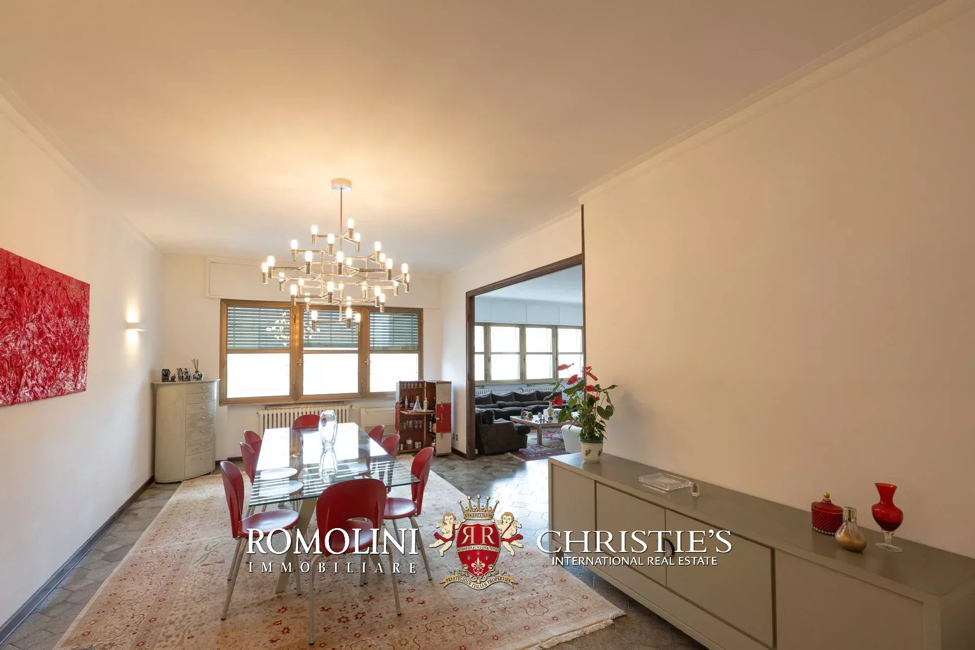 - Appartamento A (305 m²): luminosa zona giorno composta di spazioso ingresso, soggiorno e sala da pranzo, zona notte composta di tre camere e due bagni;