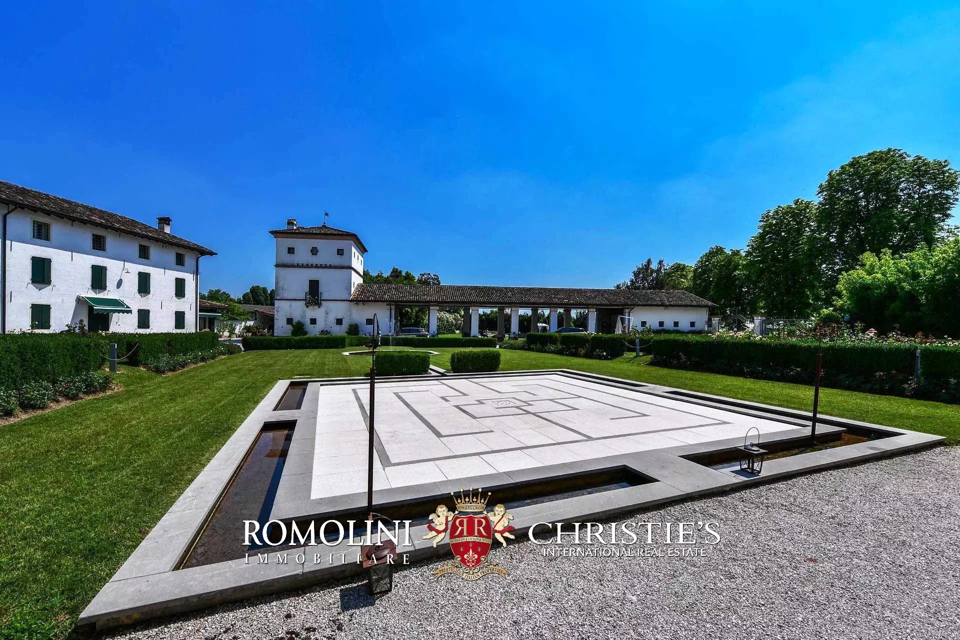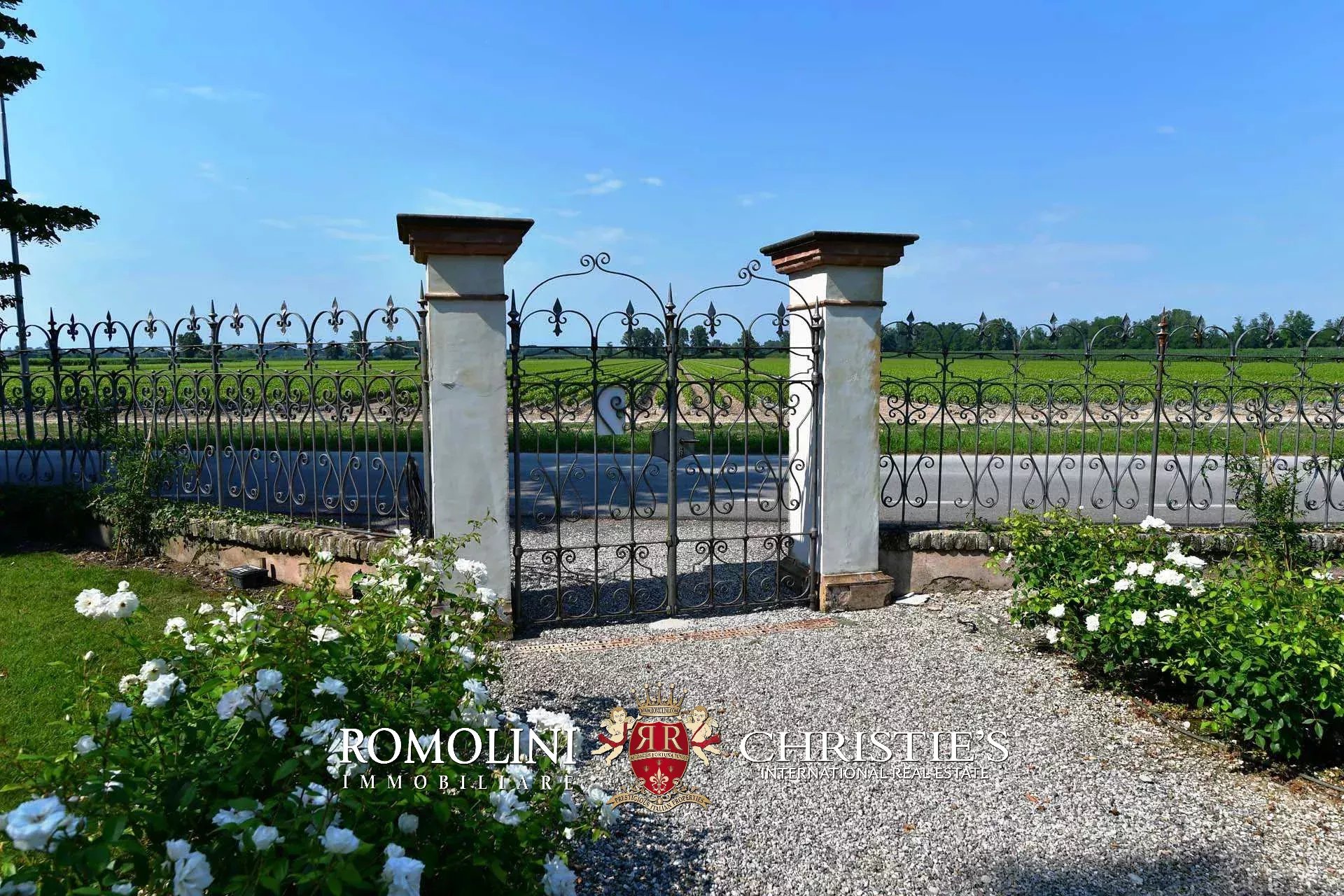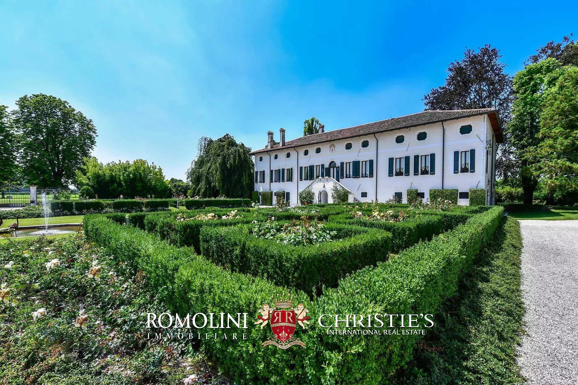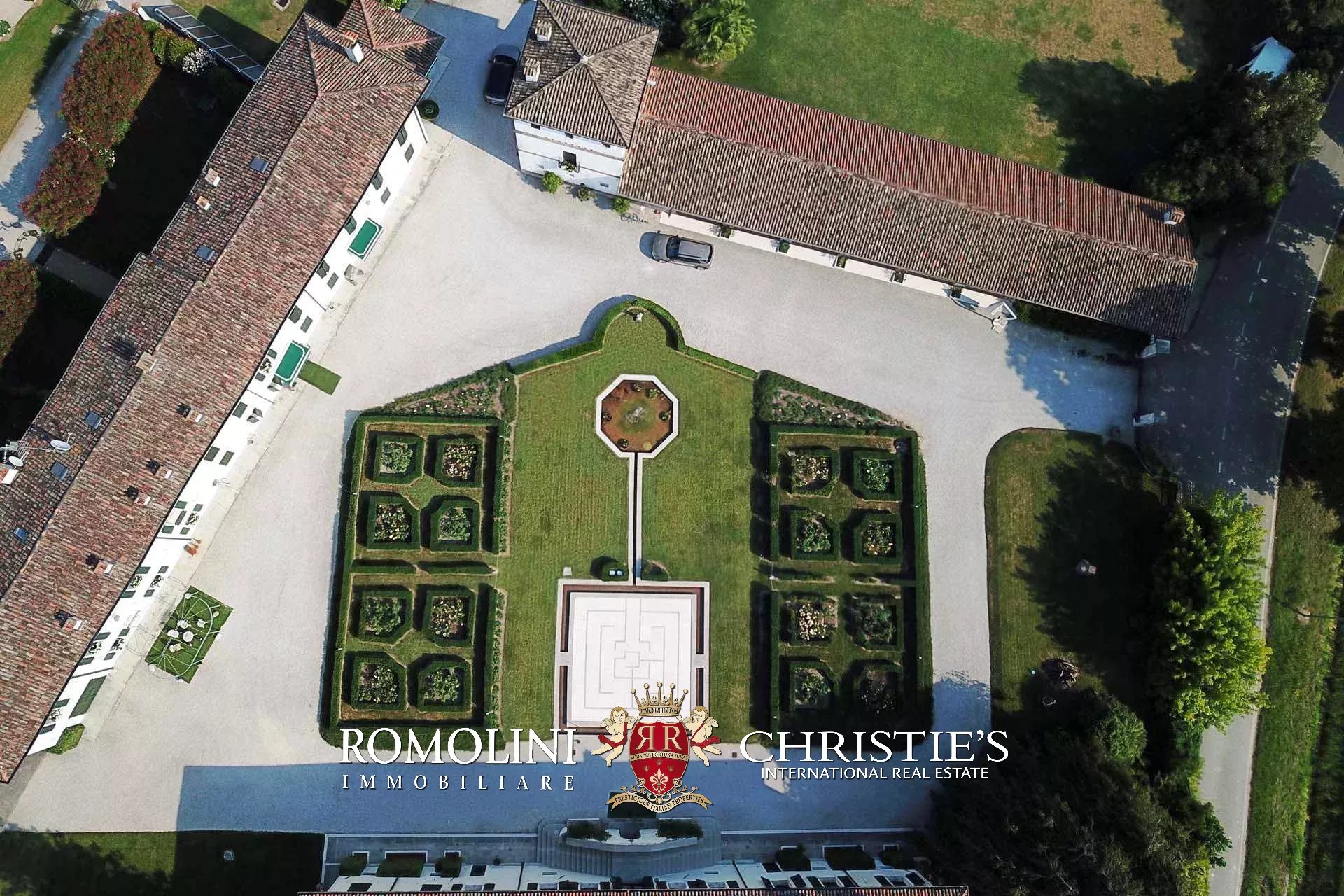 Di fronte alla villa si trova un bellissimo giardino all’italiana (circa 3.000 mq) decorato con siepi, fontane e vialetti in ghiaia. Oltre la barchessa, immersa nel verde del giardino, troviamo la piscina 14 × 8 m del complesso, circondata da un giardino ben curato ideale per ospitare eventi e cerimonie all’aperto. Tra piazzali, giardini e strade, la proprietà ci stende su una superficie totale di circa 3,5 ettari.