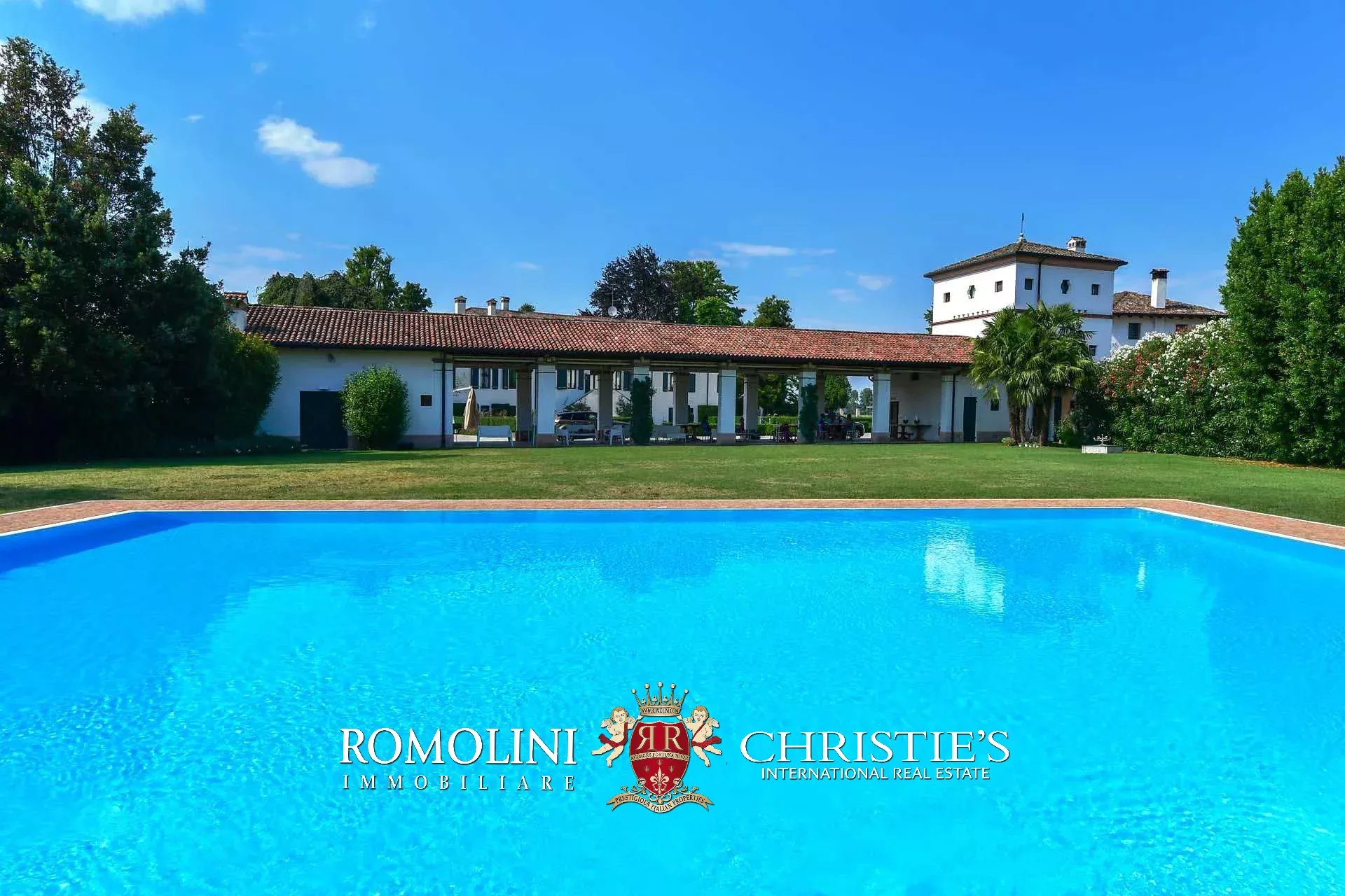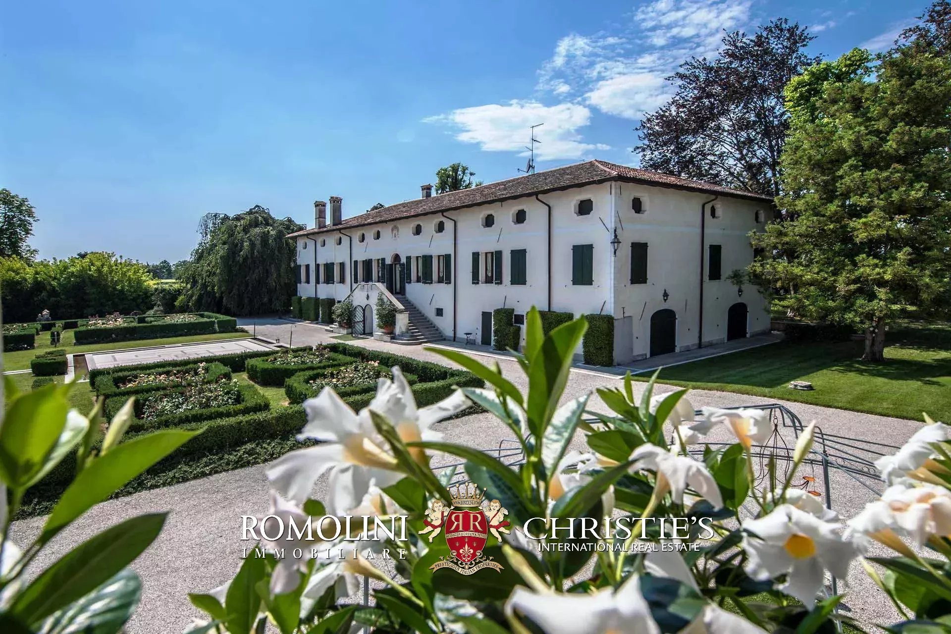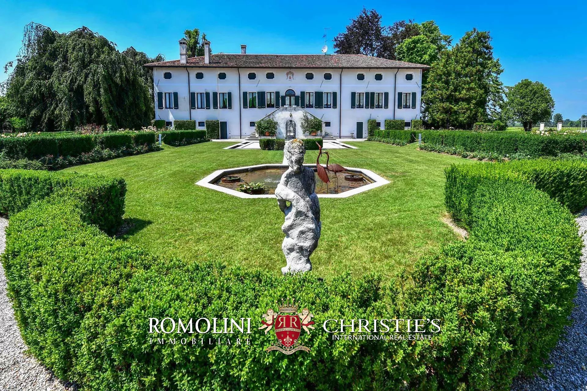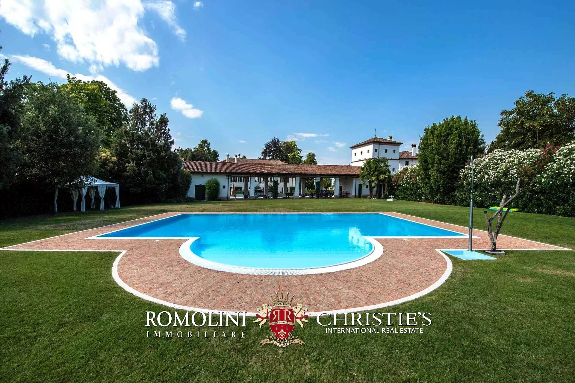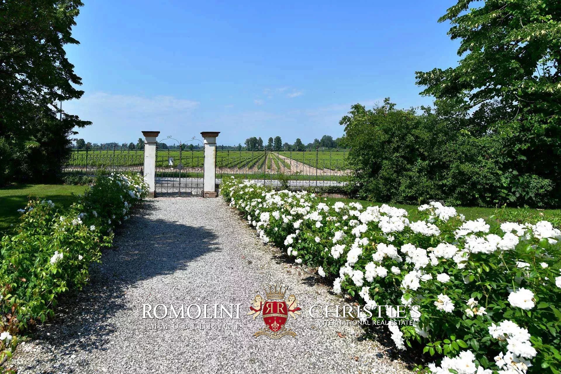 Di fronte alla villa si trova un bellissimo giardino all’italiana (circa 3.000 mq) decorato con siepi, fontane e vialetti in ghiaia. Oltre la barchessa, immersa nel verde del giardino, troviamo la piscina 14 × 8 m del complesso, circondata da un giardino ben curato ideale per ospitare eventi e cerimonie all’aperto. Tra piazzali, giardini e strade, la proprietà ci stende su una superficie totale di circa 3,5 ettari.