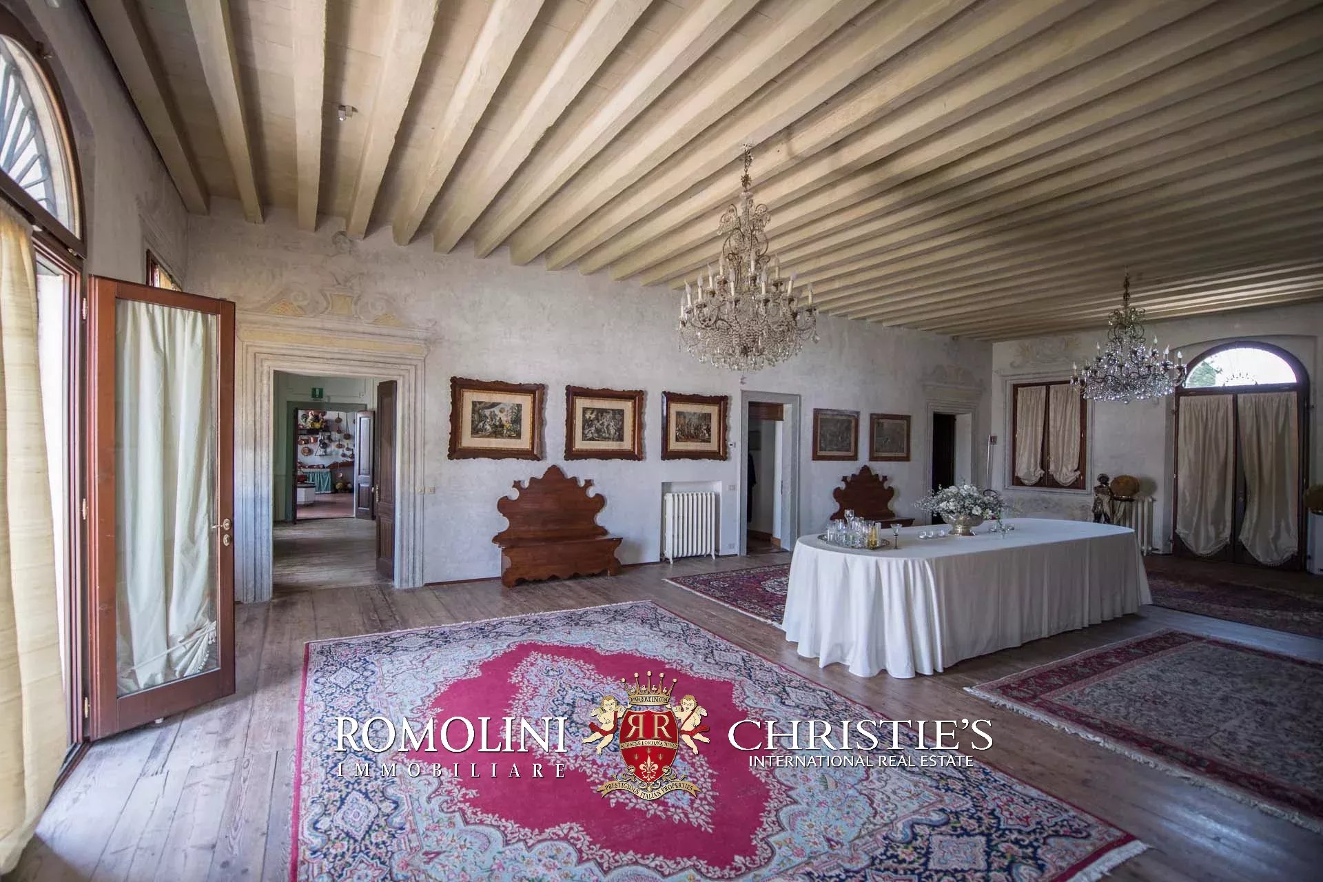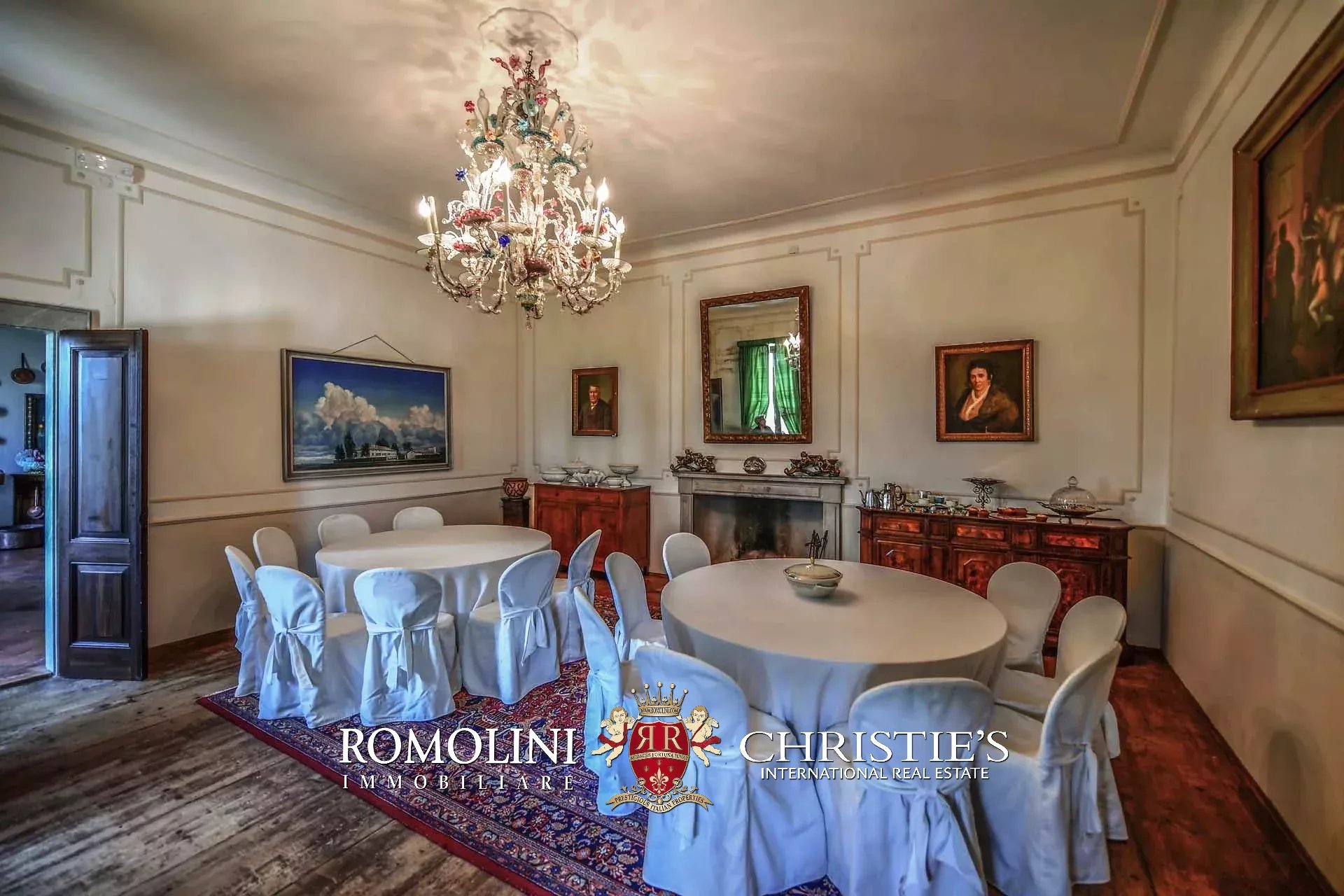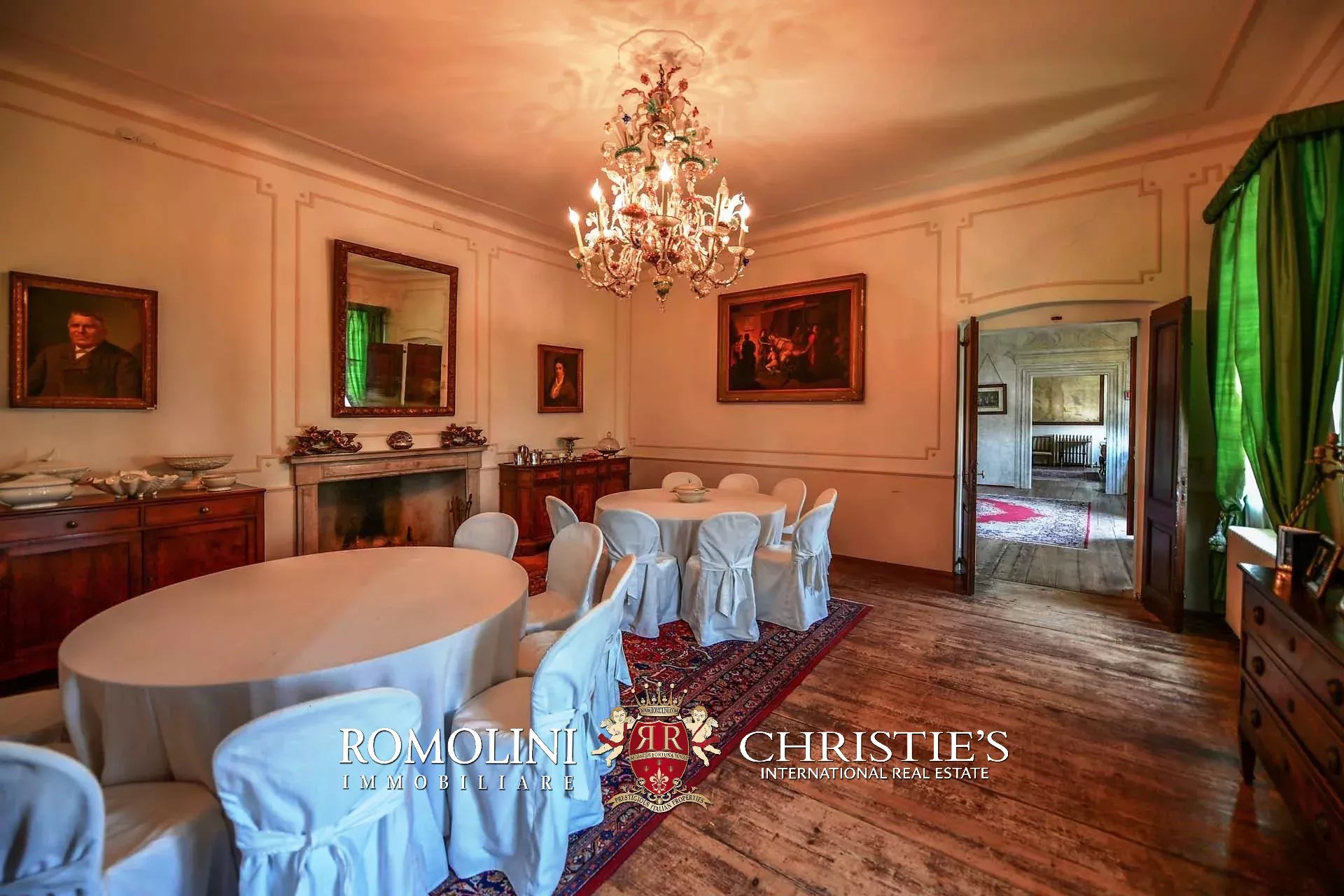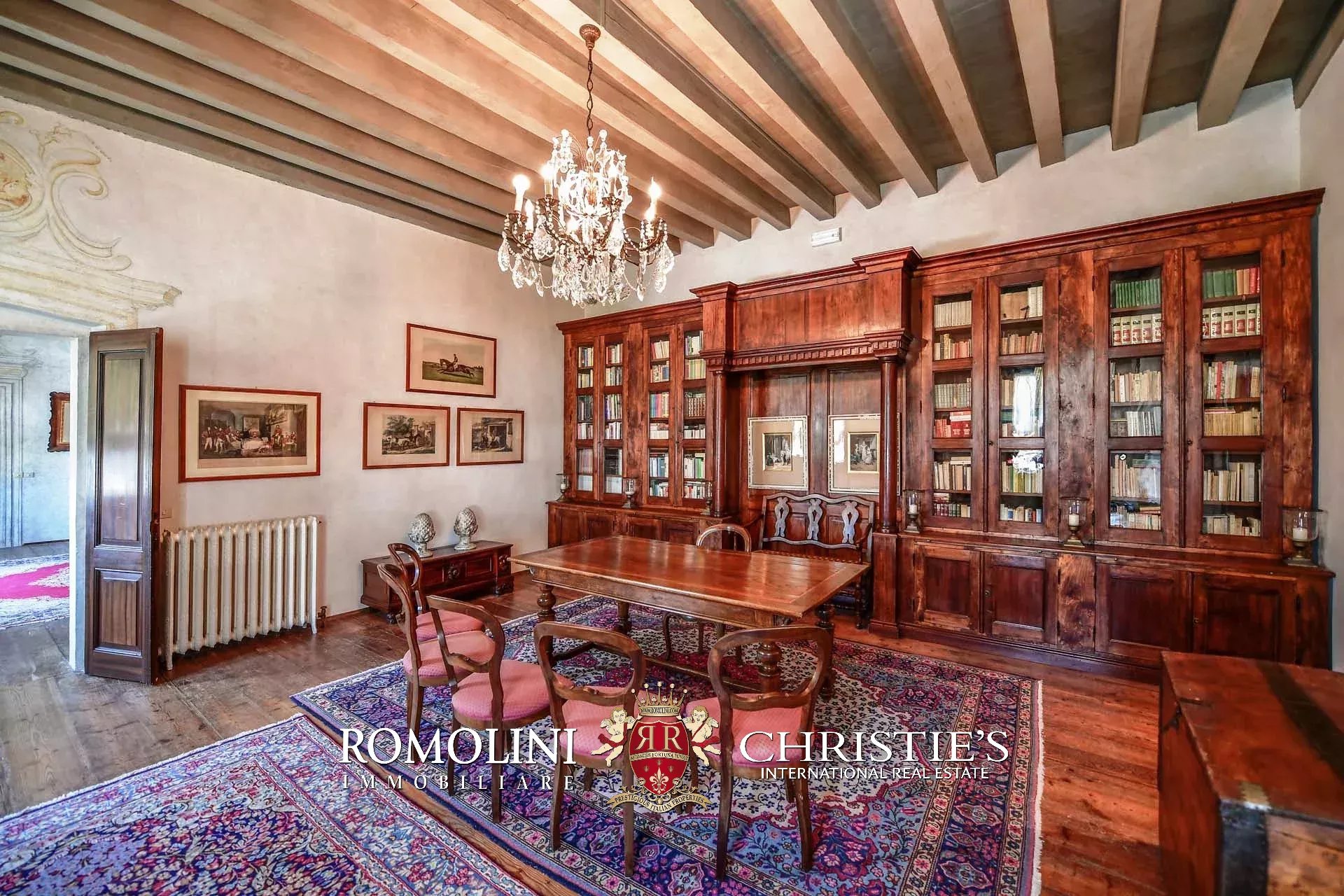 - Piano nobile: ampia sala centrale con fregi settecenteschi che conduce in un caldo salottino e in una biblioteca. Nell’ala occidentale si trovano altri locali catering con cucina e bagno. Nell’ala orientale troviamo invece tre camere matrimoniali con due bagni.