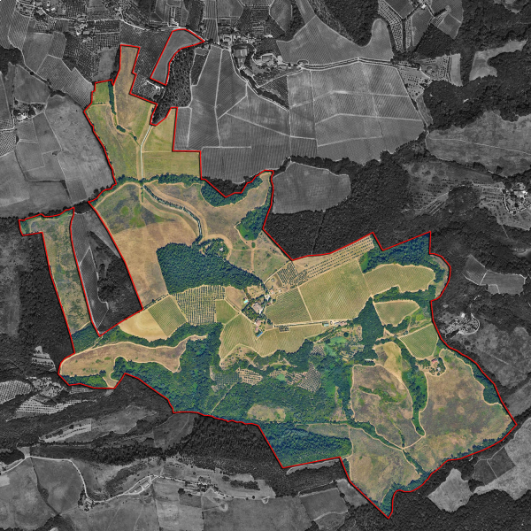 A questo si aggiungono l’oliveto (9,1 ha per una produzione annua di circa 3.000 kg di olio) e ampie porzioni di seminativo (110,9 ha) che godono di ottima esposizione: questi terreni collinari, senza pendenze eccessive, sono molto adatti sia per impiantare nuove viti e/o ulivi o per allevare cavalli. I boschi (27,0 ha) si stendono prevalentemente nella parte sud della proprietà e assicurano ottima privacy e tranquillità per gli ospiti.