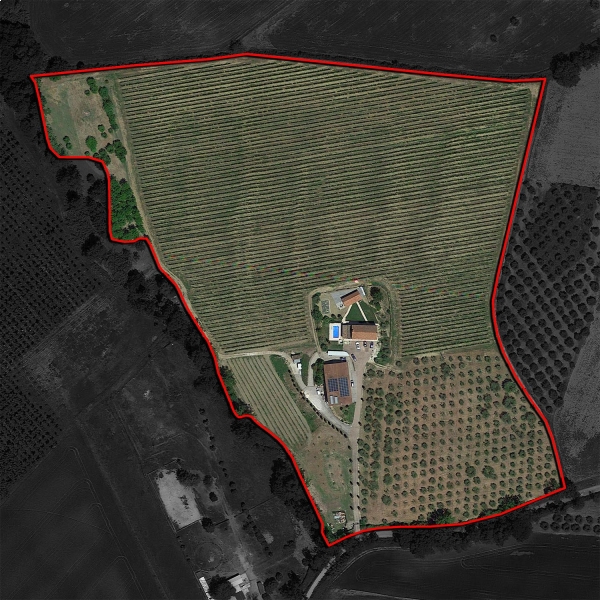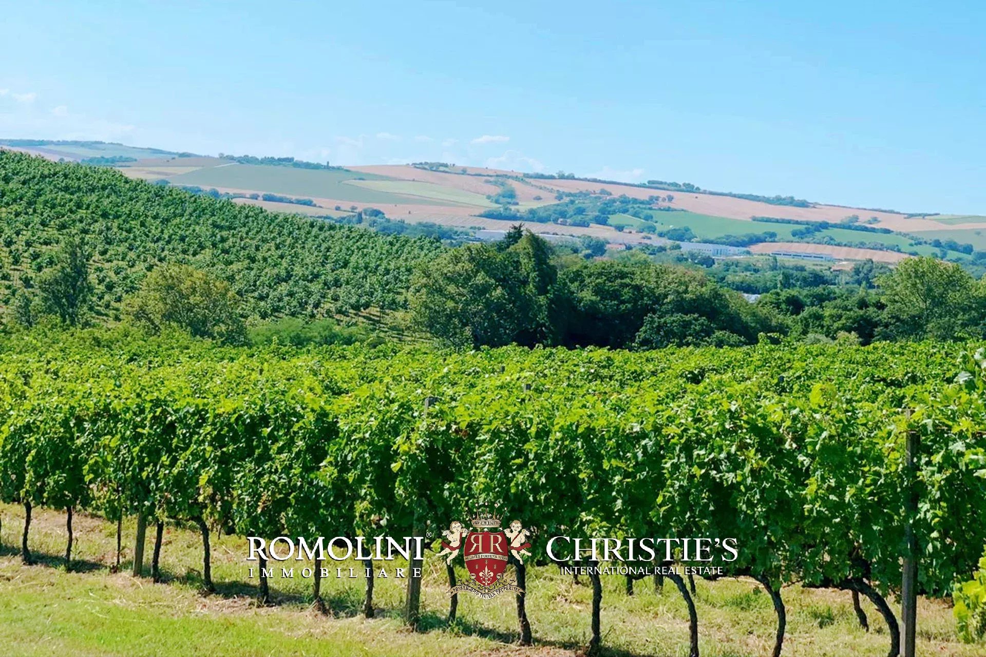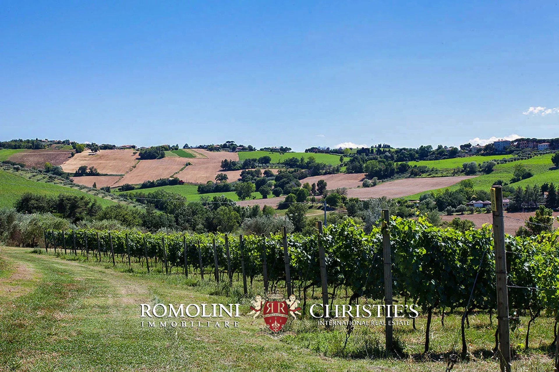Sulle colline delle Marche, non lontano da Senigallia e Fano, piccola azienda vitivinicola biologica in vendita. L’azienda si estende nella sua interezza per circa 6,9 ettari. Attorno agli edifici sono stati ricavati un giardino di 4.200 m² con piscina 7 × 4 m, posta proprio accanto alla casa, e un frutteto (4.200 m²).