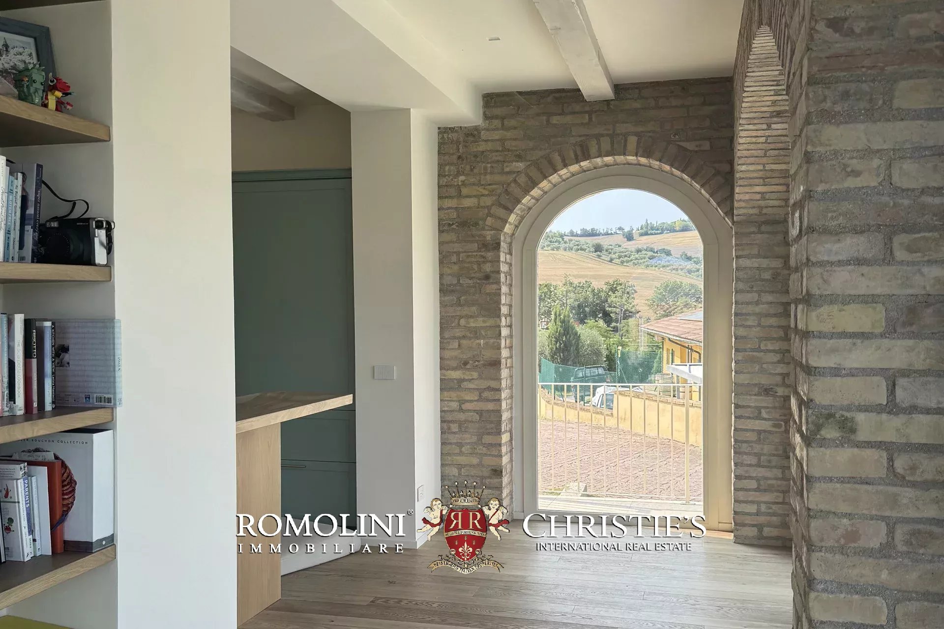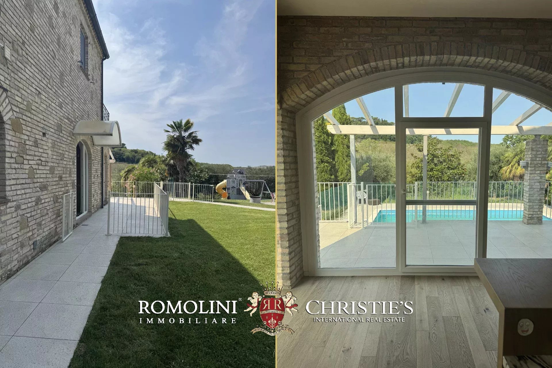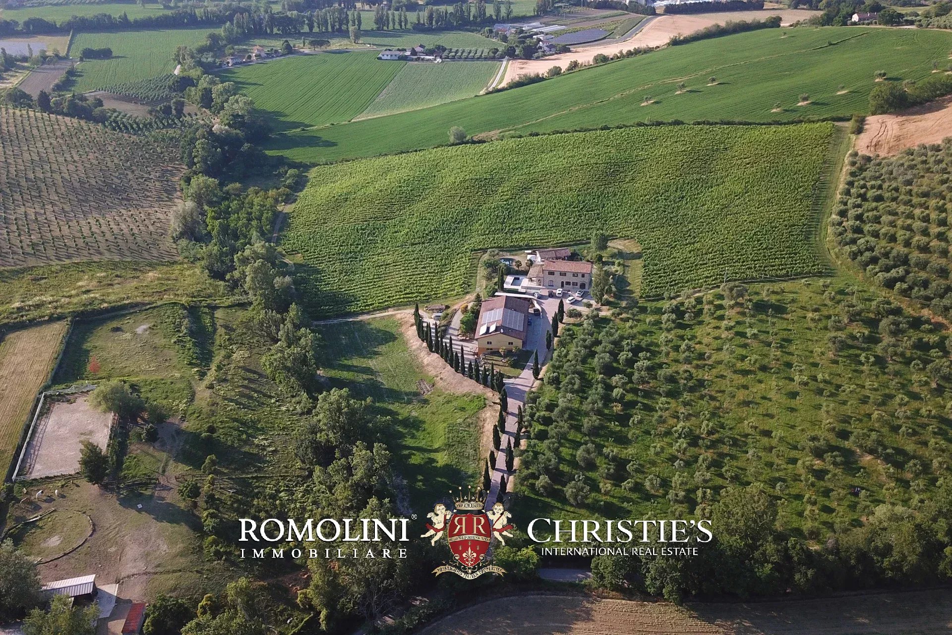 Sulle colline delle Marche, non lontano da Senigallia e Fano, piccola azienda vitivinicola biologica in vendita. L’azienda si estende nella sua interezza per circa 6,9 ettari. Attorno agli edifici sono stati ricavati un giardino di 4.200 m² con piscina 7 × 4 m, posta proprio accanto alla casa, e un frutteto (4.200 m²).