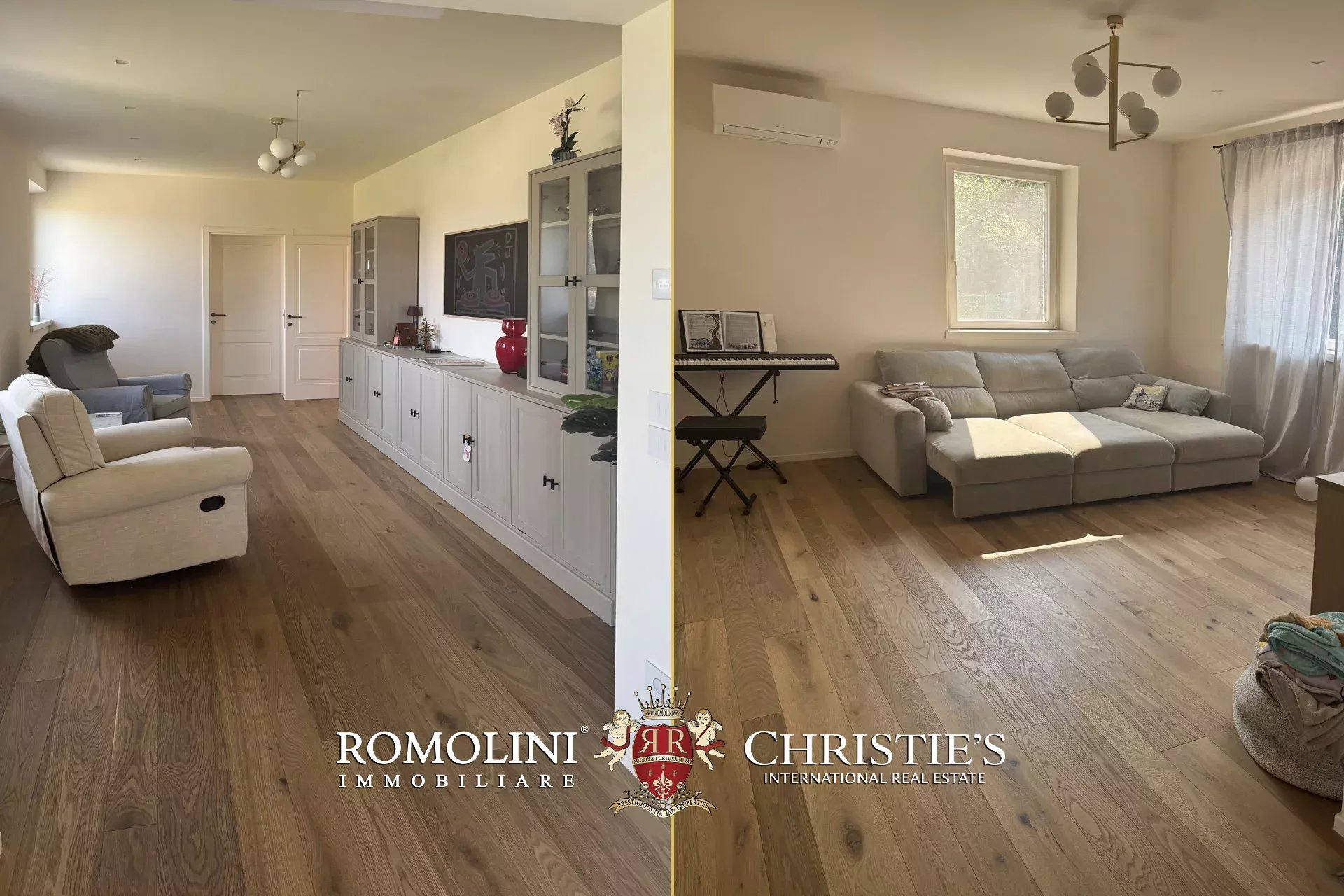 - Piano primo: soggiorno con terrazzo, studio, due camere e due bagni.