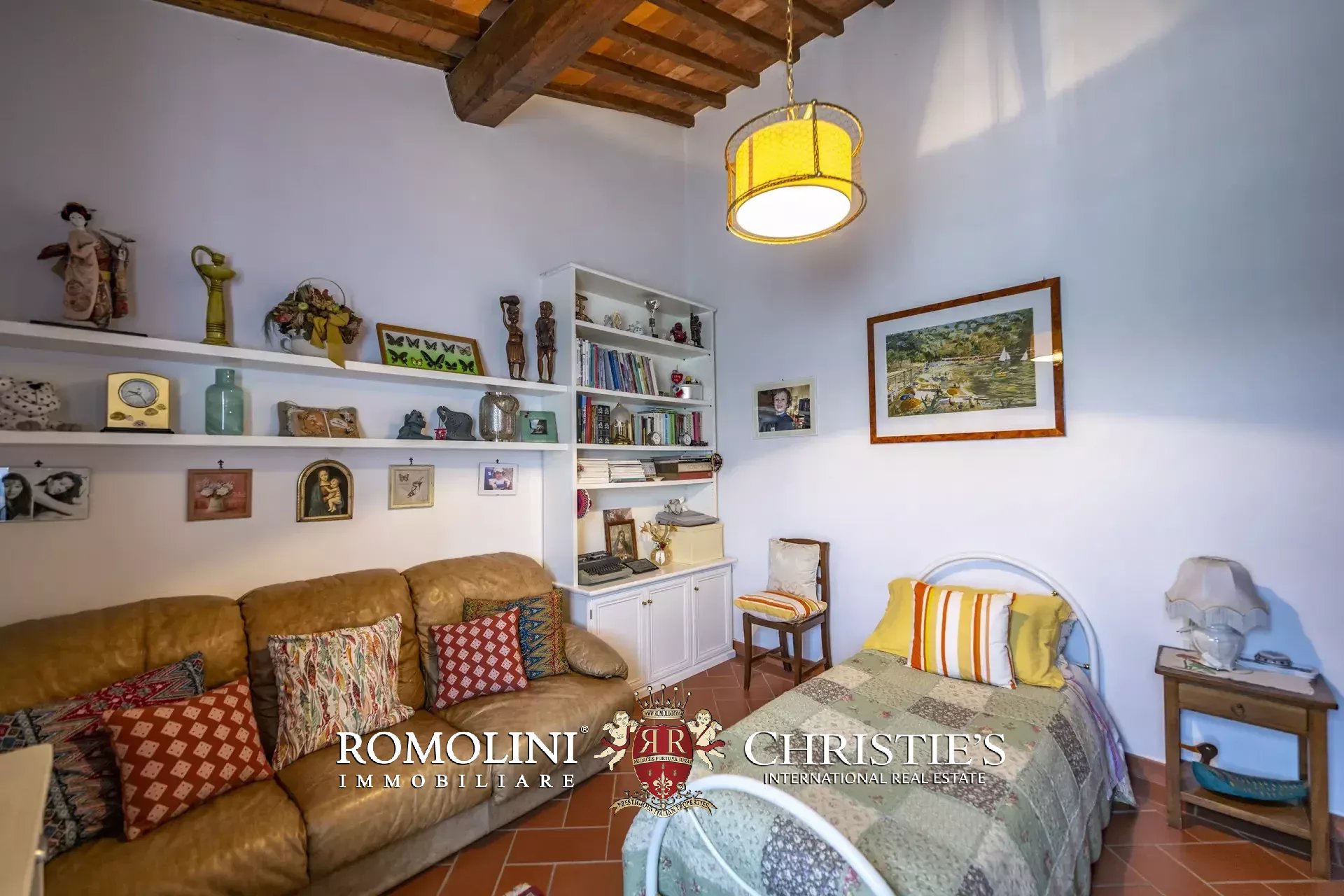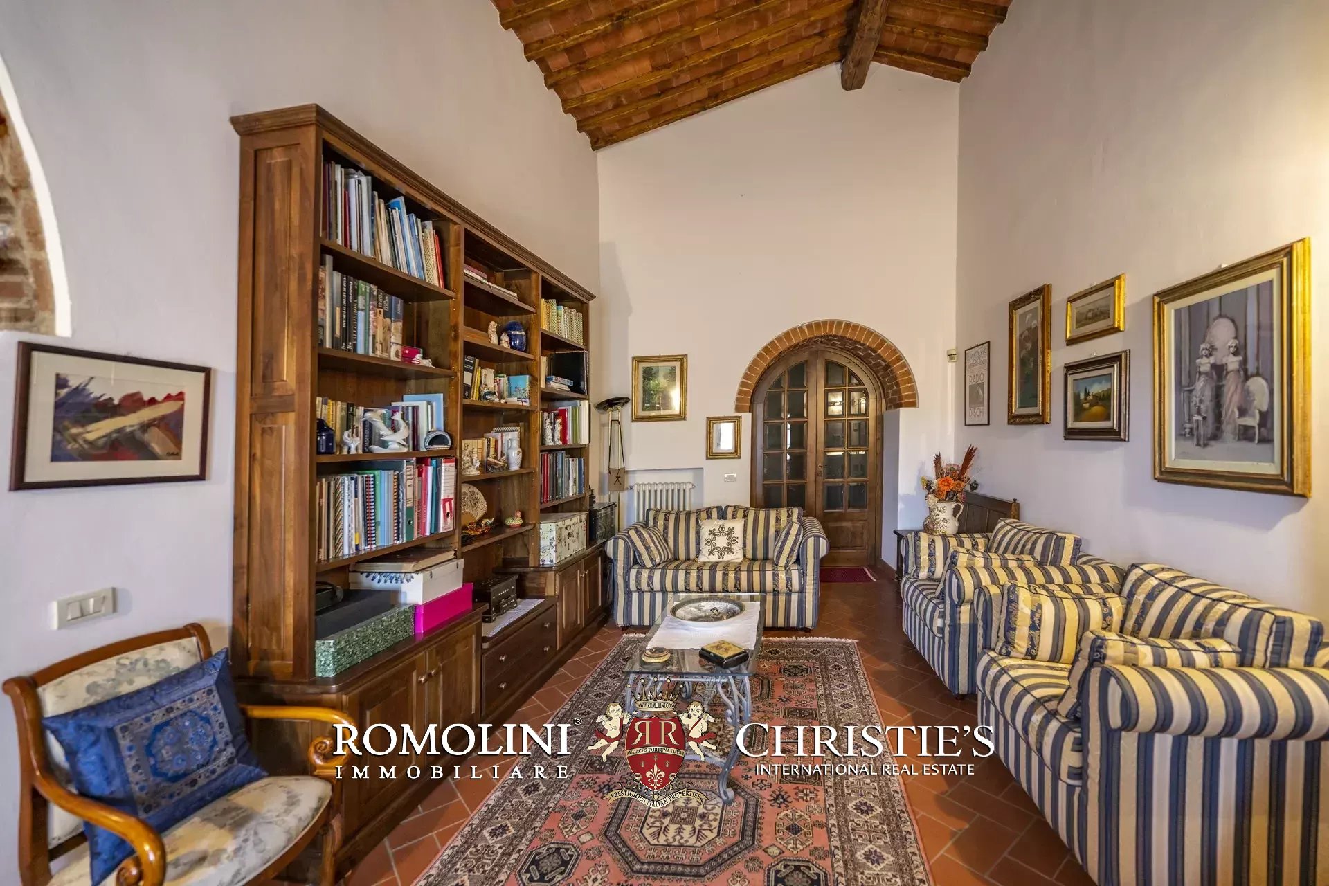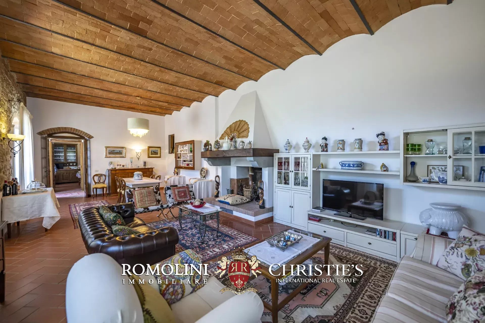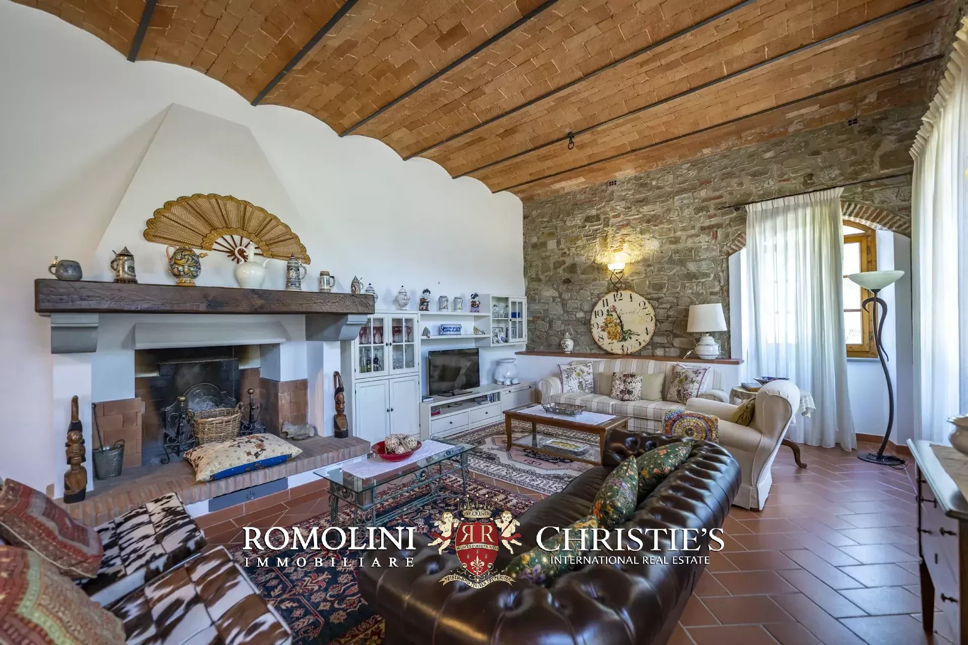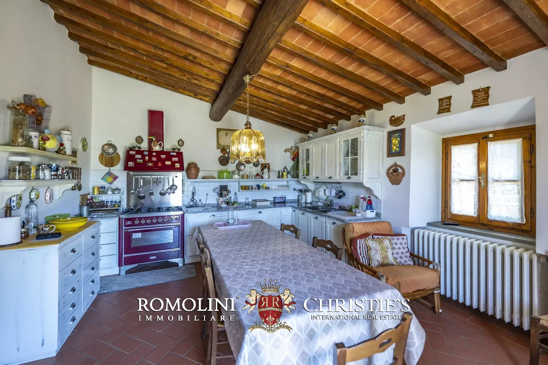 Il casale (458 m², 4 camere e 4 bagni), realizzato in pietra in tipico stile toscano, si articola su due livelli. Al piano terra si trova la zona giorno costituita da un grande soggiorno, due cucine, un salottino e un bagno di servizio oltre a due locali cantina, uno dei quali molto affascinante con soffitto a volta. Salendo al piano superiore si arriva invece alla zona notte costituita da quattro camere e tre bagni, oltre a una cucina di servizio con accesso indipendente e uno studio.