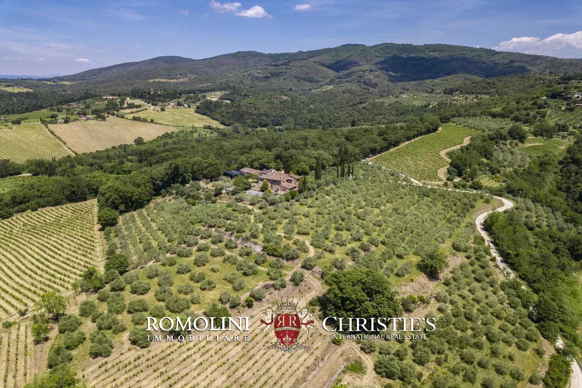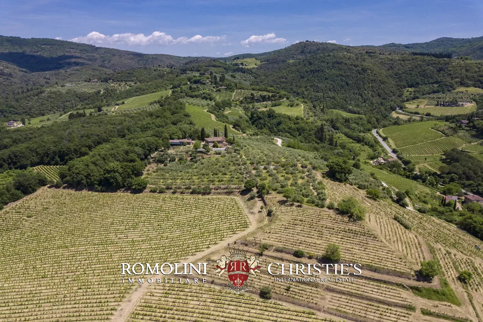 La proprietà si stende nella sua interezza per circa 18,3 ettari in posizione collinare e con ottima esposizione al sole. Colonna portante dell’azienda è il vigneto Chianti Classico DOCG (9,0 ha) con cui vengono prodotti ogni anno circa 420 hl di vino (con potenziale fino a 520 hl). Una parte di vigneto potrebbe essere reimpiantata per incrementare la produzione con piante più giovani.