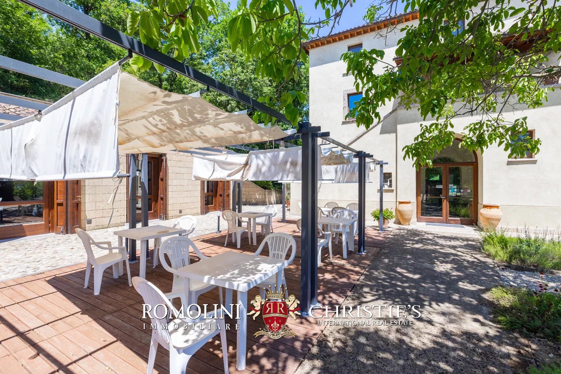 Sulle colline al confine tra Umbria e Lazio, sulle sponde del fiume Tevere, azienda agricola di 150,8 ettari con agriturismo in vendita. La proprietà include numerosi edifici (oltre 2.600 m²): gli edifici ristrutturati sono adibiti all’accoglienza degli ospiti, ma sono presenti anche tre grandi ville da ristrutturare che potrebbero incrementare notevolmente la redditività dell’azienda. A livello produttivo la tenuta conta su un oliveto (1.000 piante) e su 78 ha di seminativi.
