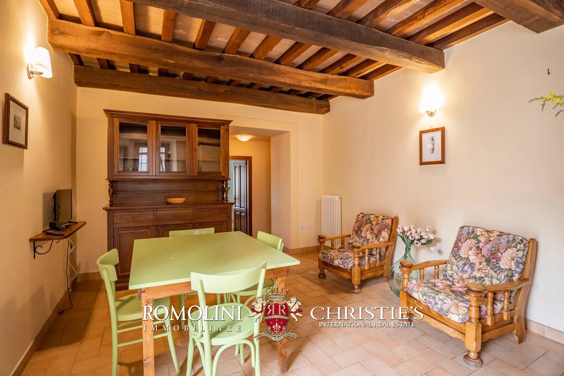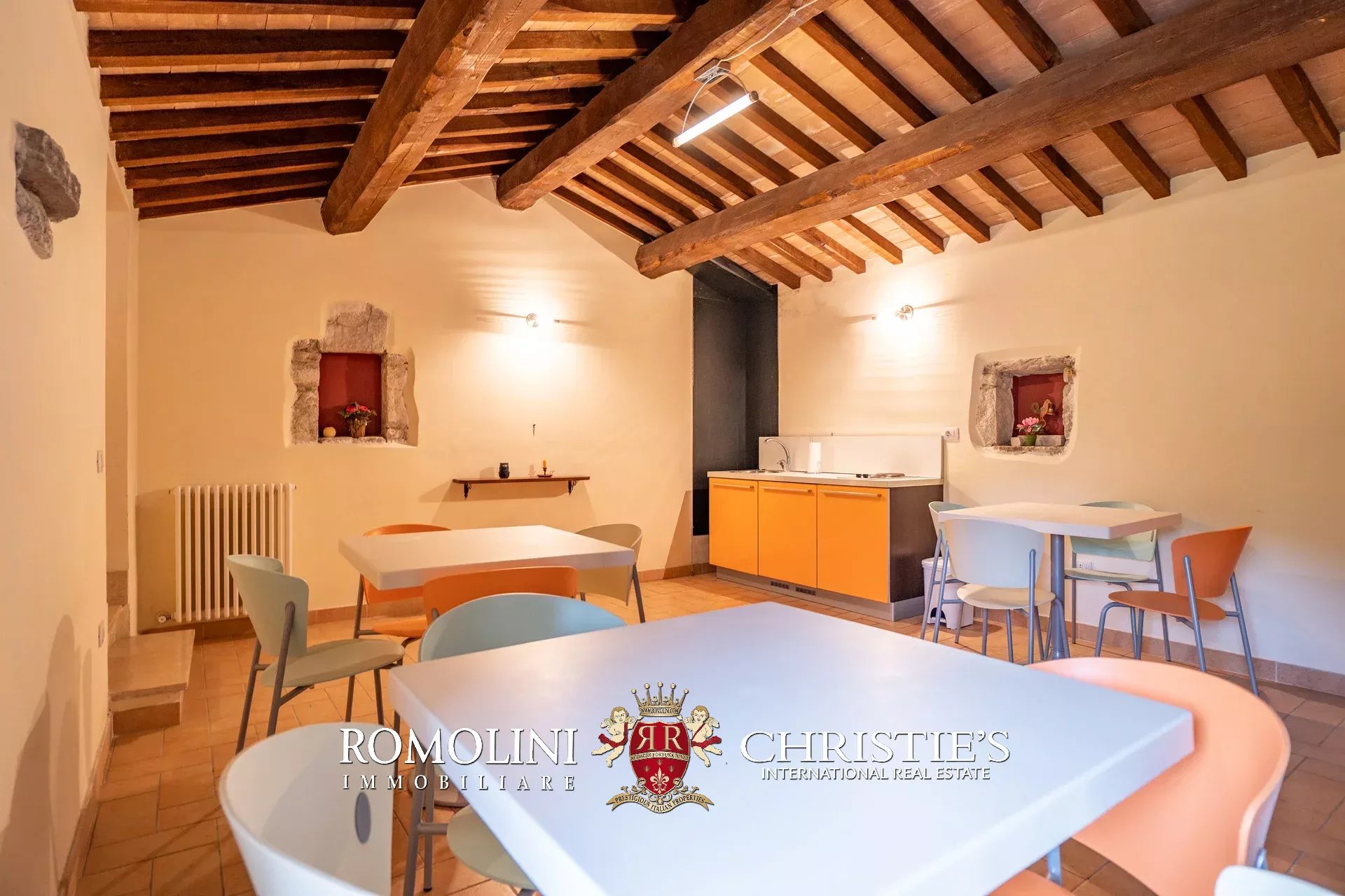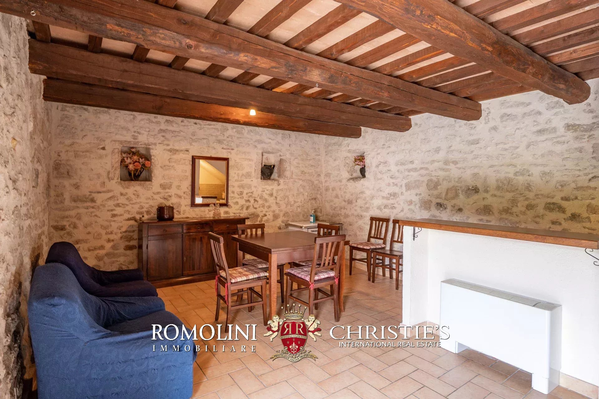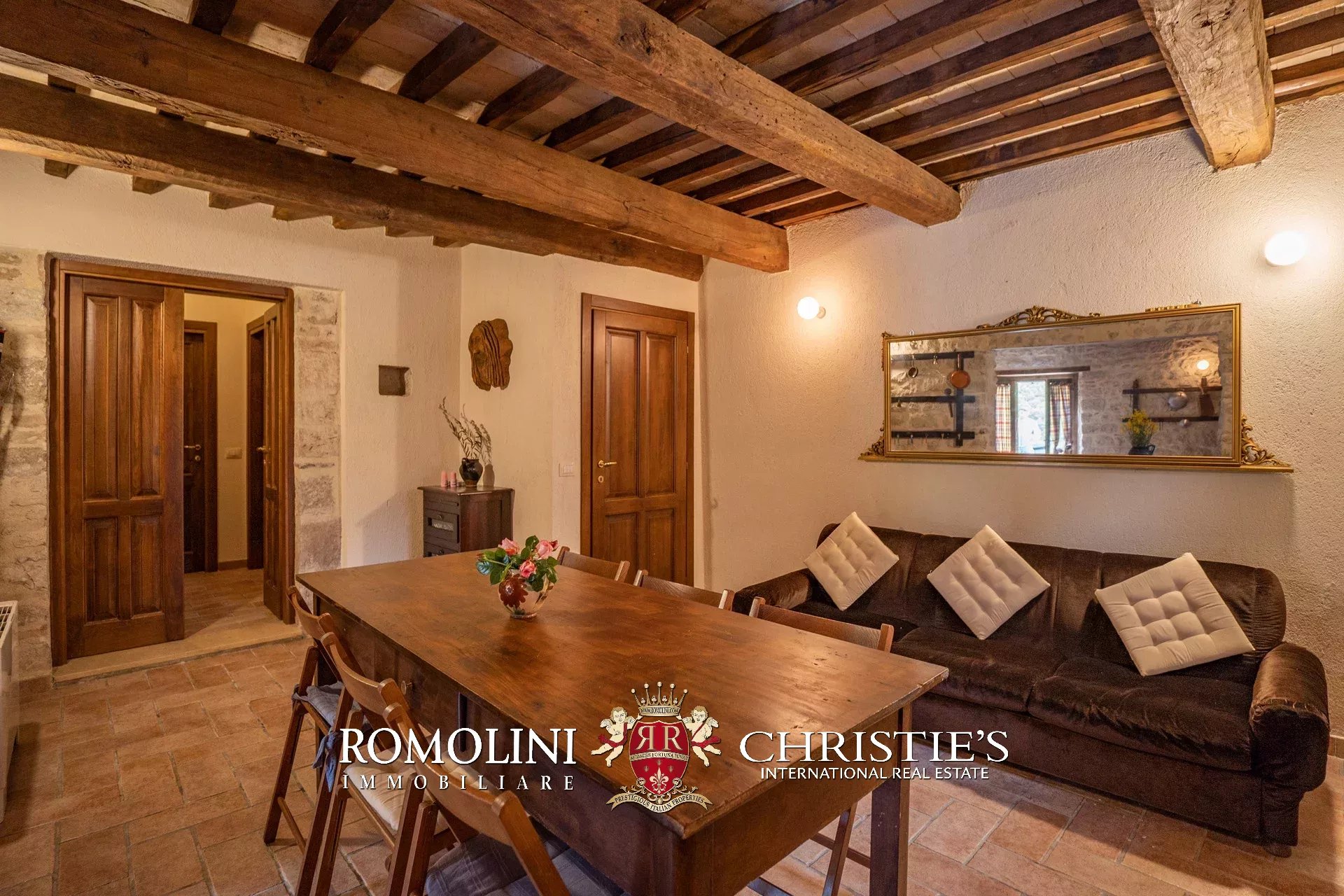 L’edificio è stato interamente ristrutturato in epoca recente ed è caratterizzato da finiture originali tipiche e ben preservate tra cui muri in legno, pavimenti in cotto e travi in legno. Il vecchio fienile, attualmente al grezzo, potrebbe essere ristrutturato per creare una zona comune o un’unità abitativa addizionale per gli ospiti.