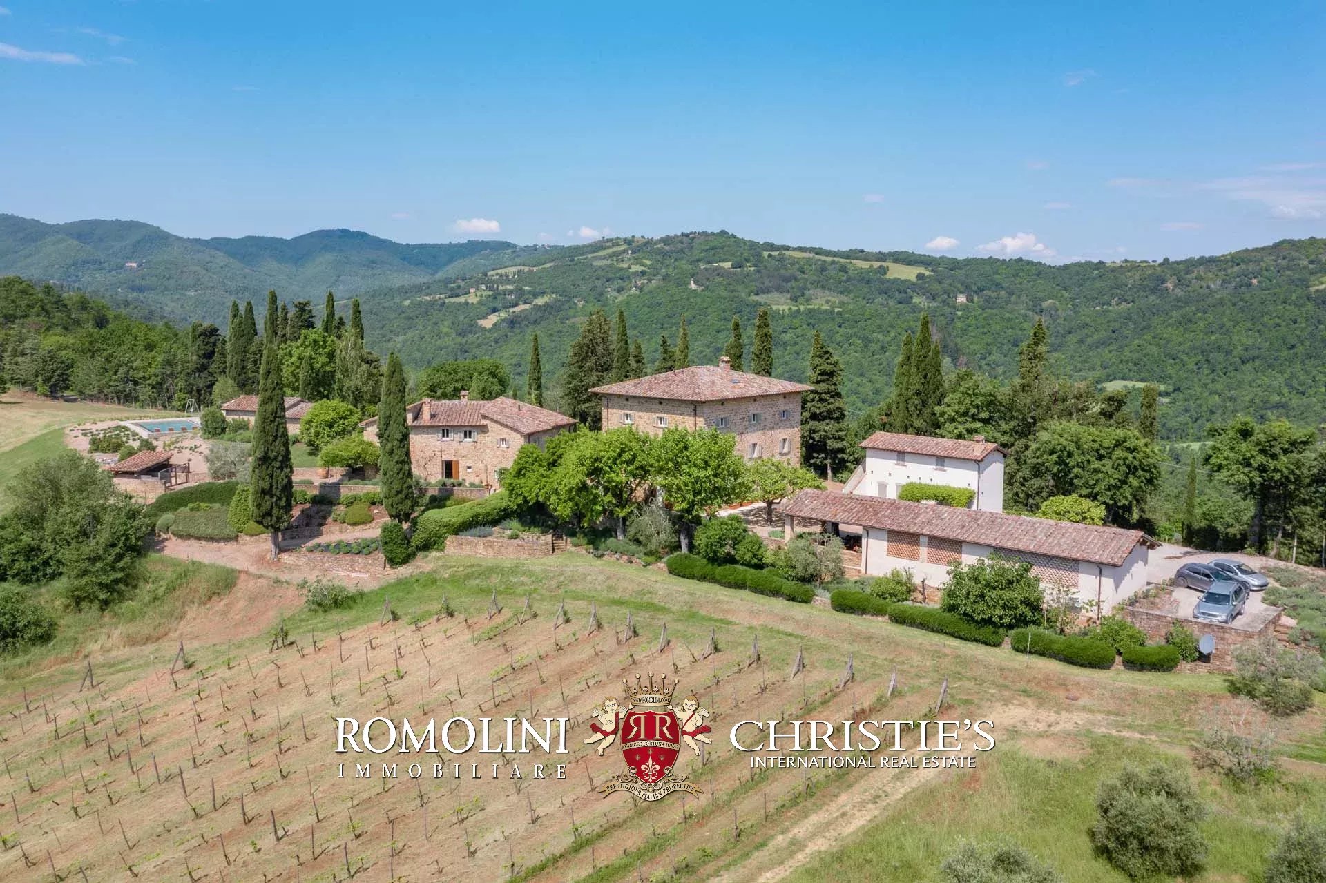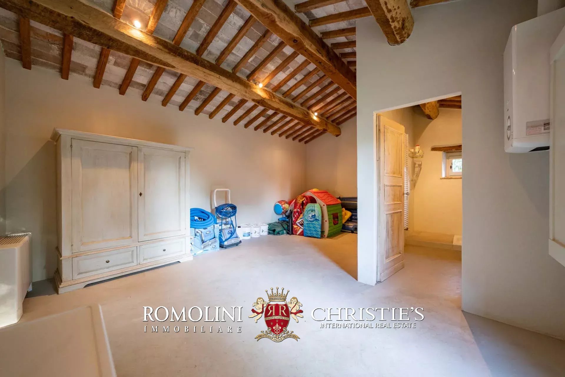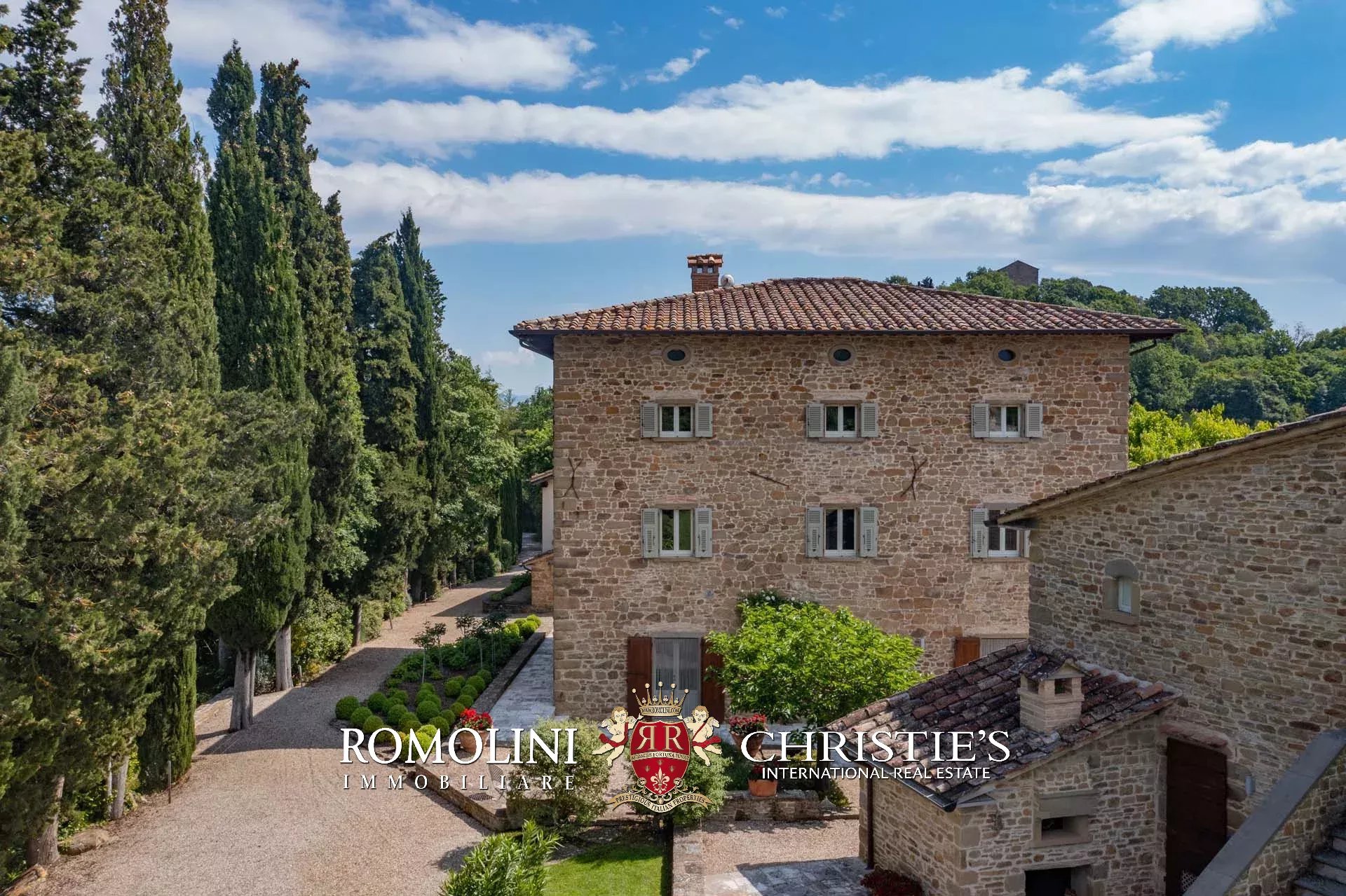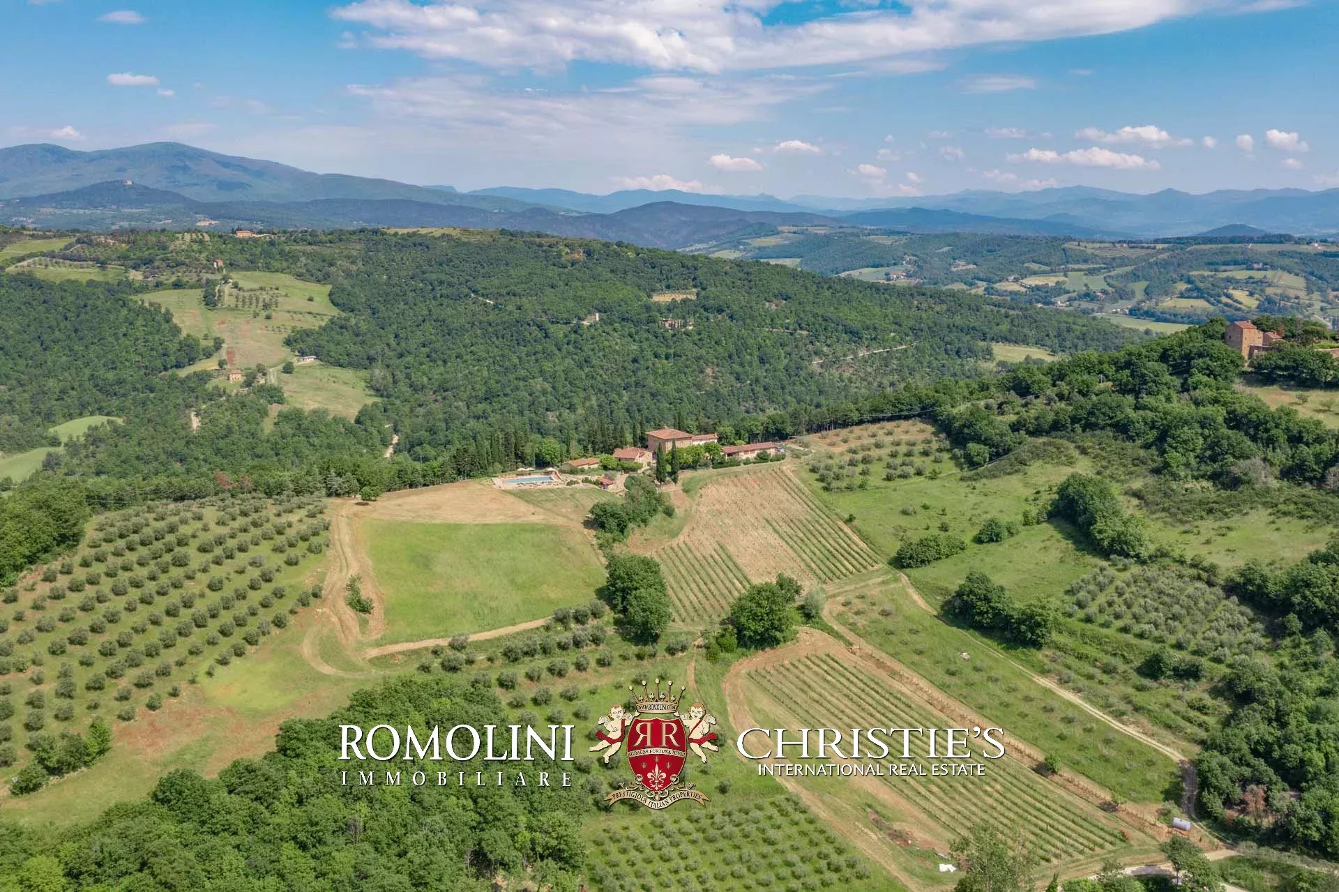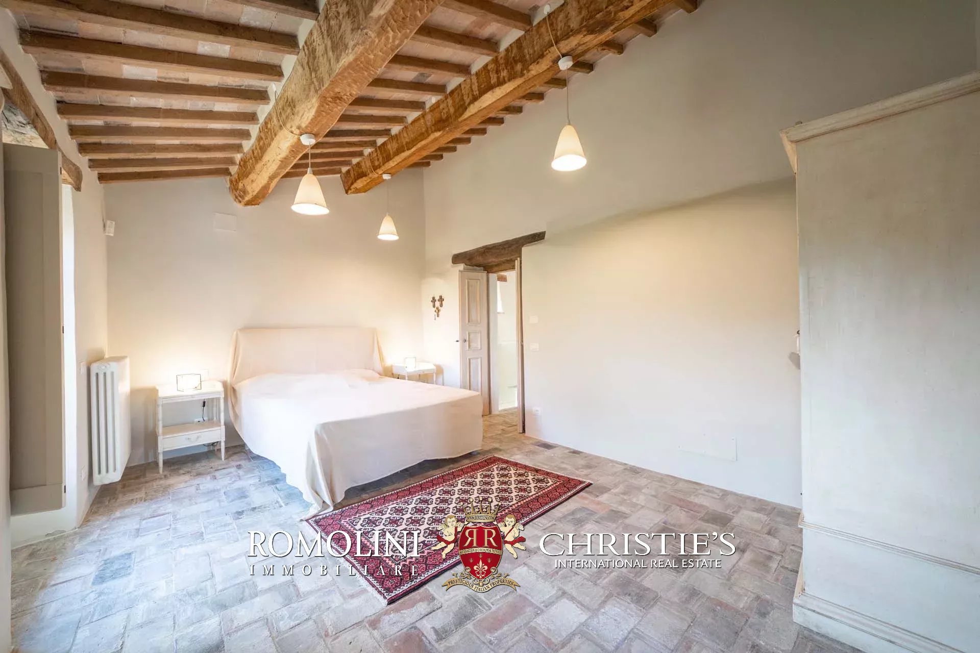 A pochi chilometri dal borgo medievale di Anghiari, in posizione panoramica, piccolo borgo con villa padronale in vendita. La proprietà (oltre 1.000 m² in totale) si compone di cinque edifici (con 9 camere totali) che includono due dependance, una pool house con palestra e una grande sala giochi molto adatta anche per eventi. All’esterno la proprietà copre un totale di 25,5 ettari che includono un piccolo vigneto e circa 300 piante di ulivo.