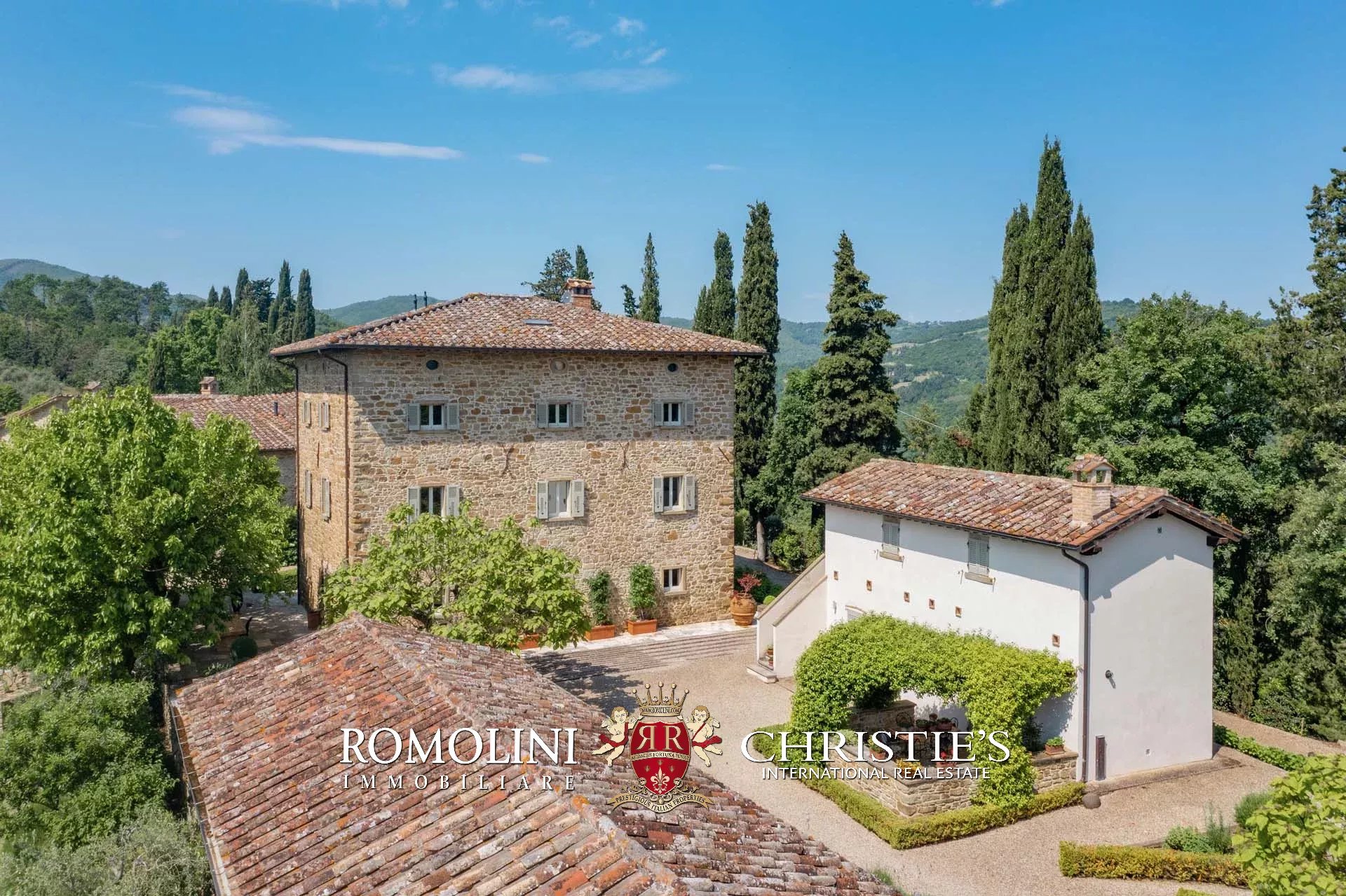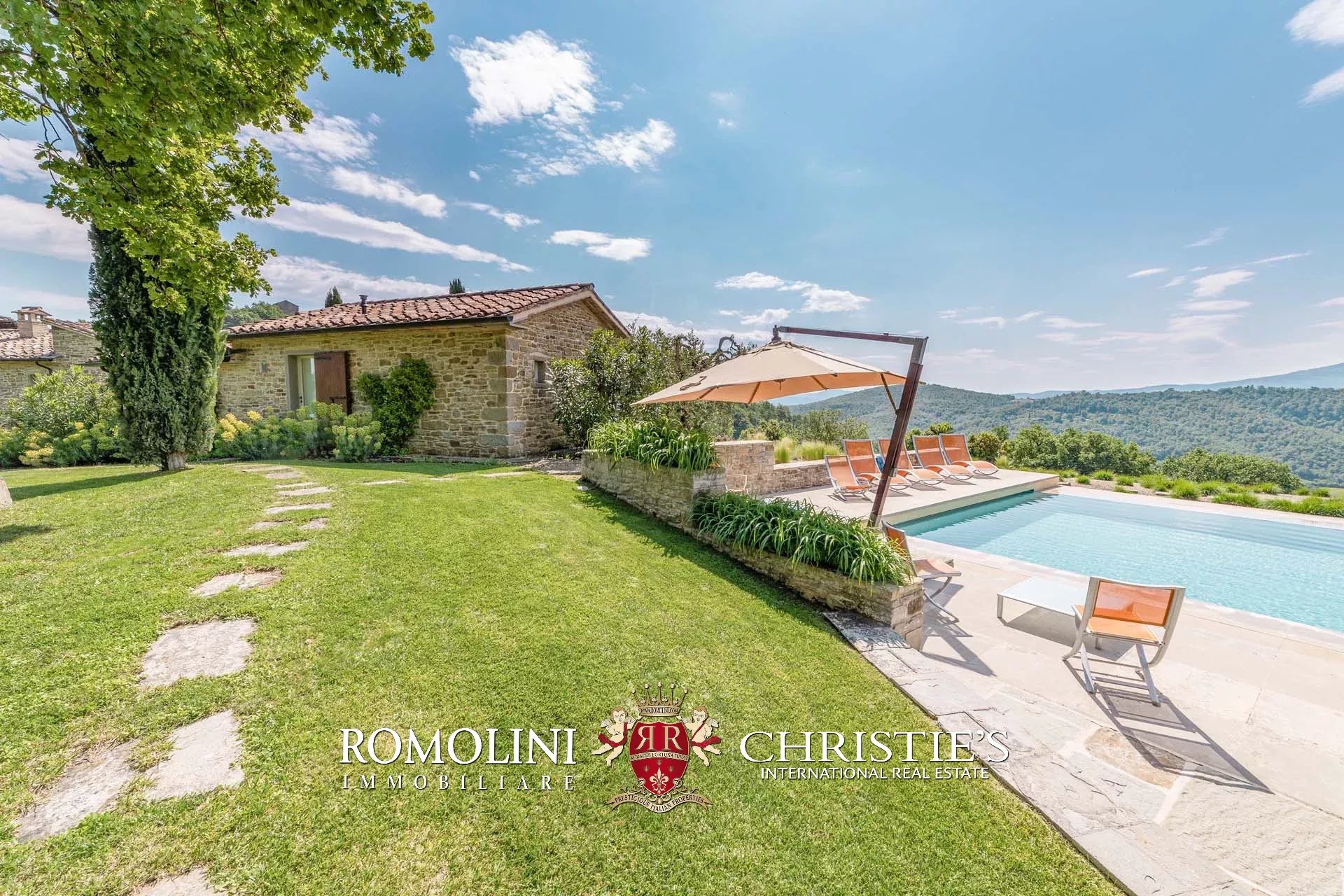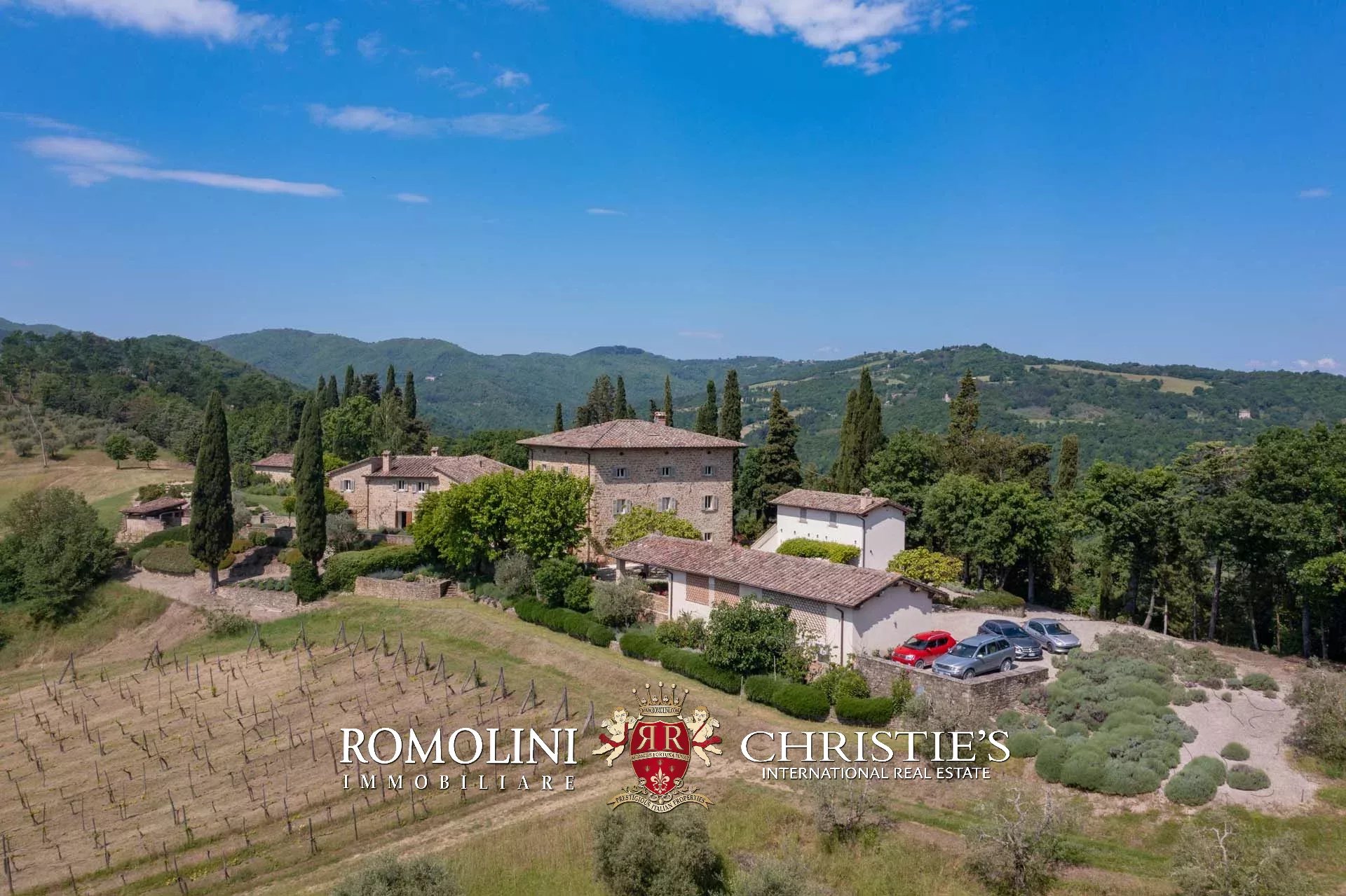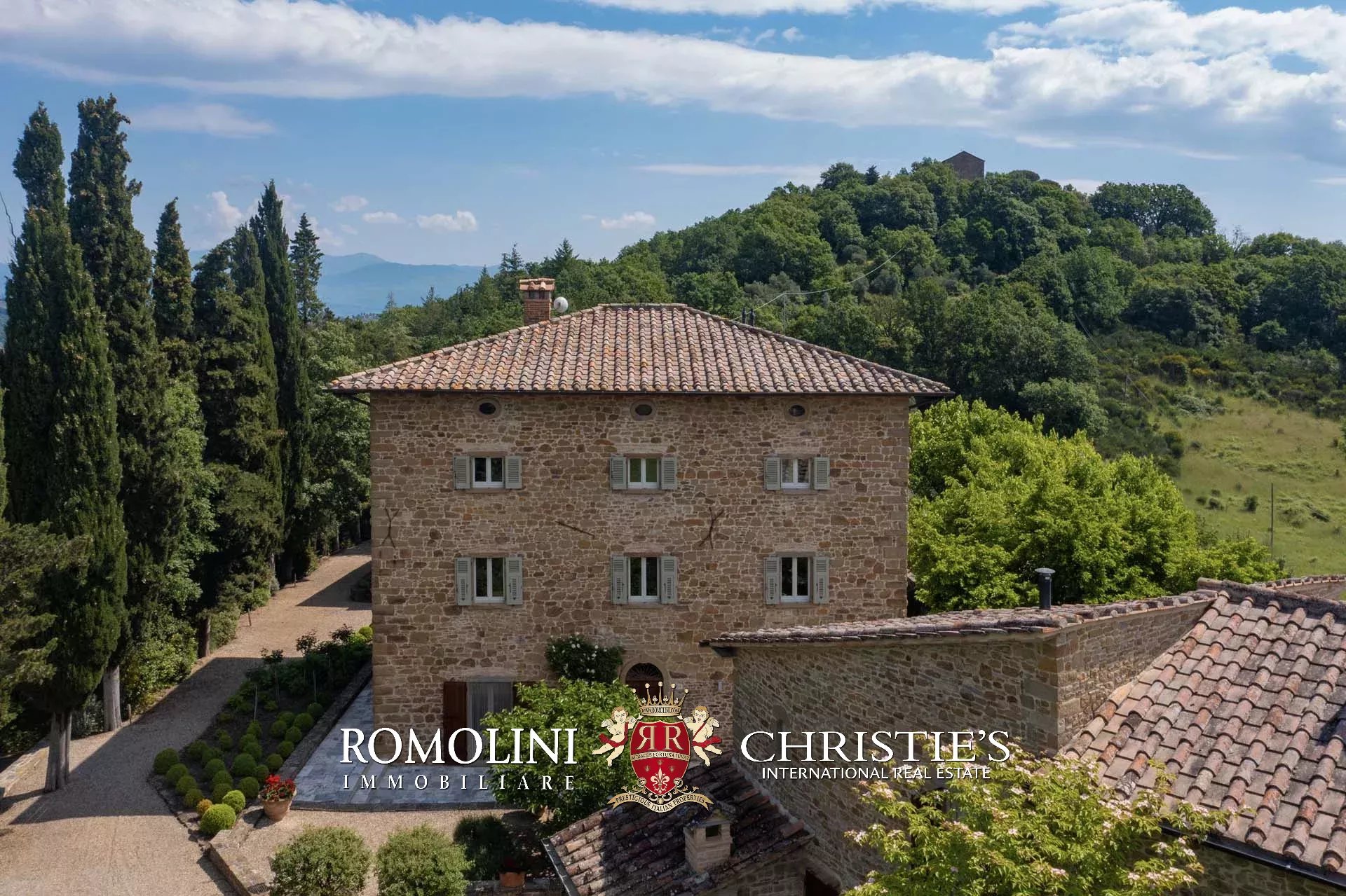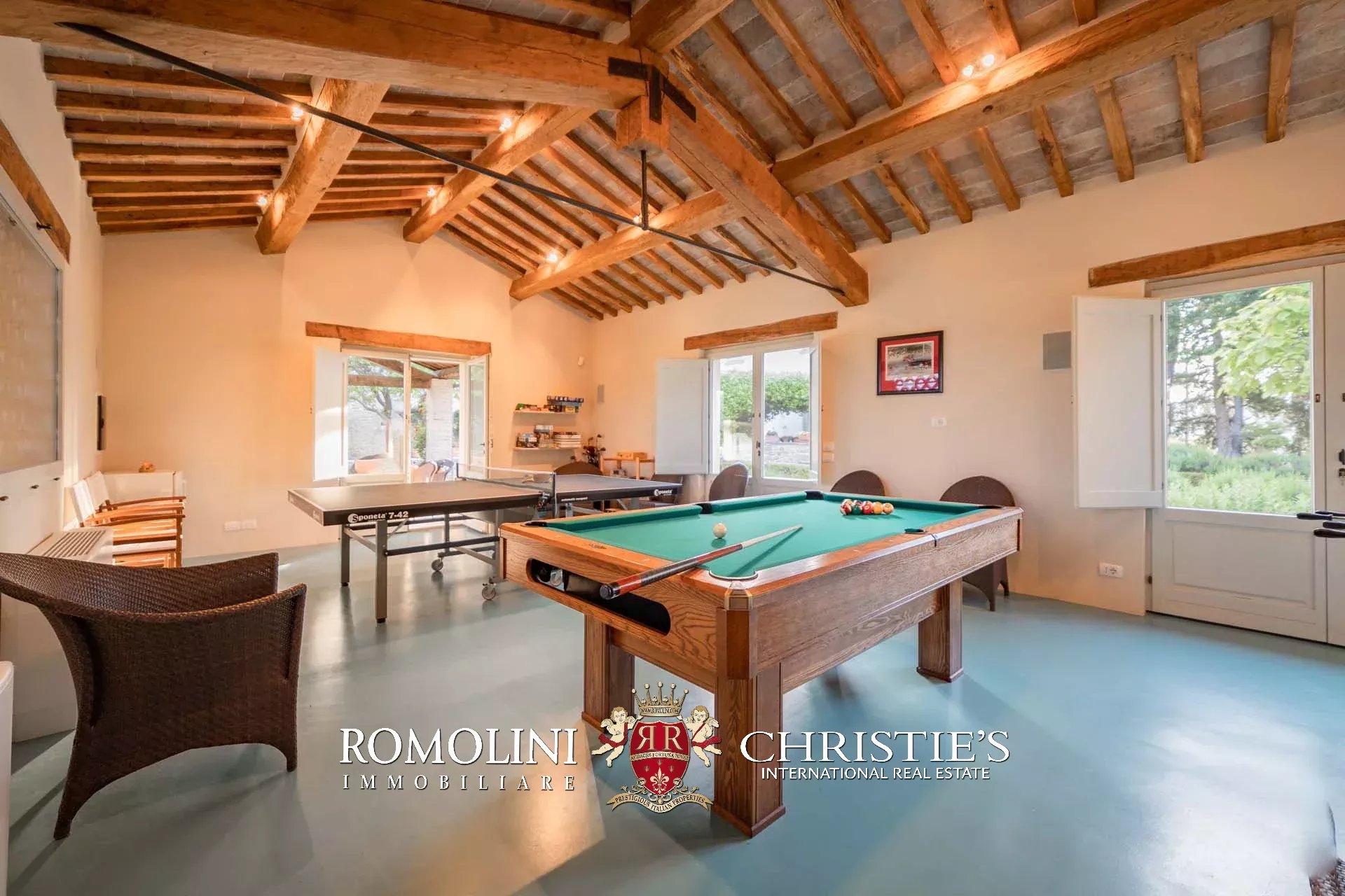 A pochi chilometri dal borgo medievale di Anghiari, in posizione panoramica, piccolo borgo con villa padronale in vendita. La proprietà (oltre 1.000 m² in totale) si compone di cinque edifici (con 9 camere totali) che includono due dependance, una pool house con palestra e una grande sala giochi molto adatta anche per eventi. All’esterno la proprietà copre un totale di 25,5 ettari che includono un piccolo vigneto e circa 300 piante di ulivo.